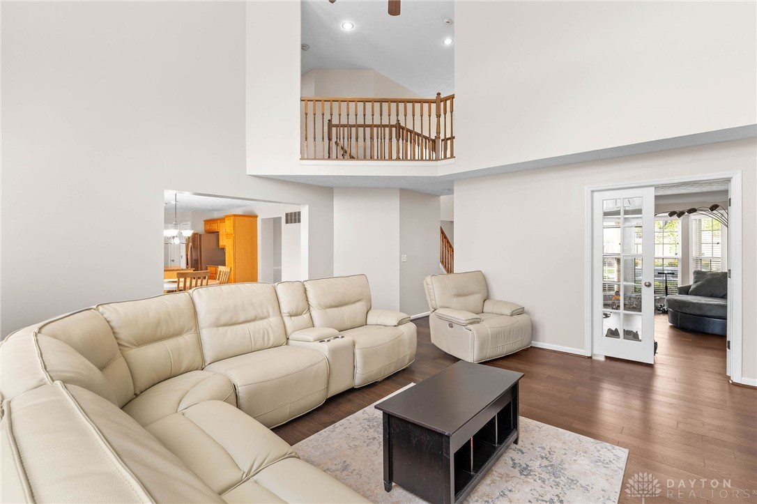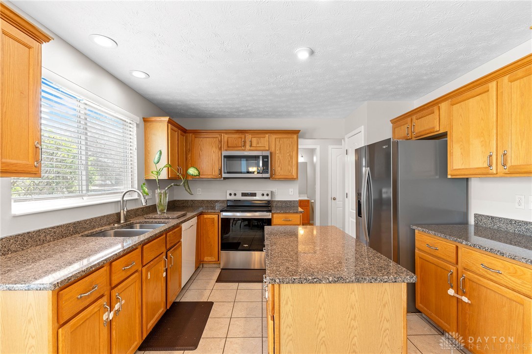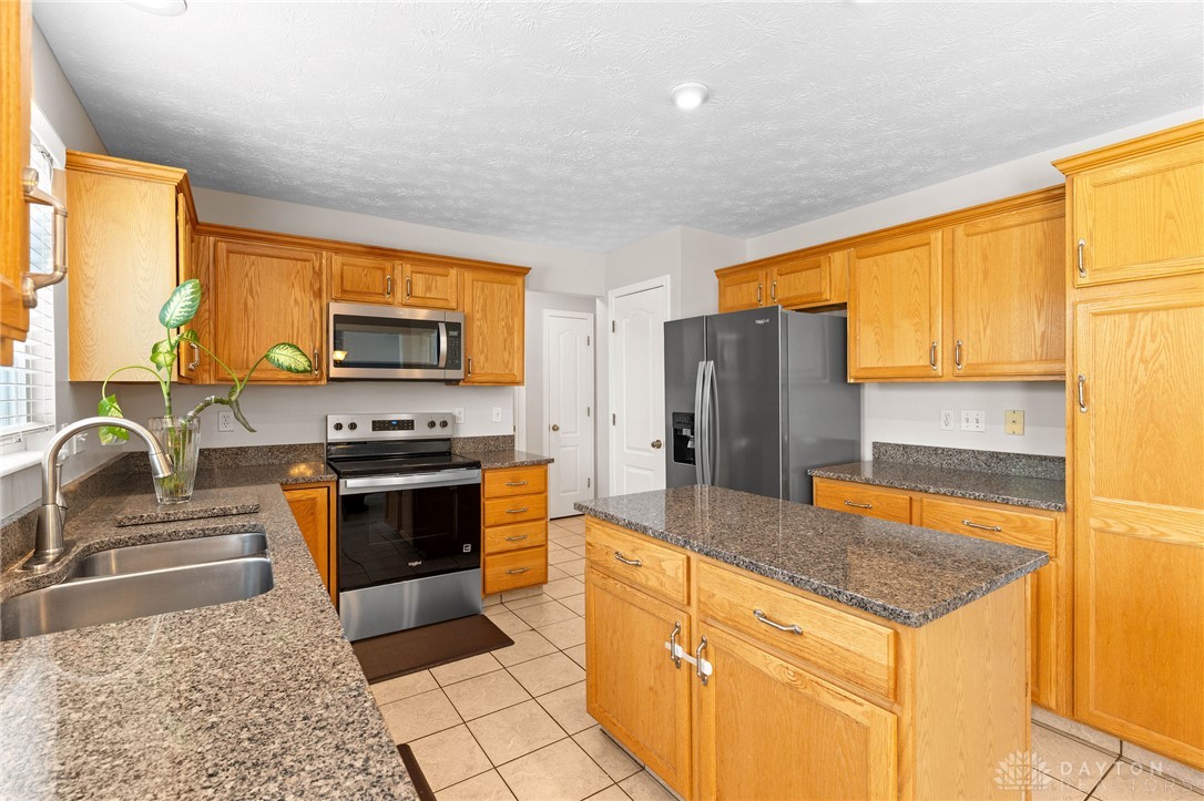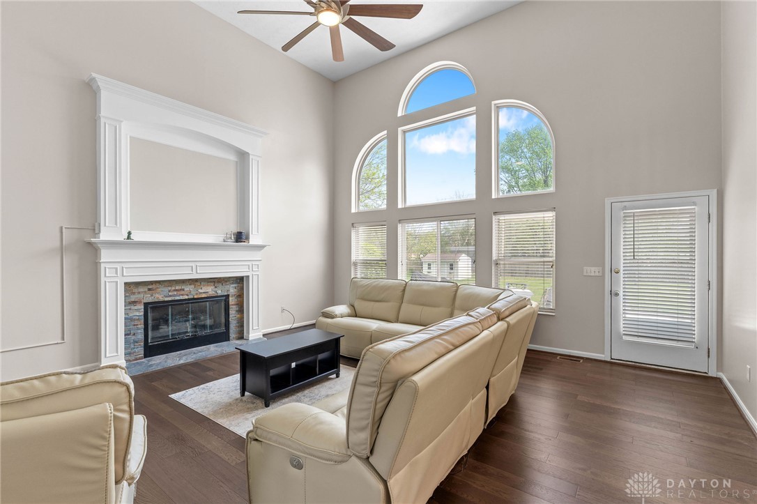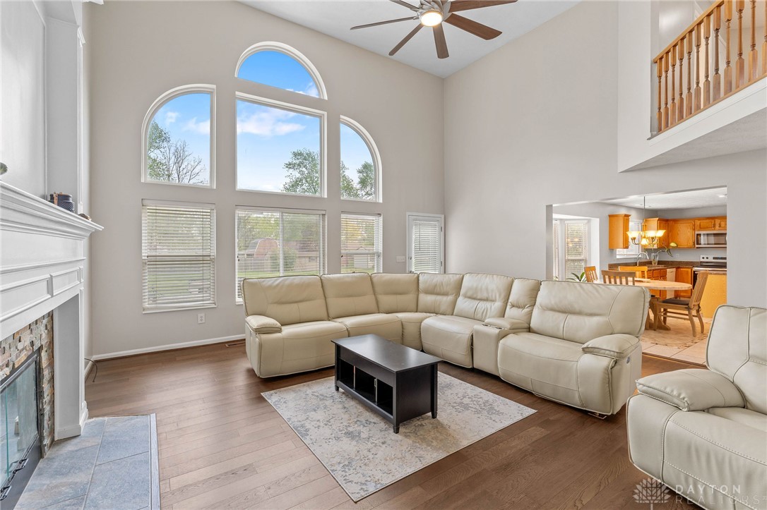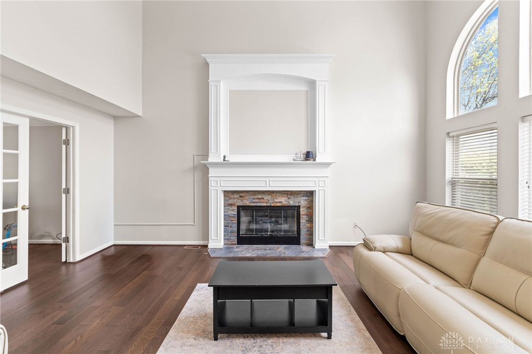 Welcome Home! This gorgeous 4-bedroom, 3.5-bathroom house in Stone Falls will have you wondering where you should look next. The 2-story entry with tons of natural light welcomes you in, and the new engineered hardwood floors are ready to take you through the main level! 2 sets of French doors separate the living room, which can easily be used as an office. The dining room is on the other side of the entry with direct access to the large eat-in kitchen boasting granite countertops, plenty of cabinet space, pantry and new stainless steel refrigerator, microwave and range (April, 2026). The Great Room is full of opportunity for cozy nights in or loud game nights. Large wall of windows invites plenty of natural light to shine on your best moments and warm you up on cold mornings. Laundry room and half bath are conveniently located near the garage entrance. Upstairs you will find brand new carpet throughout and all 4 bedrooms. Primary bedroom features a vaulted ceiling, large ensuite bath with dual vanities, walk -in shower, bathtub, and walk-in closet. Hall bathroom features a brand new bathtub (April, 2026). Faux wood blinds installed throughout. Don't forget to visit the full basement. Partially finished with carpet and providing unfinished space for storage and hobbies. A full bathroom with walk-in shower completes the basement. Outside, a large concrete patio with sunken fire pit invites relaxation or outdoor entertaining. The lot is almost half an acre and includes a storage shed. Conveniently located with easy access to shopping, dining, I-675 and WPAFB. Come fall in love with all this home has to offer and start making your memories here. HOA is only $100/year. Water Softener (2022) Water Heater (2022), Carpet & flooring (2026)
