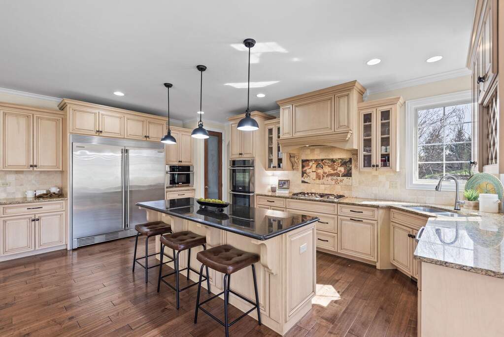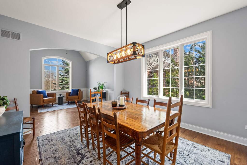 Lake Hills custom brick two-story set on a nearly half-acre private wooded lot with room to spread out both inside and out. This home offers 6 bedrooms and 5 baths with a layout that works for everyday life as well as entertaining. Upstairs you'll find four bedrooms including a spacious primary suite with a huge ensuite bath and dual walk-in closets, two bedrooms connected by a Jack-and-Jill bath, and a fourth bedroom with its own hall bath. The main level centers around a large kitchen with stainless steel appliances, cooktop, wall oven, pantry, and a long island with seating, plus a generous breakfast area that opens directly to the family room with coffered ceilings. A dining room and living room sit side-by-side with a wide opening between them, giving you defined spaces that still feel connected. There's also a main-level bedroom with a full bath nearby that works well as an office, guest room, or in-law option. The finished basement adds even more flexibility with another bedroom, full bath, theatre room, and a second kitchen area ideal for related living or extended stays. Out back you'll find a large deck overlooking the private wooded yard. Three-car side-load garage and long driveway. Located in the Lake Hills neighborhood with walking trails, fishing lake and pier, sand volleyball courts, parks, and access to the highly desirable Lake Central School District.