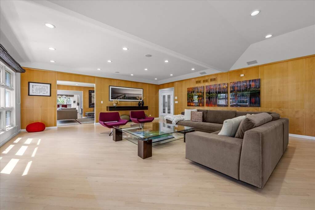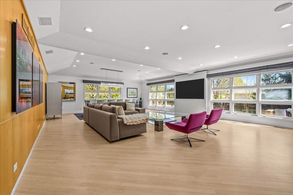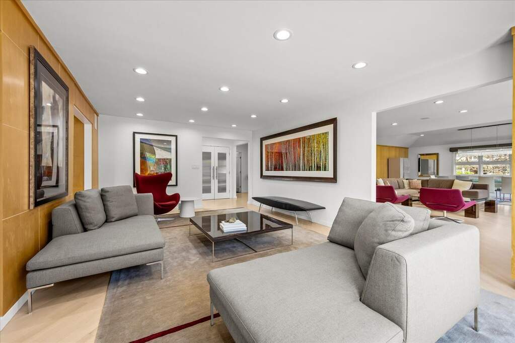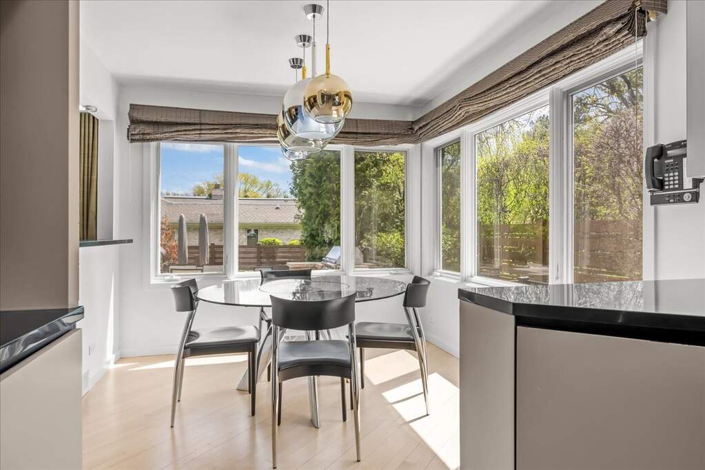 Sprawling fully renovated 5 bedroom, 4 full and 1 half bath brick and cedar home set on just under a half-acre in desirable North Trail, showcasing modern design throughout. Completely expanded and reimagined in 2001, this meticulously maintained home offers exceptional space and seamless indoor/outdoor living. A striking entry with wood and stainless steel doors open to soaring volume ceilings and walls of windows, filling the home with natural light. The expansive main level features generously sized rooms that flow effortlessly, ideal for both everyday living and entertaining. The impressive great room offers ample space for both living and dining, highlighted by paneled wood accent walls, a tray ceiling, and walls of windows offering views of the stunning outdoor setting. Adjacent is a large living room with continued wood detailing and patio access. The spacious family room features a vaulted ceiling, granite-surround gas fireplace, and additional access to the patio and fire pit. The kitchen is designed for both function and style, featuring custom slab cabinetry, granite countertops, a zebra quartz backsplash, stainless steel appliances, breakfast bar, and sun-filled eat-in area. A formal dining room provides the perfect space for larger gatherings. The separate laundry room with additional storage and catering space enhances convenience. The well-designed mudroom with custom built-ins is located off the heated 2-car garage, complemented by a driveway with a snow melt system. The private first-floor primary suite is a true retreat, offering a vaulted ceiling, floor-to-ceiling windows, two walk-in closets, and sleek spa-like granite bath with double vanity, separate steam shower, and whirlpool soaking tub. An office and exercise room complete this exceptional primary wing. The custom floating wood and steel staircase - truly a statement piece - leads to the second level, featuring three additional bedrooms with walk-in closets, two full baths, a versatile loft space ideal for a playroom, lounge or kids' hang-out space, and two large storage rooms. The finished lower level includes a recreation room, fifth bedroom with en-suite bath, and ample storage. The professionally landscaped, fully fenced yard is nothing short of spectacular, complete with landscape lighting, irrigation system, and outdoor speakers. Three expansive brick paver patios provide multiple entertaining areas, including a built-in grill and in-ground fire pit. Prime Deerfield location with close proximity to Walden Elementary and Deerfield High School.