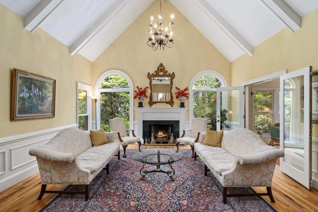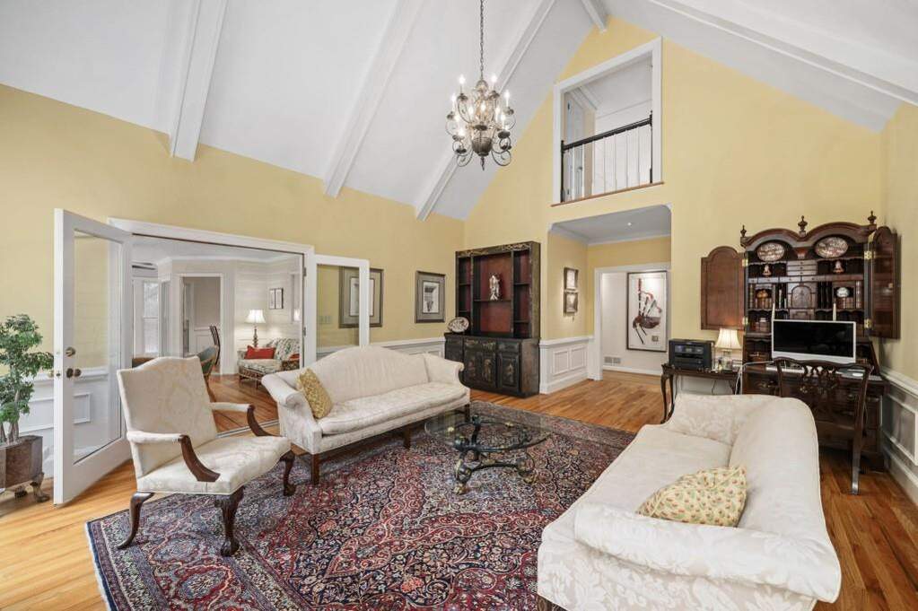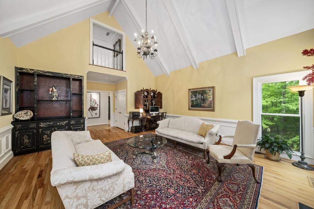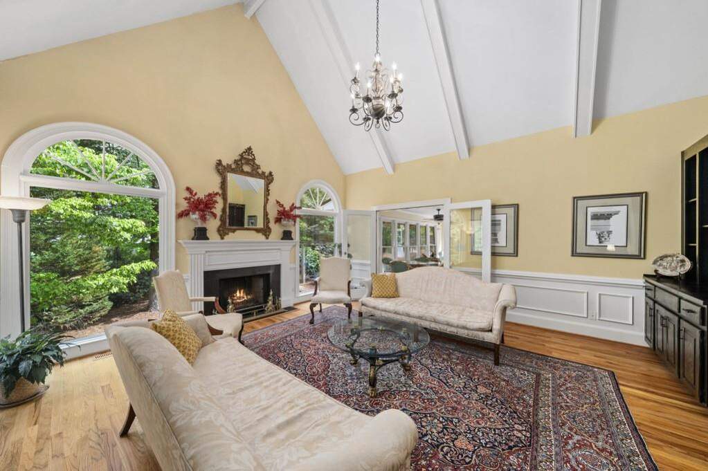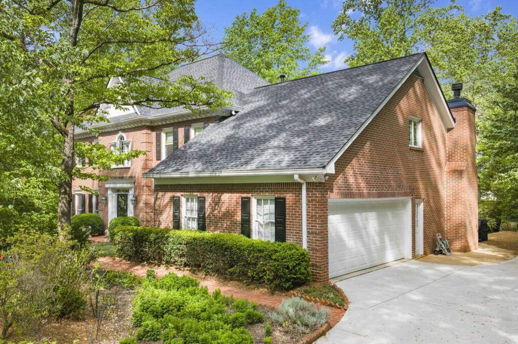 Gracious traditional home on a beautifully landscaped cul-de-sac lot in sought-after Huntcliff. This classic brick residence offers timeless architectural details throughout, including beautiful millwork, crown molding, custom fireplace mantels, and hardwood floors. Solid and well-cared for, this home has been thoughtfully improved over time, offering both enduring quality and everyday comfort. Designed for both refined entertaining and comfortable everyday living, the main level features a dramatic vaulted living room with a custom built-in wet bar and hand-painted Chinoiserie detail, along with a handsome wood-paneled office with a fireplace and a secondary bedroom on the main. The kitchen, keeping room, and sunroom flow seamlessly together, creating a warm and inviting gathering space. The kitchen is appointed with granite countertops and backsplash, a Dacor gas cooktop with electric starter, Bosch dishwasher, and GE ovens and microwave replaced last year. Upstairs, the spacious primary suite offers a fireplace, sitting area, generous closets, and a luxurious primary bath featuring a steam shower and separate soaking tub. Secondary bedrooms are all well-proportioned. The terrace level offers exceptional flexibility with an additional bedroom and full bath, a built-in bar, generous living area, and abundant storage, making it ideal for guests, extended living, or a private retreat. Additional highlights include 5 fireplaces, temperature-controlled zoning on each floor, new garage doors in 2025, a tankless water heater added in November 2025, driveway redone in 2021, and a new roof in 2026. Set in Huntcliff, you'll enjoy access to top-tier neighborhood amenities including equestrian facilities, tennis courts, pickleball, a swimming pool, and a clubhouse on the Chattahoochee River. Convenient to GA-400 and I-285 with easy access to Downtown Roswell, Perimeter Mall, and Downtown Atlanta, plus nearby favorites like Morgan Falls Overlook Park, the Chattahoochee Nature Center, and the Roswell Riverwalk Trail.