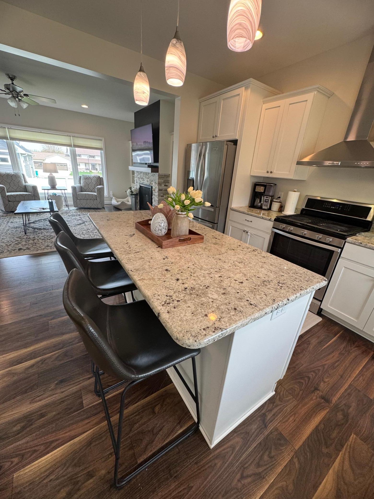 Stunning and Inviting!! Will be your first thoughts when you walk into this 5-bedroom 4 bath two story home! You will be greeted with the natural light flooding into the open floor plan. The clean crisp look of the kitchen with the stainless-steel appliances and the center island adds to the easy flow of the kitchen workspace. The large front entry offers seating and the mudroom/laundry entry off garage has storage bench for all those "need to run out the door with" Main floor bedroom offers opportunity as guest room or office. The Living room with fireplace is large and comfortable and provides easy communication with whoever is doing the cooking tonight. Early coffee or late drinks and conversation in the sunroom...perfect! Master Suite highlights impressive, tiled shower and soaker tub in master bath. 2 more bedrooms and hollywood bath and a playroom/office completes the upstairs. Downstairs offers another bedroom and beautiful bath. Wait there is more! There is a Fun family room/game room with wet bar complete with full refrigerator and dishwasher! and in floor heat! You will end many a night here! This immaculate ready to move into home with fenced yard and in ground sprinkler system is ready for you to begin your next great adventure!