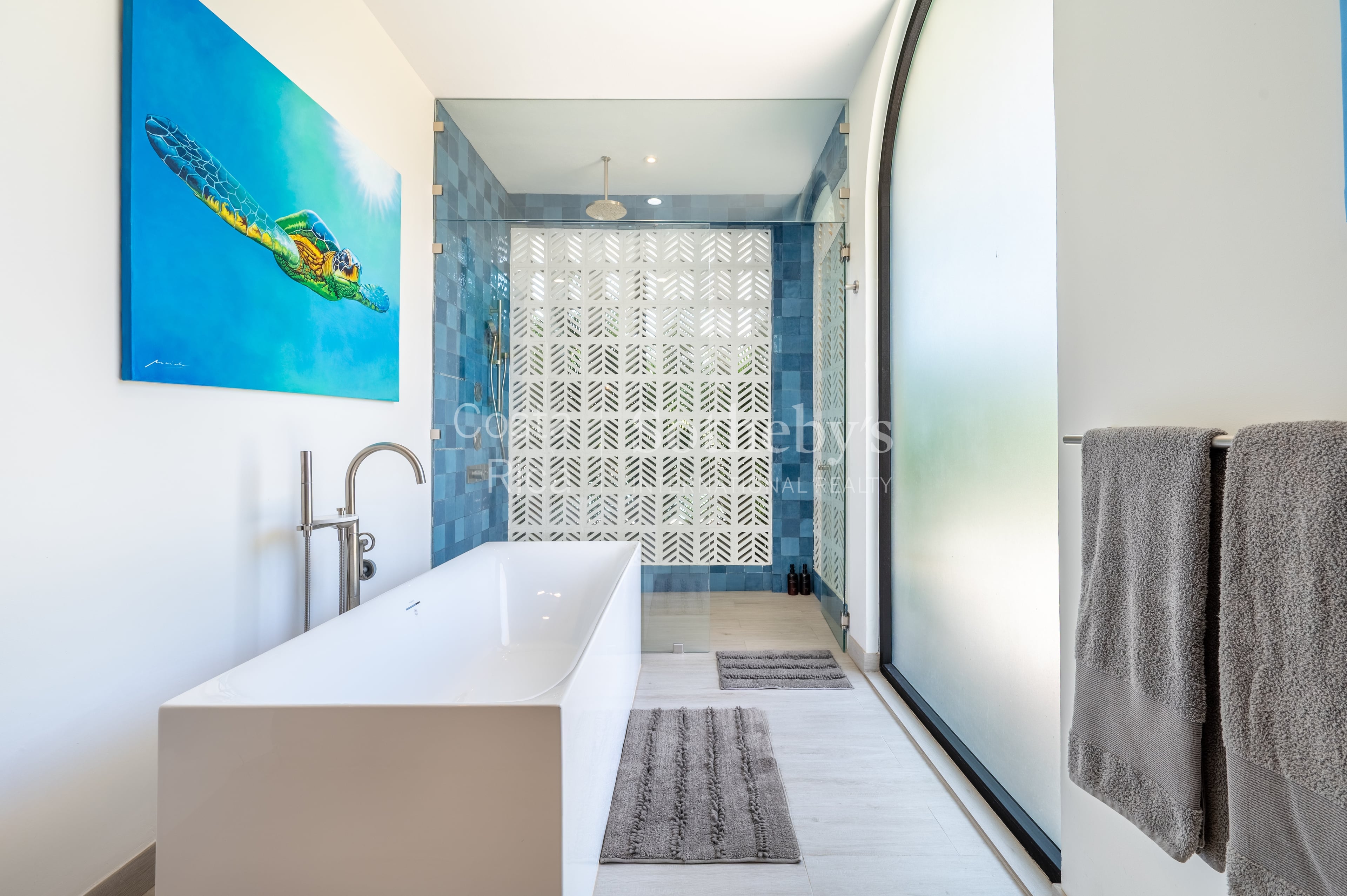 This elegant two-story residence features six generously appointed bedrooms, designed to accommodate both relaxed family living and sophisticated entertaining. The home includes a private garage, expansive tropical gardens, and a spectacular rooftop terrace—perfect for sunset gatherings or tranquil morning yoga sessions surrounded by ocean breezes.