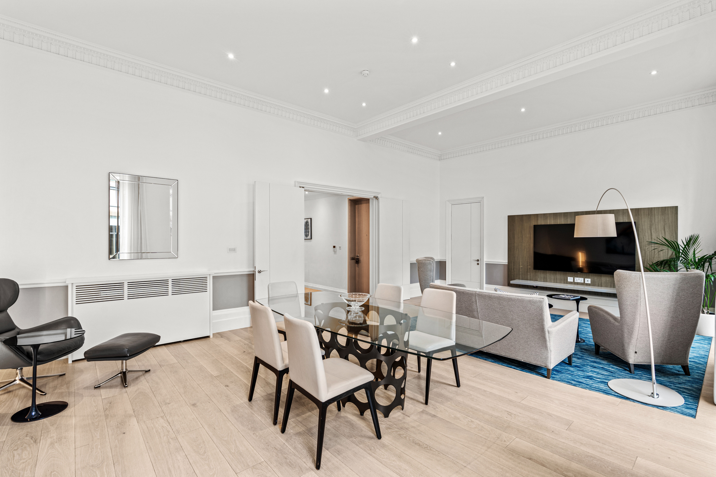 This 1,130 sq ft lateral apartment is situated on the third floor of Hertford Street Residences of Hertford Street Residences, a newly renovated boutique residential development offering beautifully composed homes. Residents enjoy exclusive access to the COMO Shambhala Metropolitan London Spa and Gym, concierge, and à la carte services such as daily housekeeping, dry cleaning and room service.