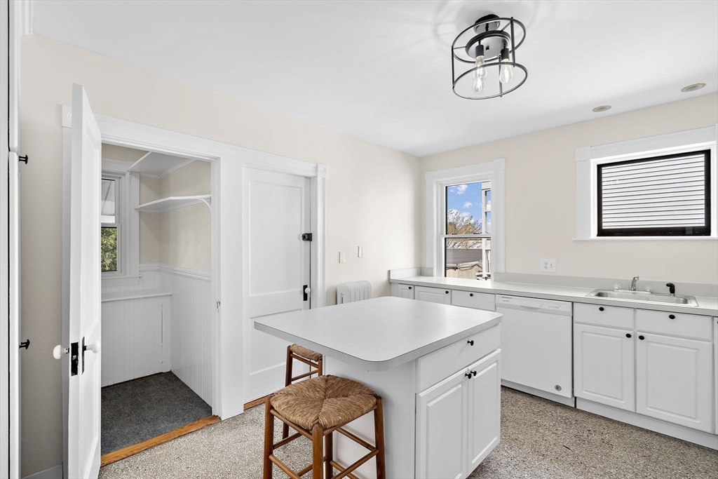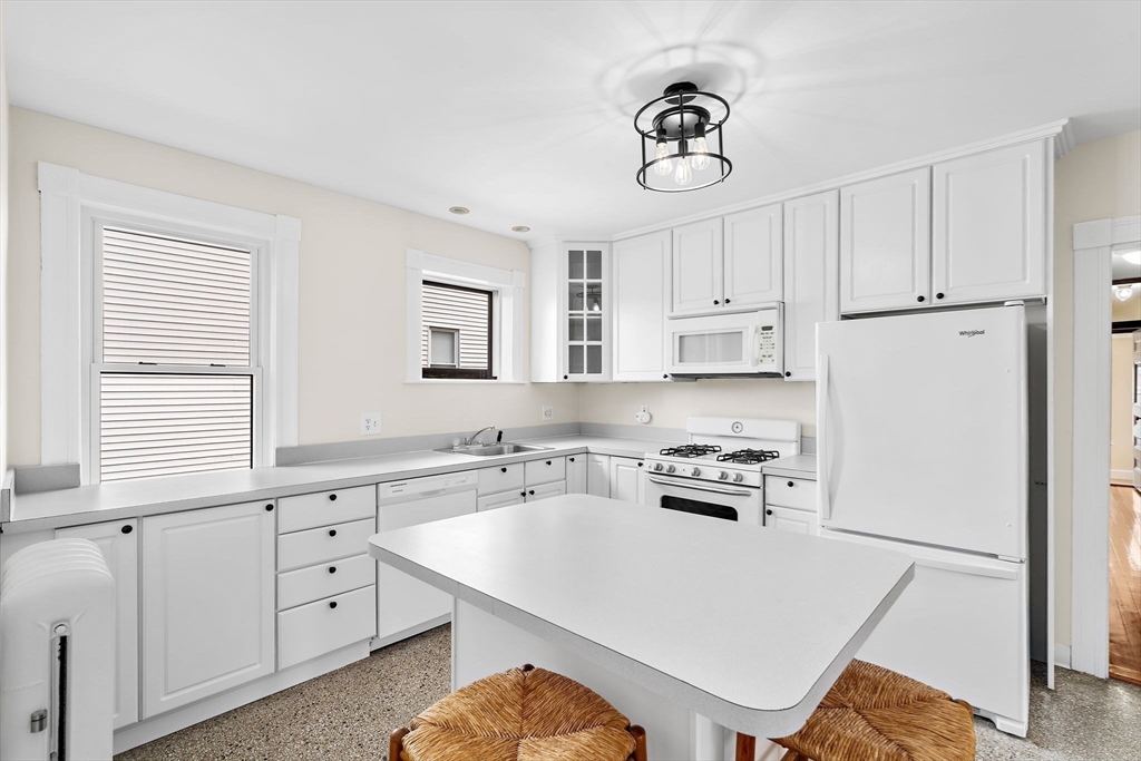 Incredible, bright & airy upper level condo between Waverley and Cushing Squares with 1,698 sq.ft. of living area. Main floor features living room, dining room with built-in hutch, sun room, kitchen with island and pantry, rear mahogany porch, full bath and 2 bedrooms - upper floor has a bedroom and a bonus room that is great for an office, yoga or mahjong. Many updates including gleaming fir wood floors, new wall-to-wall carpet, Harvey replacement windows and separate utilities (gas/oil/water/sewer/electric). The basement has laundry, oil boiler with newer double-walled storage tank and plenty of common storage space. Two deeded parking spots and a large common backyard with raised garden bed and storage shed. Close to public transit, shopping, dining, cafes, grocery store, playgrounds, etc! Not to be missed. Also being sold as a two-family.