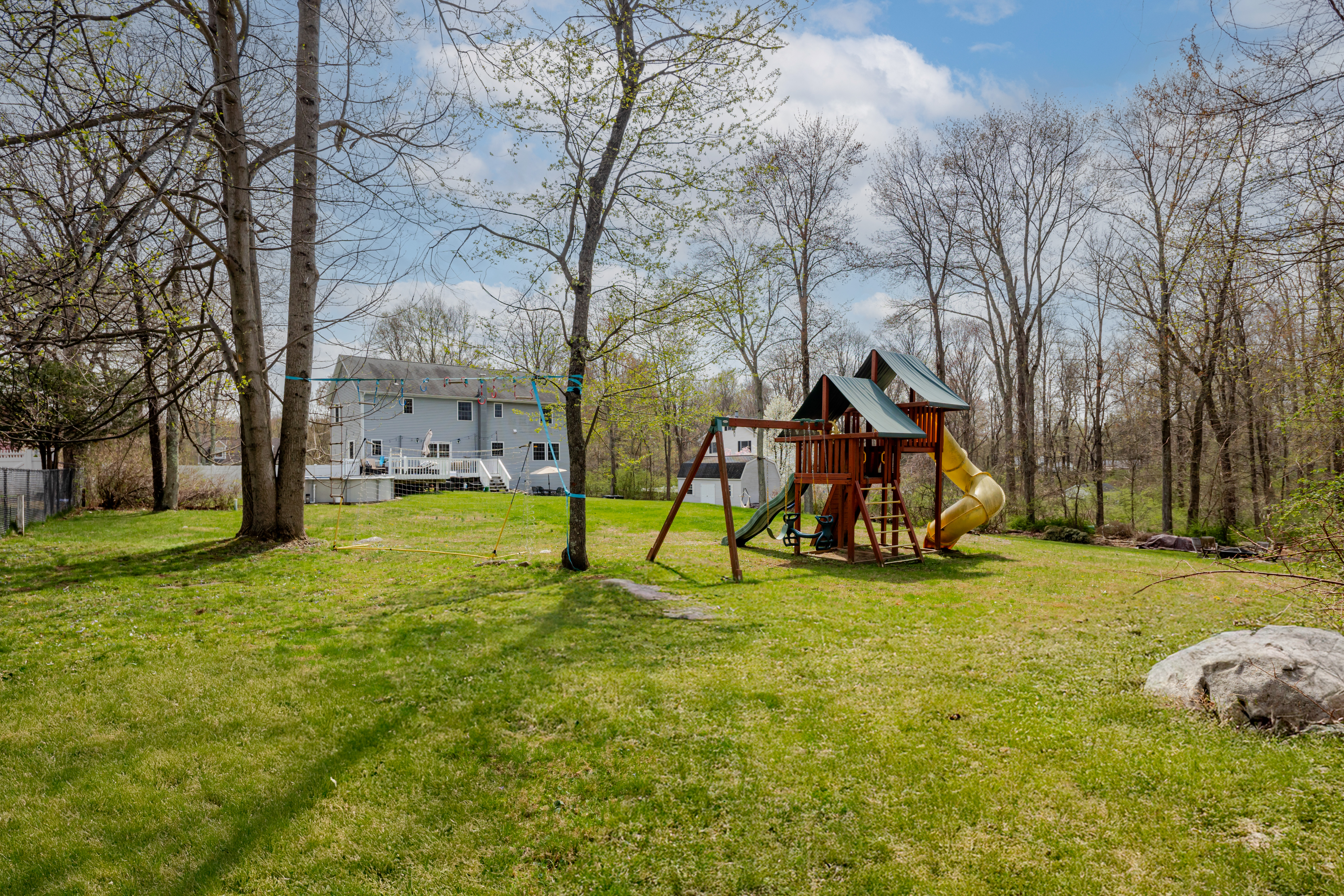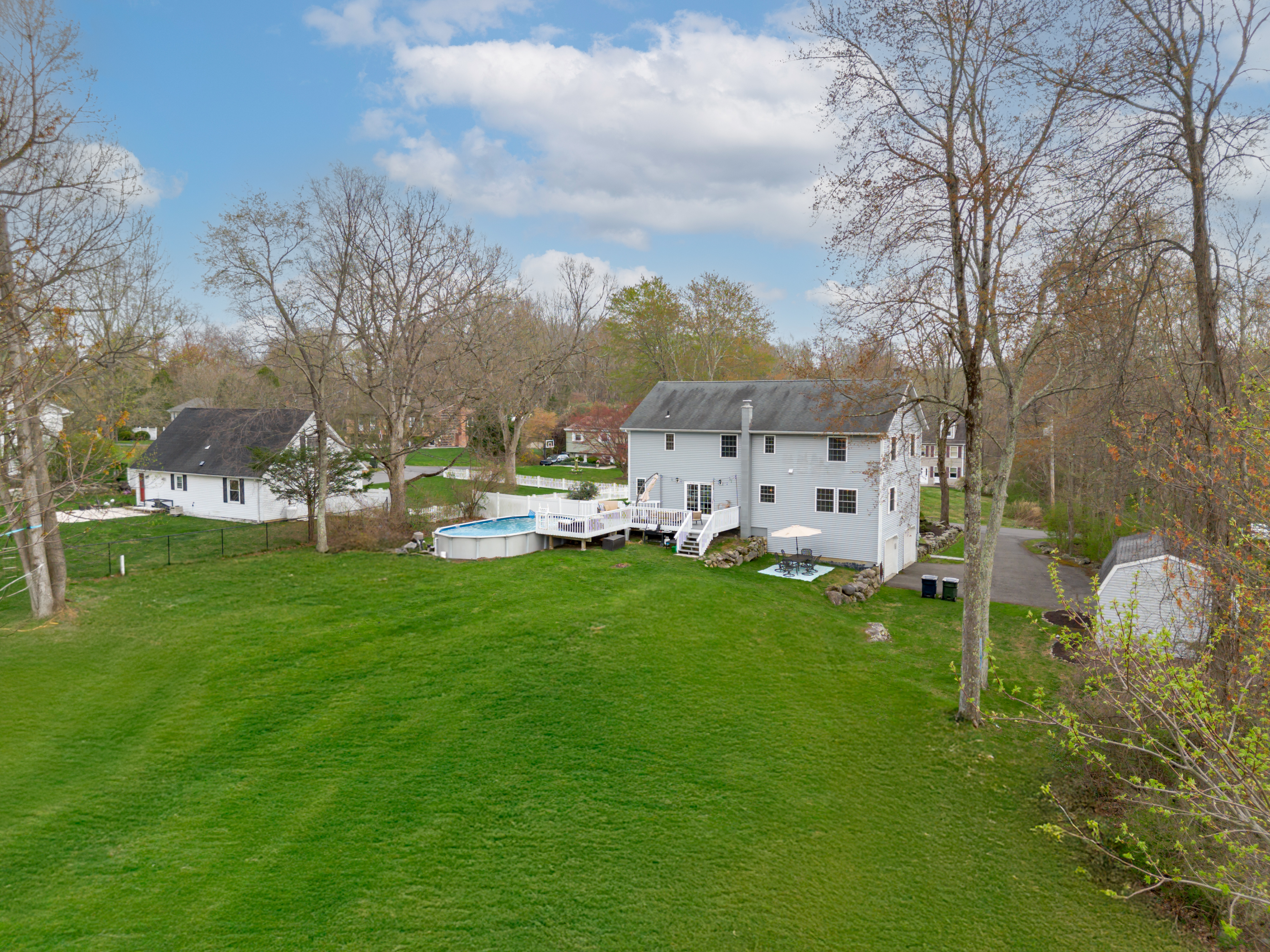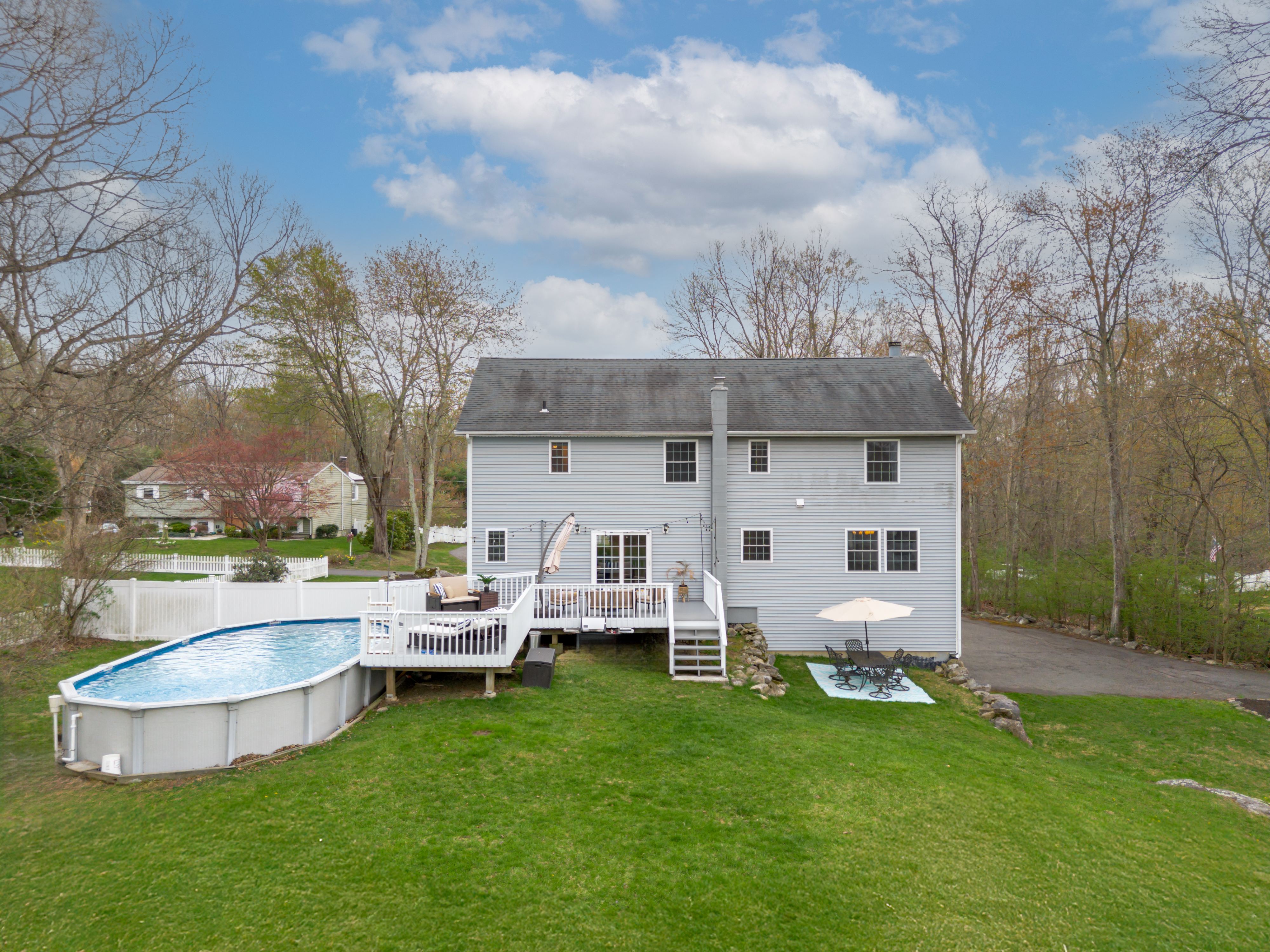 Welcome to this magnificent, beautifully updated Colonial nestled in a tranquil and private New Fairfield neighborhood. This home offers a stunning open floor plan with gleaming hardwood flooring spanning both the main and upper levels. The grand entrance provides an immediate "wow" factor, leading into an elegant layout where the living and family rooms flow seamlessly into a formal dining area-perfect for both relaxation and entertaining. The chef's dream comes true in the sun-drenched gourmet kitchen, which features stainless steel appliances, a stylish brick-layer backsplash, a center island and pantry. The casual dining area with sliders opens directly to a generous, freshly stained deck and a built-in above-ground pool, overlooking a sprawling, level backyard ideal for outdoor activities. The upper level boasts a primary suite complete with a walk-in closet and updated full bath. You will also find three additional guest rooms with closet space, shared bath and a stunning balcony. For extra versatility, the finished lower level includes a recreation room plus dedicated space for a home gym or office. Practicality meets luxury with a main-level laundry room, an attached two-car garage including a shed that serves as the third car garage with electric and attic storage-and a generator hookup with 200-amp service. Perfectly situated on the west side of town, you are minutes from shopping, restaurants, schools, and the New York border for an effortless commute location.