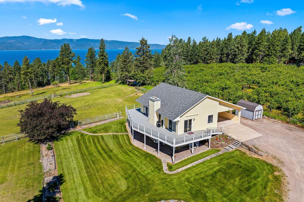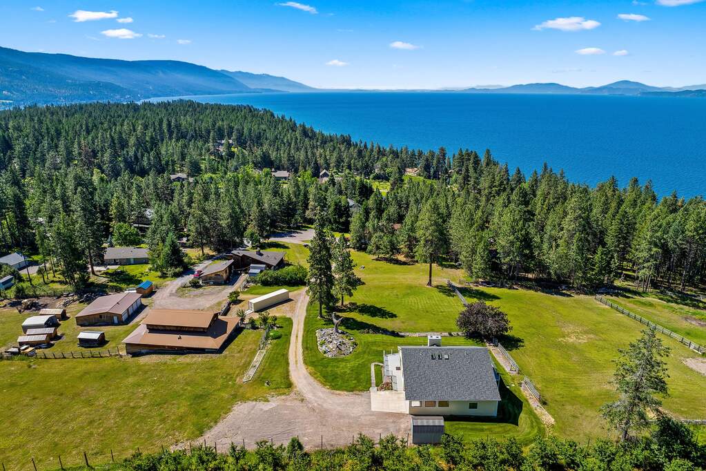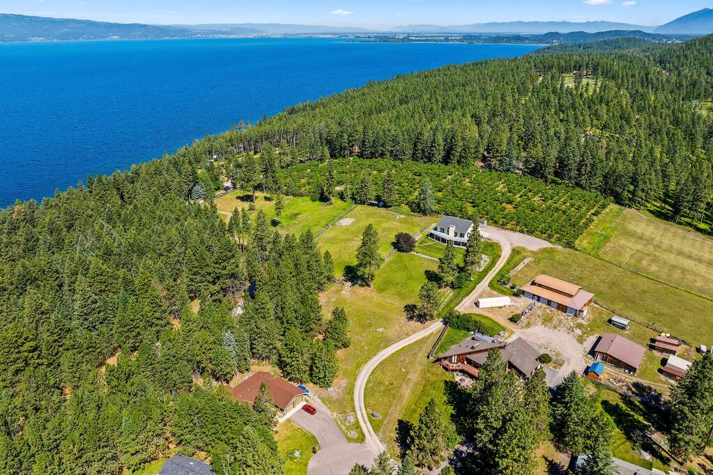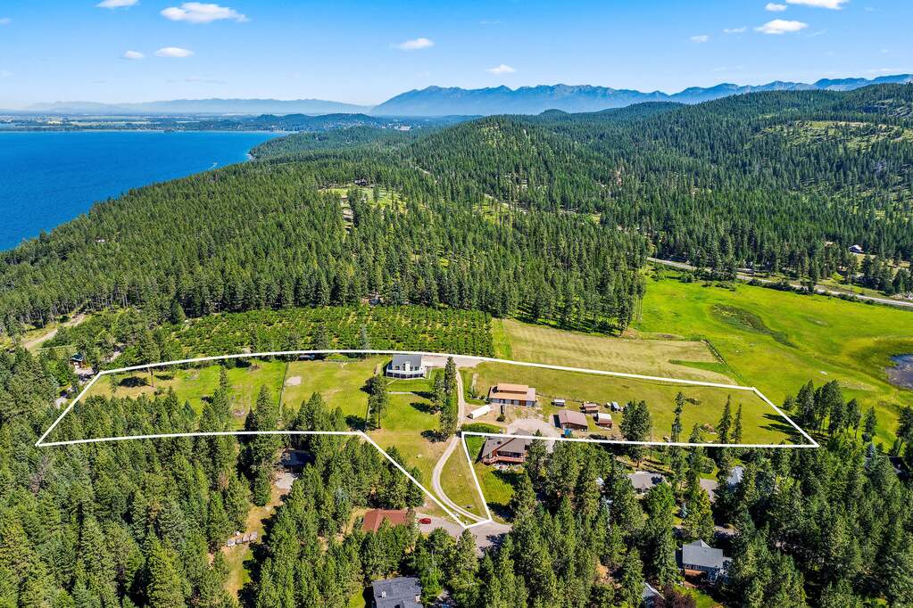 Nestled on 8.38 private acres just minutes from downtown Bigfork & the sparkling waters of Flathead Lake, this versatile property offers extraordinary potential & breathtaking surroundings. The 3BD/5BA home boasts 3,026 SF of living space, an attached heated 26'x28' garage, and is complemented by panoramic mountain vistas & views of Flathead Lake. Multiple buildings span the property, including a charming cedar barn w/ half bath, a lean-to, a 2nd detached four-stall garage, cedar storage sheds, & a tractor port, providing ample space for hobbies, storage, or future ventures. With 3 separately surveyed parcels & multiple building sites, the possibilities are endless-whether you envision a private estate, multi-family retreat, or investment opportunity. Expansive lawns invite outdoor gatherings & recreation, while the serene setting ensures both privacy & convenience. Experience Montana living w/ room to create your own legacy. See Feature Sheet in Docs. HOA for .66 parcel only