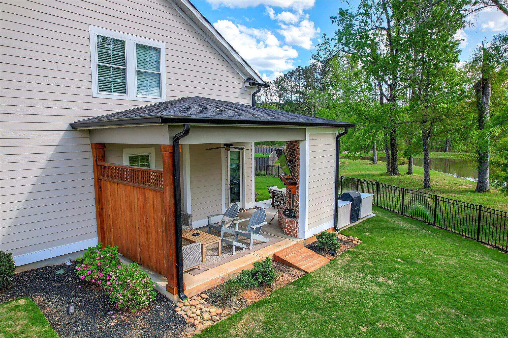 This exceptional residence by PDH is a masterfully crafted home that blends timeless elegance with modern sophistication, offering a refined living experience in every detail. Thoughtfully designed with both comfort and style in mind, this open-concept floor plan features a highly desirable owner's suite on the main level, creating a private retreat within the heart of the home. Upstairs, three generously sized bedrooms, two full baths, and a versatile bonus room provide exceptional space for family and guests, ideal for a media lounge, executive office, or private getaway. The owner's suite serves as a true sanctuary, featuring a spa-inspired bath complete with dual vanities, a six-foot soaking tub, a beautifully tiled walk-in shower, private water closet, and an expansive walk-in closet with direct access to the laundry room for added convenience. At the center of the home, the chef's kitchen is both striking and functional, showcasing custom soft-close cabinetry, a professional-grade 48-inch gas range, and an oversized island that seamlessly overlooks the impressive Great Room. A sunlit breakfast area completes the space, perfectly suited for both casual mornings and elegant entertaining. The Great Room is elevated by a dramatic two-story vaulted ceiling, creating a grand yet inviting atmosphere. Luxury finishes are thoughtfully incorporated throughout, including 10-foot ceilings and 8-foot doors on the main level, rich site-finished hardwood flooring, and quartz countertops that enhance the home's sophisticated appeal. Outdoor living is equally impressive. The Game Day back porch is designed for year-round enjoyment, featuring a comfortable sitting area, gas fireplace, and ceiling fan, all overlooking a serene pond view that offers both privacy and natural beauty. For those who value exceptional curb appeal, this home stands apart as the only property in the neighborhood featuring premium Zeon Zoysia grass, delivering a lush, manicured landscape. Additional enhancements include black ornamental fencing, a custom-built shed by a local craftsman, a stand-alone soaking tub, coffered ceilings, and a full gutter system surrounding the home. With a proven history as a sought-after Masters rental, this property also presents a unique opportunity for investment potential. More than a home, this is a statement of quality, comfort, and elevated living. Schedule your private showing today to experience it firsthand.