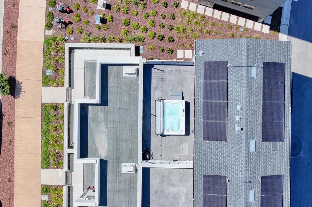 Rooftop home at The Dunes, ocean views from several rooms. 2354 sq. ft. home offers an inverted floor plan, 3 bedrooms, 3 full bathrooms plus half bath for visiting guests. The kitchen is equipped with built-in oven range, microwave, refrigerator, island, hood over range, and pantry. Flooring includes carpet, LVP, and tile. The family room features a fireplace, providing a cozy space for gatherings. Laundry facilities with washer and dryer located inside on upper floor. Additional features include high ceilings, skylight, walk-in custom organized closets, custom window coverings, central forced air with OWNED solar system, multi-zone cooling. This Smart home includes a 2-car attached garage. Very Energy-efficient with solar power. Nice ocean view office too. Included in price seller has installed custom window coverings, and on the rooftop a gorgeous new hot tub with multi color choices, Mood lights across the Private rooftop patio area with sweeping ocean views, perfect for whale watching and unwinding after a busy day. Wired for ceiling heaters, plumbed for a sink and BBQ, On the first floor there is a 1 bedroom w/full bathroom plus family room-kitchen area with refrigerator, oven, private entrance which you could rent or perfect for mom and dad.