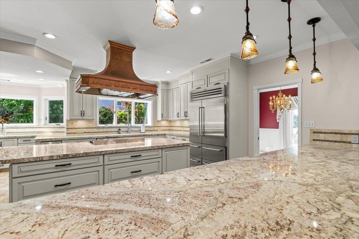 A refined custom residence on a nearly quarter-acre lot in one of Lodi's most sought-after Sunwest neighborhood with access to award-winning schools. This second-owner home offers privacy, scale, and an elevated sense of living just minutes from popular Lodi wine country. Thoughtfully designed for both everyday comfort and entertaining, the home unfolds with beautifully proportioned spaces, mature landscaping, and a warmth and livability. The remodeled kitchen is both polished and functional, appointed with Sub-Zero refrigeration, high-end KitchenAid appliances, wine refrigeration, a commercial ice maker, and custom storage features that make hosting feel effortless. A separate private wing offers exceptional flexibility for guests, multigenerational living, a media retreat, home office, or additional bedroom suite, complete with wine refrigerator, microwave and built-ins. The primary suite is a true retreat,featuring a spa-inspired bath with heated floors, steam shower, body jets, and a jetted soaking tub designed for daily restoration. Throughout the home, Milgard windows, French doors, whole-house wired stereo, and a split HVAC system replaced in 2021 reflect the quality, care, and thoughtful investment discerning buyers appreciate. A recently replaced large-capacity recirculating water heater adds comfort and efficiency. Outside, beautifully maintained grounds and mature landscaping create a sense of privacy while the generous lot provides room to relax, gather and enjoy.--3D tour available.