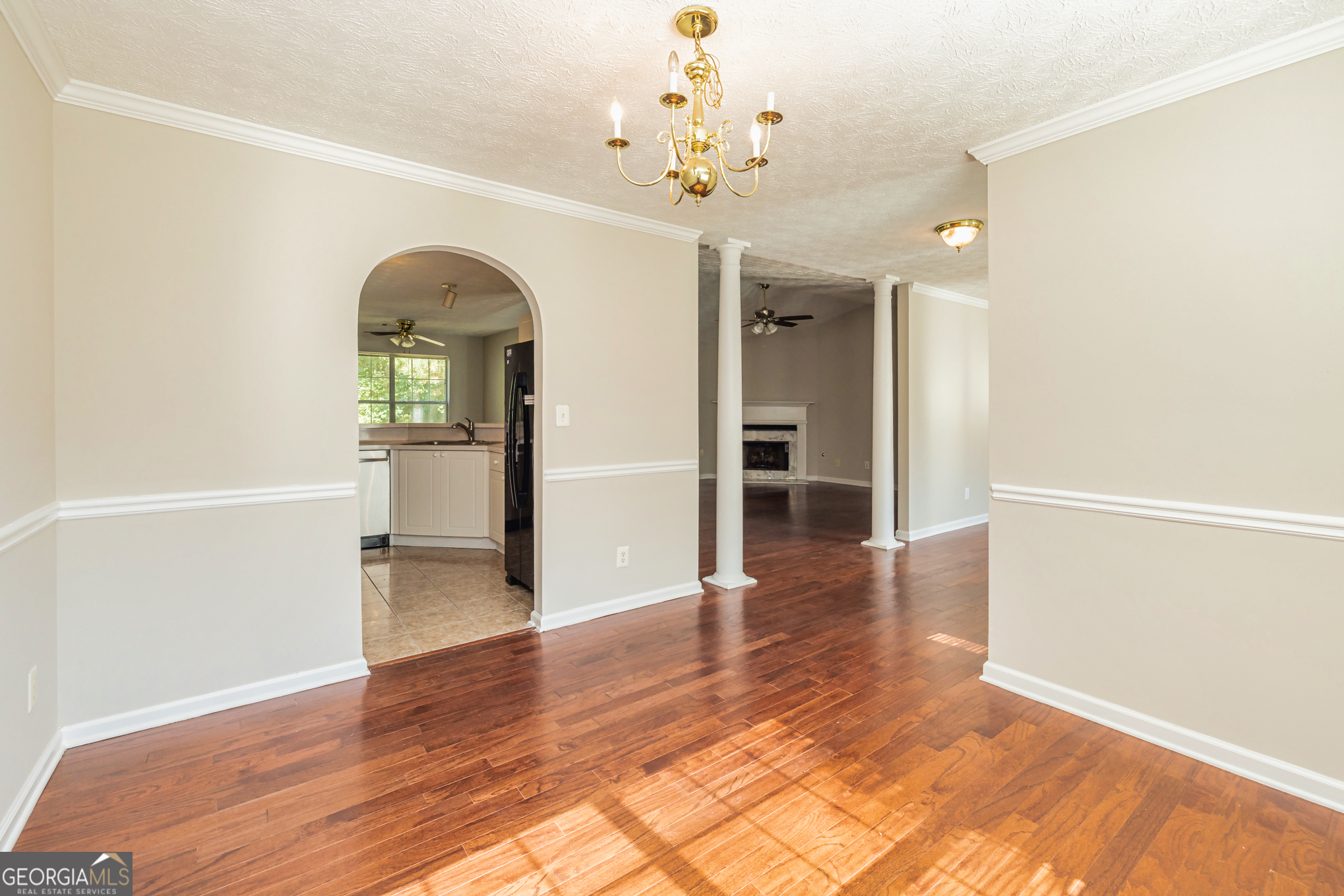 Step into this charming brick-front home and instantly feel at ease. A covered front entry leads you into a welcoming foyer featuring elegant crown molding and gleaming hardwood floors. To your left, enjoy a formal dining room perfect for hosting special dinners, and to your right, a flexible living room or home office-both showcasing beautiful hardwood flooring and classic trim. Continue into the spacious family room, where a marble-surround fireplace with gas logs, hardwood floors, and a ceiling fan create the perfect spot to relax or entertain. The bright, open kitchen will delight any home chef with its abundant white cabinetry, updated appliances, breakfast bar, pantry, and sunny breakfast nook for dining. The primary suite is your private retreat, featuring brand-new carpet, ceiling fan, and double doors opening to a luxurious bathroom with a tile-surround garden tub, walk-in shower, linen closet, and roomy walk-in closet. With a split-bedroom floor plan, the two additional oversized bedrooms-also with new carpet and ceiling fans-offer plenty of comfort and privacy. A full hallway bath includes a shower/tub combo, tile flooring, and extra linen storage. Step outside to enjoy the screened-in porch overlooking your private backyard-the perfect spot for morning coffee or quiet evenings outdoors. Conveniently located off the kitchen, the laundry room adds everyday functionality and provides easy access to the attached 2-car garage. This home combines style, comfort, and move-in readiness in one perfect package to include a new HVAC, freshly painted, new carpet and updated lighting. Don't miss your chance to make it yours!