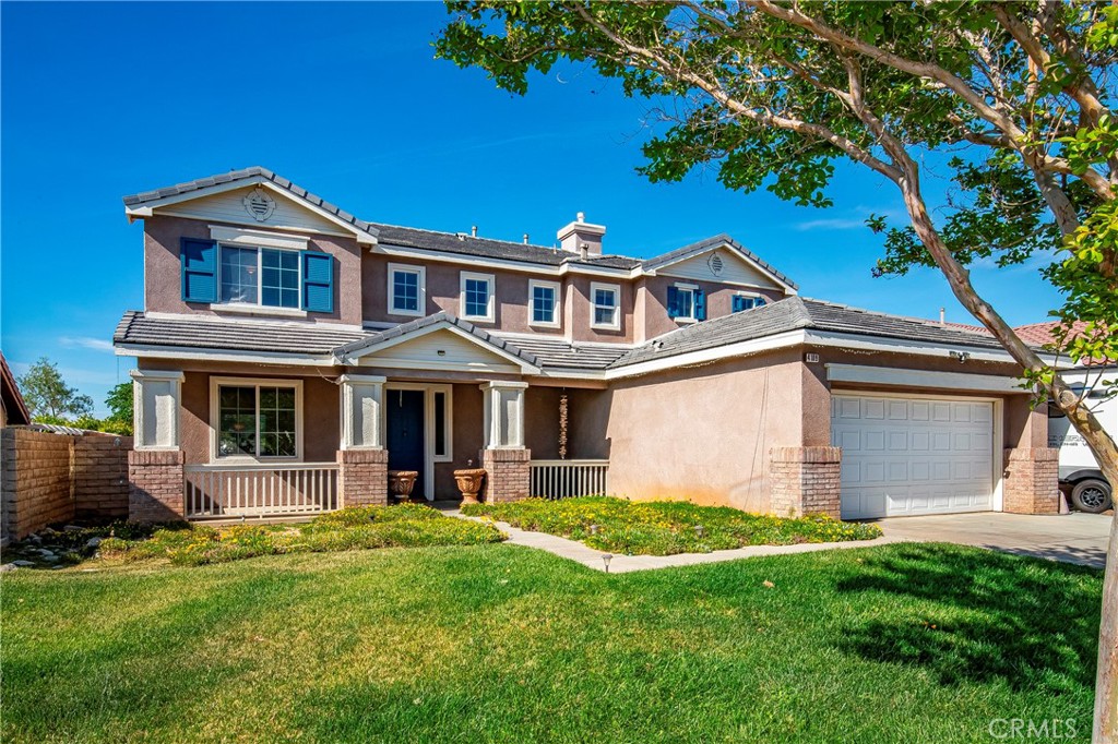 Located on the outskirts of the quaint town of Quartz Hill, this charming 5-bedroom + 3-bathroom home has 2,859 sq. ft. of living space, offering plenty of room to grow! Custom tile flooring, neutral-colored carpet, recessed lighting, and ceiling fans are found throughout the home. The floor plan offers a formal living room, formal dining room, family room, and a downstairs bedroom with a full bathroom that features a standalone shower, perfect for guests or in-law quarters. The kitchen has multiple cabinets, ample counter space, an eat/bar counter, and a dining area. The family room has a fireplace to cozy up to in the cold weather season. The upstairs includes an additional 4 bedrooms and the laundry room. The upstairs guest bathroom has a dual-sink vanity and a tub/shower enclosure. The spacious primary bedroom offers a walk-in closet. The primary bathroom has a split dual-vanity sink, a garden tub, and a standalone shower. Step out back and enjoy the landscape of mature trees and shrubbery. A concrete patio with brick trim and exterior block walls. The oversized two-car garage provides ample space for storage or a work area. Perfectly situated near amenities of grocery stores, gas stations, restaurants, schools, and with nearby access to the freeway for those who commute. Schedule your showing today to preview this home!