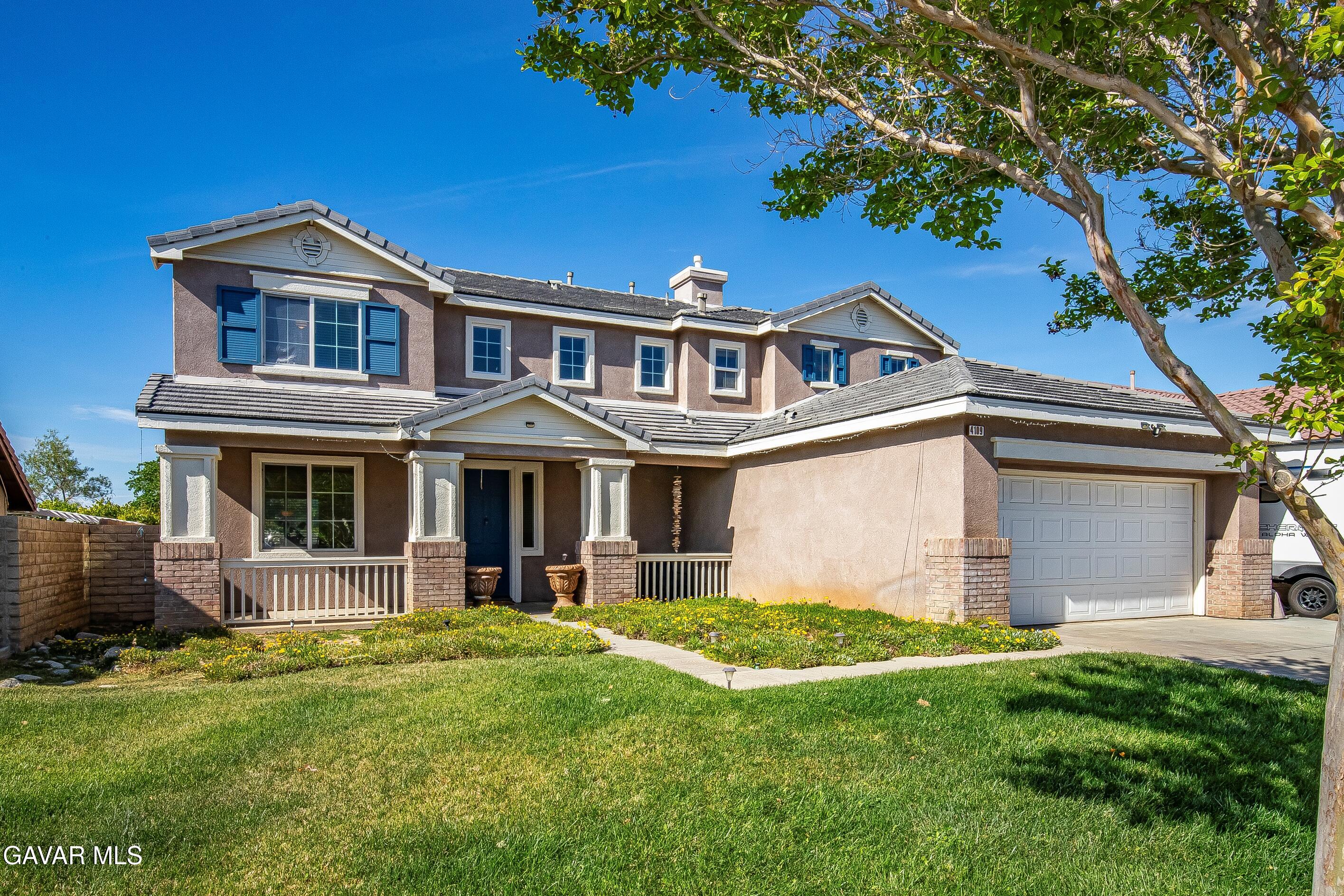 Located on the outskirts of the quaint town of Quartz Hill, this charming 5-bedroom + 3-bathroom home has 2,859 sq. ft. of living space, offering plenty of room to grow! Custom tile flooring, neutral-colored carpet, recessed lighting, and ceiling fans are found throughout the home. The floor plan offers a formal living room, formal dining room, family room, and a downstairs bedroom with a full bathroom that features a standalone shower, perfect for guests or in-law quarters. The kitchen has multiple cabinets, ample counter space, an eat/bar counter, and a dining area. The family room has a fireplace to cozy up to in the cold weather season. The upstairs includes an additional 4 bedrooms and the laundry room. The upstairs guest bathroom has a dual-sink vanity and a tub/shower enclosure. The spacious primary bedroom offers a walk-in closet. The primary bathroom has a split dual-vanity sink, a garden tub, and a standalone shower. Step out back and enjoy the landscape of mature trees and shrubbery. A concrete patio with brick trim and exterior block walls. The oversized two-car garage provides ample space for storage or a work area. Perfectly situated near amenities of grocery stores, gas stations, restaurants, schools, and with nearby access to the freeway for those who commute. Schedule your showing today to preview this home!