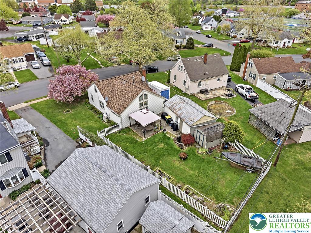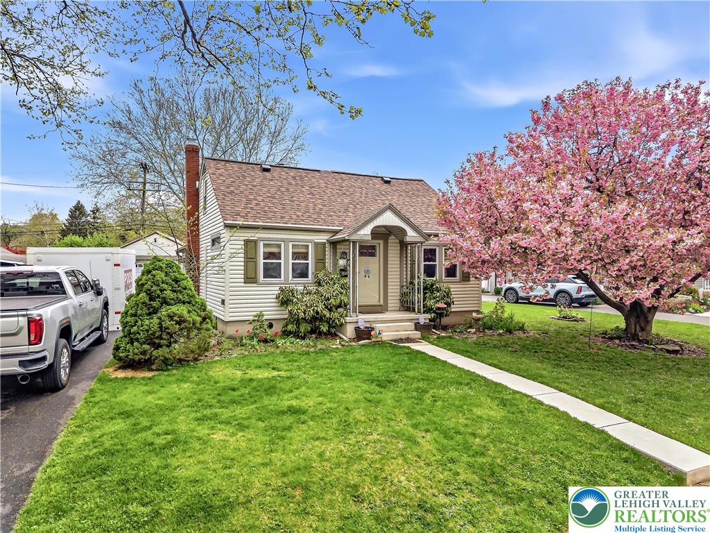 Desirable Cape Cod with garage in Nazareth! Enjoy a fenced backyard with a pond and patio perfect for entertaining. Spacious living room with a wood stove and cathedral ceiling, plus flexible dining/bonus space. Kitchen offers ample cabinets, counter space, and dishwasher. First floor bedroom and full bath on main level. Finished attic and basement with additional living space, powder room with shower, and laundry. Move in ready!