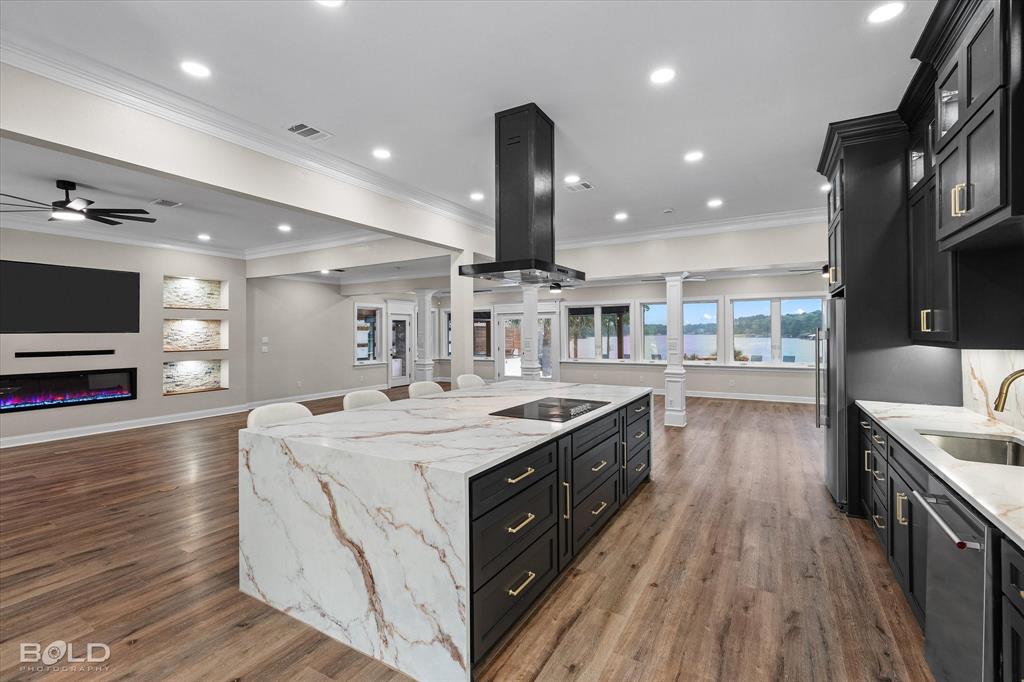 There are homes with updates, and then there are homes that have been completely reimagined. Set on 1.367 acres with approximately 144 feet of frontage on Black Bayou, this 5 bedroom, 3.5 bathroom home offers a rare blend of privacy, design, and true waterfront living, all within a highly convenient location just minutes from Bossier City, avoiding the longer drive often associated with other bayou properties further north. Originally built in 1993, the home has been extensively remodeled with high end finishes and a clean, modern aesthetic that still feels warm and inviting. Inside, the main living spaces are open and filled with natural light, featuring wide plank flooring, custom millwork, and a striking fireplace wall with built in display niches. The kitchen is both functional and beautiful, offering custom cabinetry, statement countertops, designer fixtures, and a large island. A walk in pantry and dedicated wine storage add thoughtful detail. The layout includes a formal dining room, sunroom, and a spacious upstairs game or media room. The primary suite is privately positioned with French doors leading to the backyard, pool, and sweeping water views. Step outside and the home transforms into a true retreat. A covered outdoor living area with a full kitchen, fireplace, and wood ceiling overlooks the pool, expansive decking, and bayou. The property extends to a private dock and boathouse for effortless access to the water, while a reinforced seawall adds both shoreline protection and long term peace of mind. Complete with a three car garage, ample parking, and a beautifully maintained lot, this is a rare opportunity to own a fully updated waterfront property that delivers both lifestyle and location.