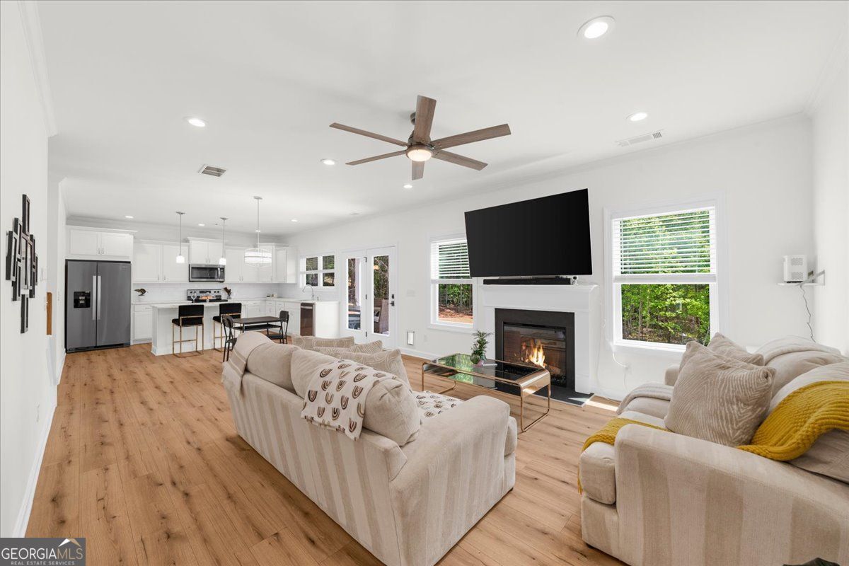 This stunning home seamlessly blends modern design with everyday comfort, all set in a peaceful neighborhood with no HOA restrictions. Ideally located near the charming town of Cleveland, the property also enjoys the added benefit of a park right next door-perfect for outdoor activities and relaxation. From the moment you enter, you're greeted by a bright, open living space perfect for both entertaining and relaxing evenings at home. The beautifully designed kitchen features high-end appliances, sleek finishes, and ample space to gather, making it the true heart of the home. The main-level primary suite offers a private retreat, complete with a spa-like en-suite bath and a spacious walk-in closet for ultimate convenience. Upstairs, you'll find additional bedrooms and versatile living areas that can easily be tailored to your lifestyle-ideal for guests, a home office, or creative space. Step outside to the inviting patio, perfect for enjoying quiet mornings or hosting evening gatherings. Whether it's coffee at sunrise or a sunset barbecue, this outdoor space is designed to be your personal escape. Professional exterior lighting has also been installed, beautifully enhancing the home's curb appeal and nighttime ambiance. Enjoy being just 10-15 minutes from some of North Georgia's most popular wineries, offering scenic views and weekend outings, and within close proximity to Helen, known for its charming alpine village, dining, and year-round attractions.