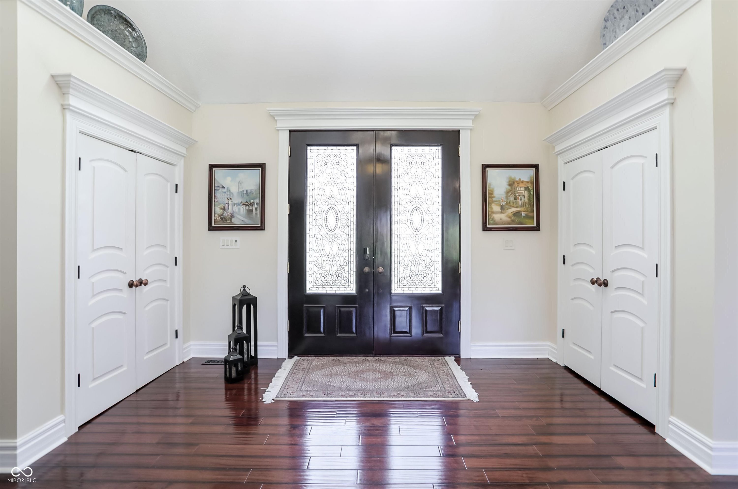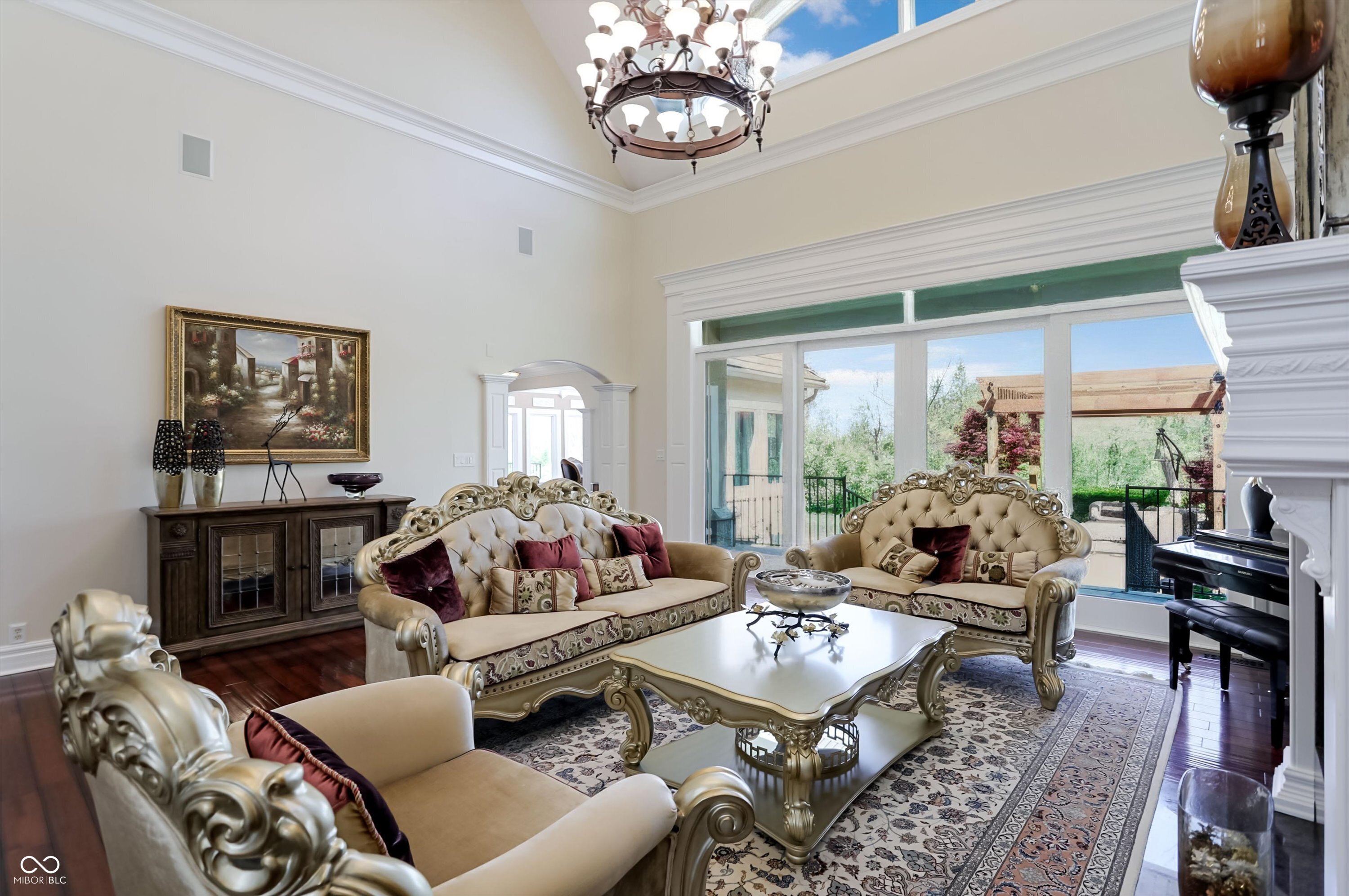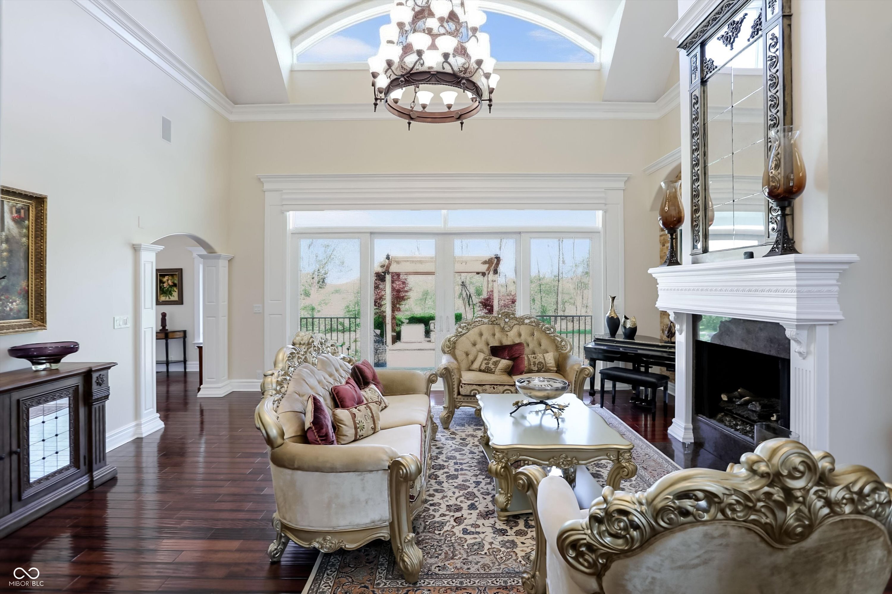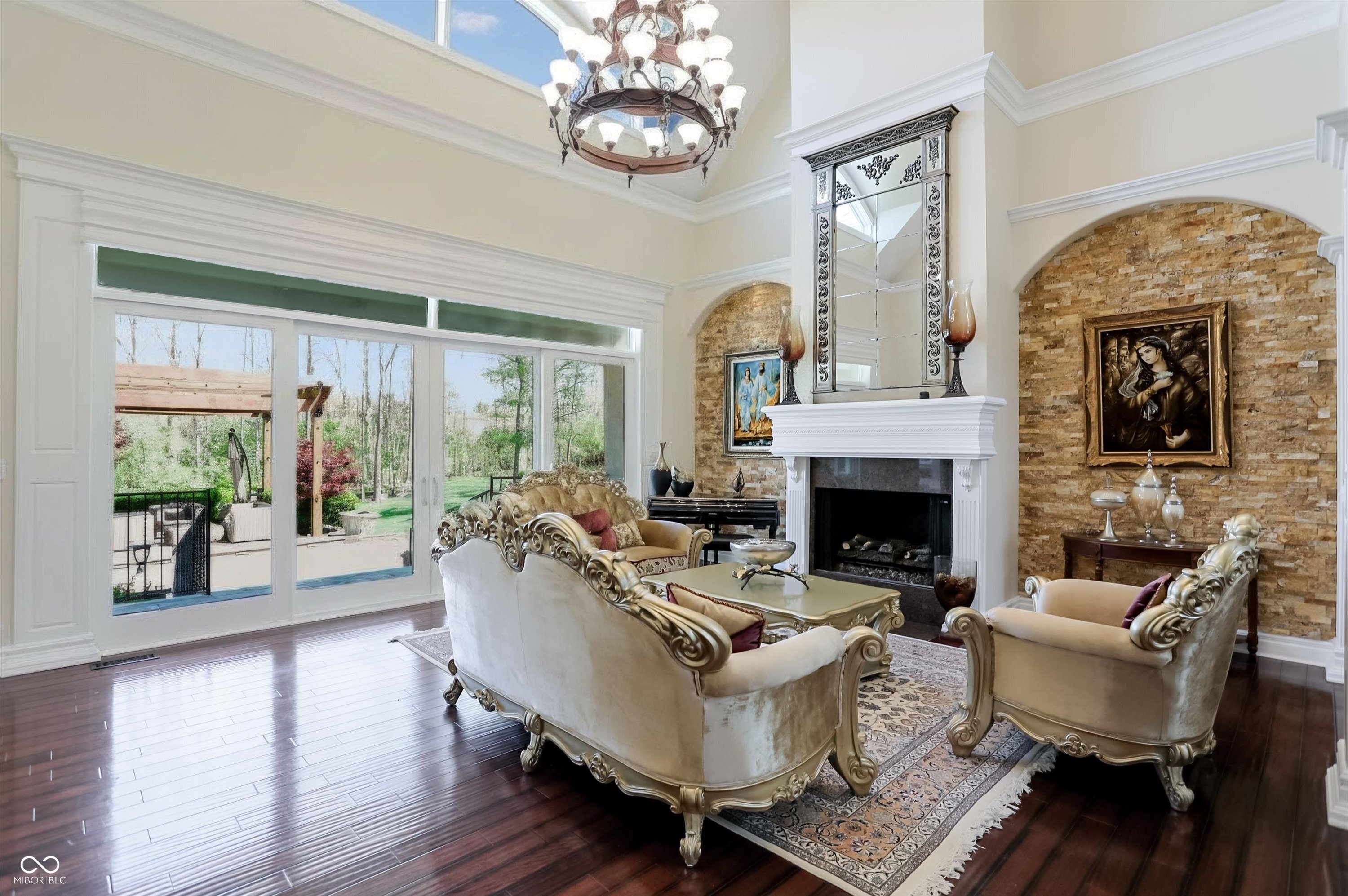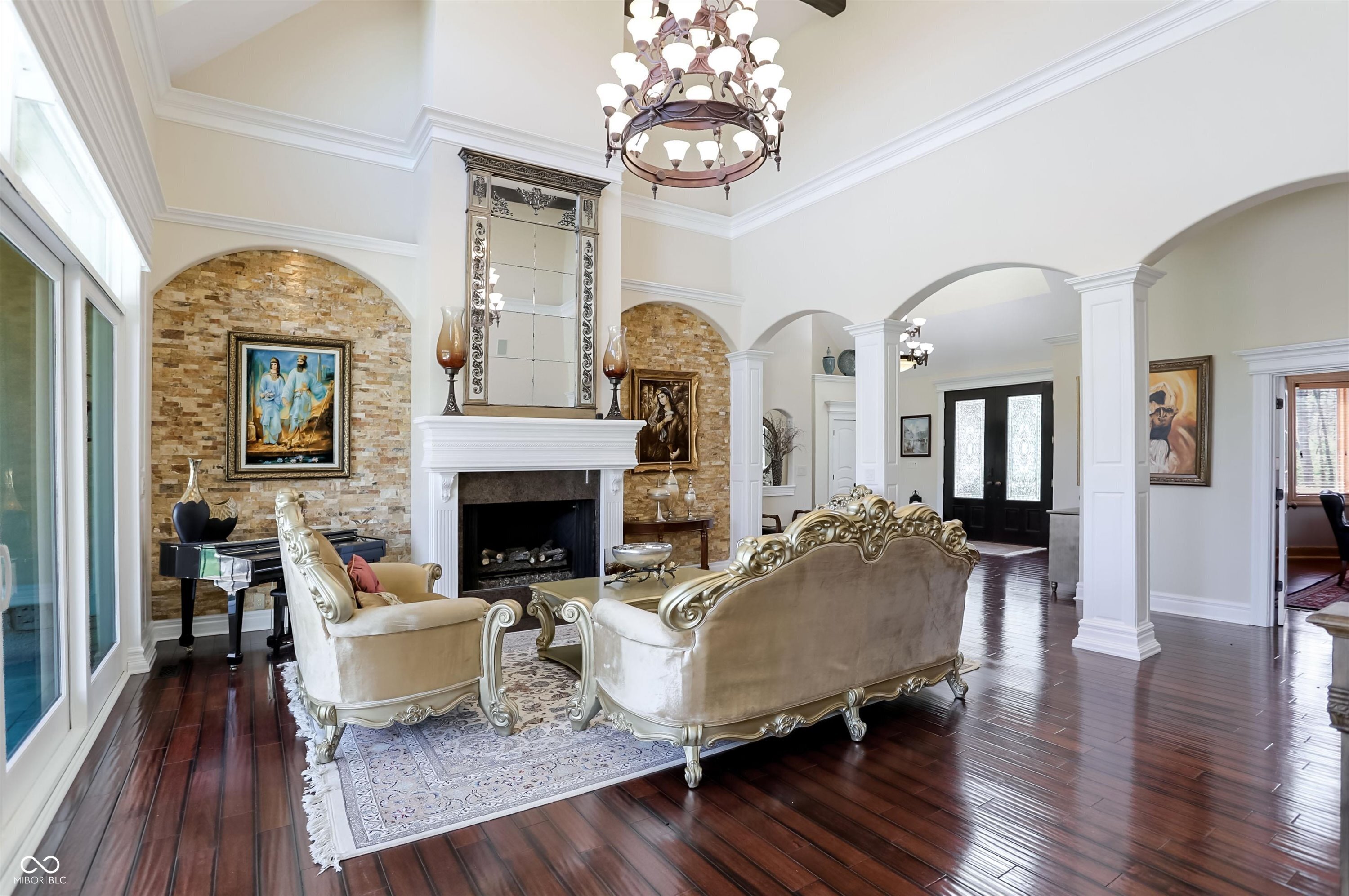 Rarely do properties become available in The Woods, home to one of Fishers most charming and exclusive streets. Comprised of just 12 custom estates, residents enjoy a distinctive boulder-lined streetscape, mature trees, and a picturesque stone bridge. The setting feels worlds away, yet sits just steps from the Hawthorns Golf and Country Club within the prestigious Hamilton Proper community. Positioned along the 9th fairway, this 10,000+ square foot estate offers a rare combination of scale, presence & privacy on nearly an acre. Featuring 6 bedrooms, 6 full baths, 2 half baths & a 4-car garage, the home is thoughtfully designed for both everyday living & elevated entertaining. From the moment you enter, soaring 20' ceilings & a grand foyer create an unforgettable first impression, opening to elegant living & dining spaces. A stately corridor leads to a richly appointed oval office with custom built-ins, while four fireplaces add warmth and character throughout. The fully reimagined chef's kitchen (2024) serves as the heart of the home, featuring high-end appliances, quartz surfaces, a dedicated prep area, beverage station, 10' walk-in pantry & seamless connection to gathering spaces. The main-level owner's suite offers a stone fireplace, private outdoor access & a spa-inspired bathroom with heated floors, steam shower & jetted tub. Upstairs, a loft anchors four generously sized bedrooms with walk-in closets & updated en-suite baths (2024) finished in marble & natural stone. The lower level is designed to be unforgettable, featuring a full-service bar (2024), wine cellar, home theater with fireplace, fitness space, sauna, guest suite & ensuite, multiple gathering areas & abundant storage. Outdoor living is equally compelling with a paver patio, firepit, spacious pergola & wooded backdrop creating a private setting for relaxing or entertaining. A rare opportunity to own a home that blends lifestyle, location, and architectural presence in a perfect location.