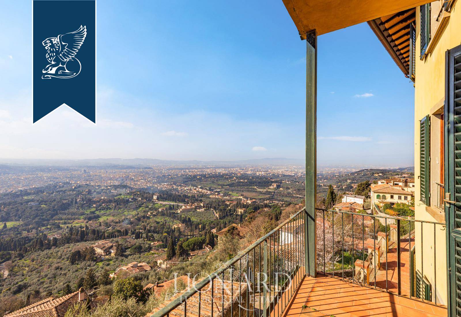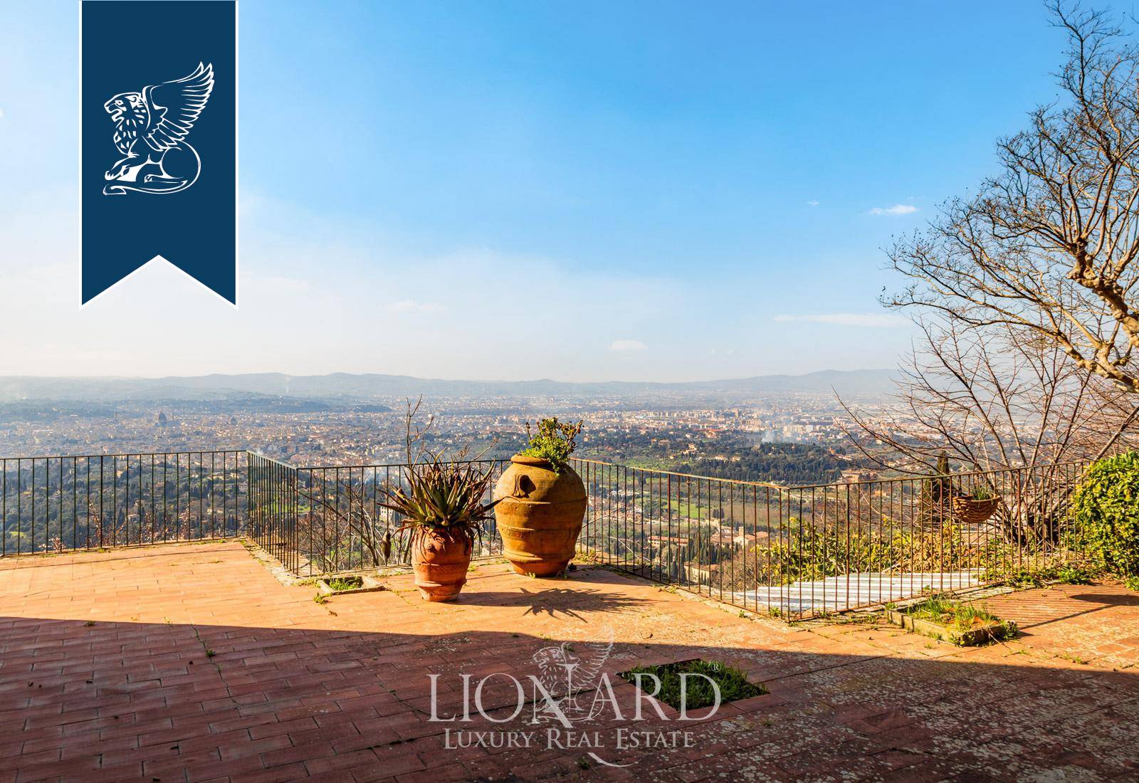 Set on the scenic slopes of Fiesole, this villa enjoys sweeping views over hills, olive groves, and the skyline of Florence. The main building, arranged along the ridge, opens toward the valley with large windows and a panoramic terrace, maximising natural light. The 600-sqm terraced garden offers outdoor spaces for dining, relaxation, and quiet retreats immersed in greenery.The property spans approximately 900 sqm across three main levels plus basement areas. The entrance floor features spacious living rooms with wood floors, high ceilings, and direct access to the garden. Upper levels host eleven bedrooms with multiple exposures and thirteen bathrooms, allowing flexible configurations for private suites or hospitality use.The lower floors include service rooms and cellars convertible into wellness or leisure areas, with direct garden access. An additional annexe provides further independent space. Requiring renovation, the villa presents a rare opportunity to create a bespoke residence in a prestigious Tuscan setting.Ref: 15627https://www.lionard.com/panoramic-villa-with-terrace-and-garden-on-fiesole-hills.html