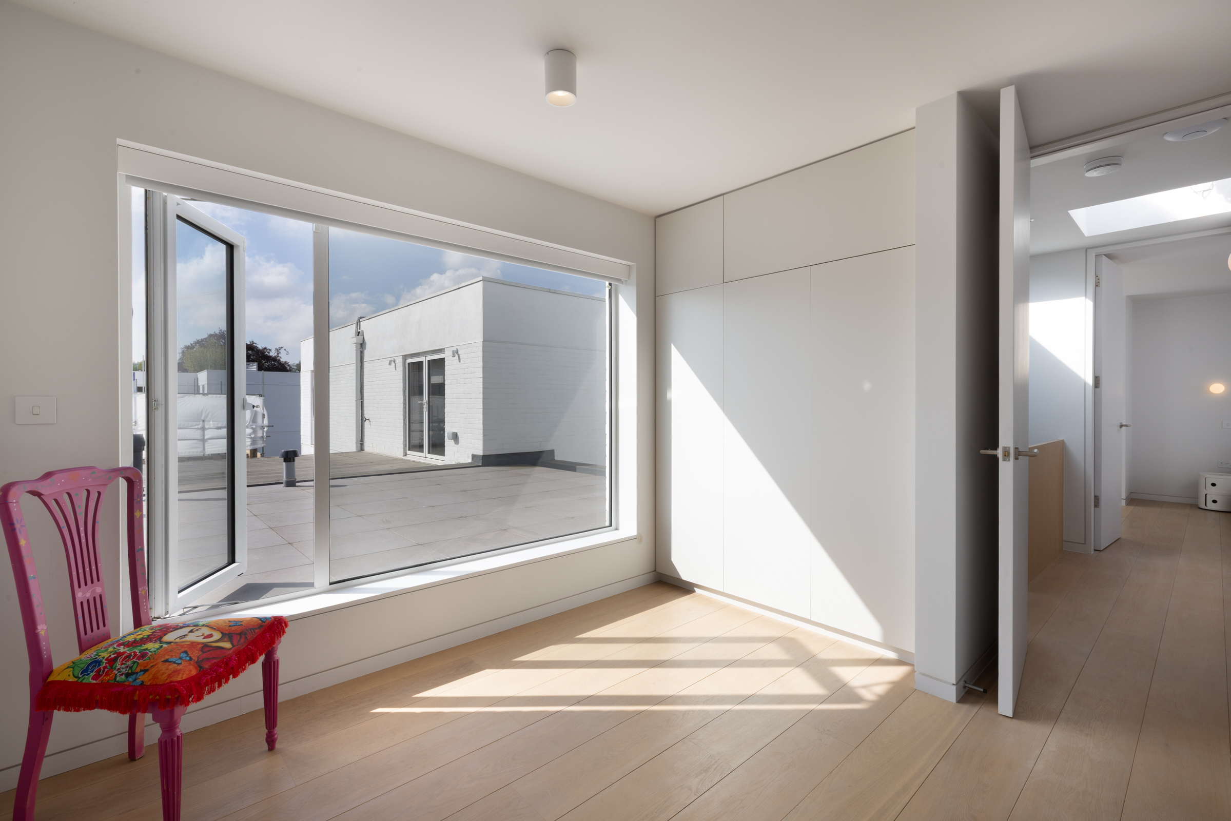 The top floor is a later addition and feels notably bright. Two further double bedrooms are arranged here, both with built-in wardrobes and their own ensuite bathrooms. The proportions are consistent with the rest of the house, and the layout is straightforward and well resolved.