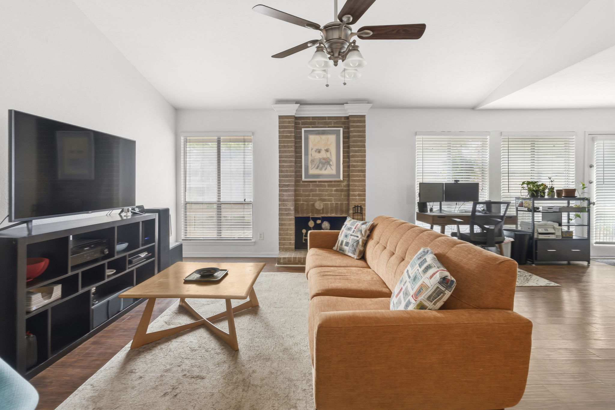 A lovely condo tucked within a gated Preston Hollow community, 10548 Stone Canyon Road, Unit 230, is a two-bedroom, two-bath home filled with warmth and charm. Vaulted ceilings, crown molding, and a wood-burning fireplace create an inviting focal point within the open living space. Freshly painted throughout, the home also features new carpet in both bedrooms, each thoughtfully designed with spacious walk-in closets.Additional highlights include a private balcony, designated covered parking, and access to the community pool. Exceptional HOA coverage includes utilities, HVAC maintenance, and exterior maintenance—making this a true lock-and-leave opportunity with timeless appeal. Ideally situated near premier shopping, dining, hospitals, and more, this residence offers effortless everyday living in one of Dallas’ most desirable locations.