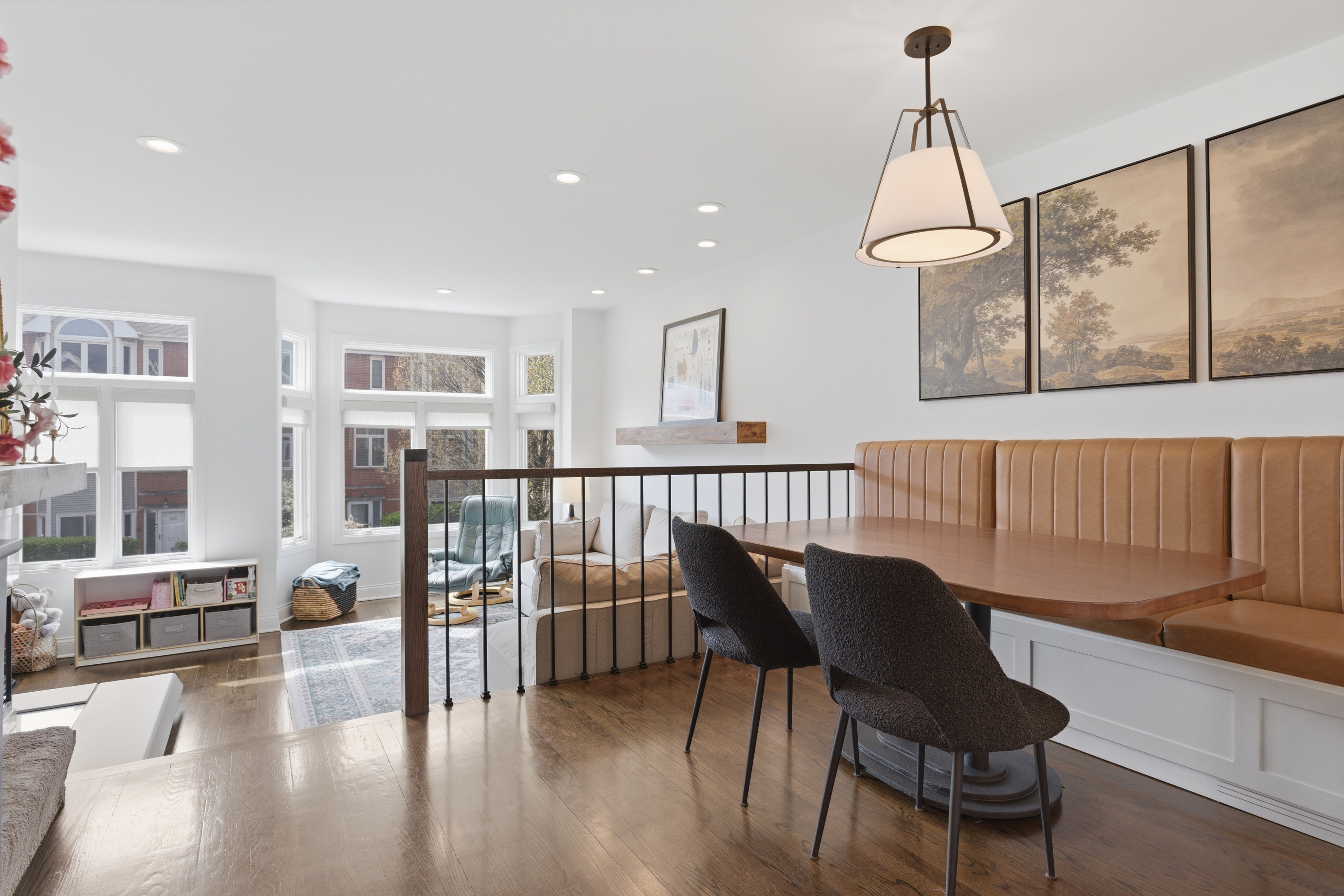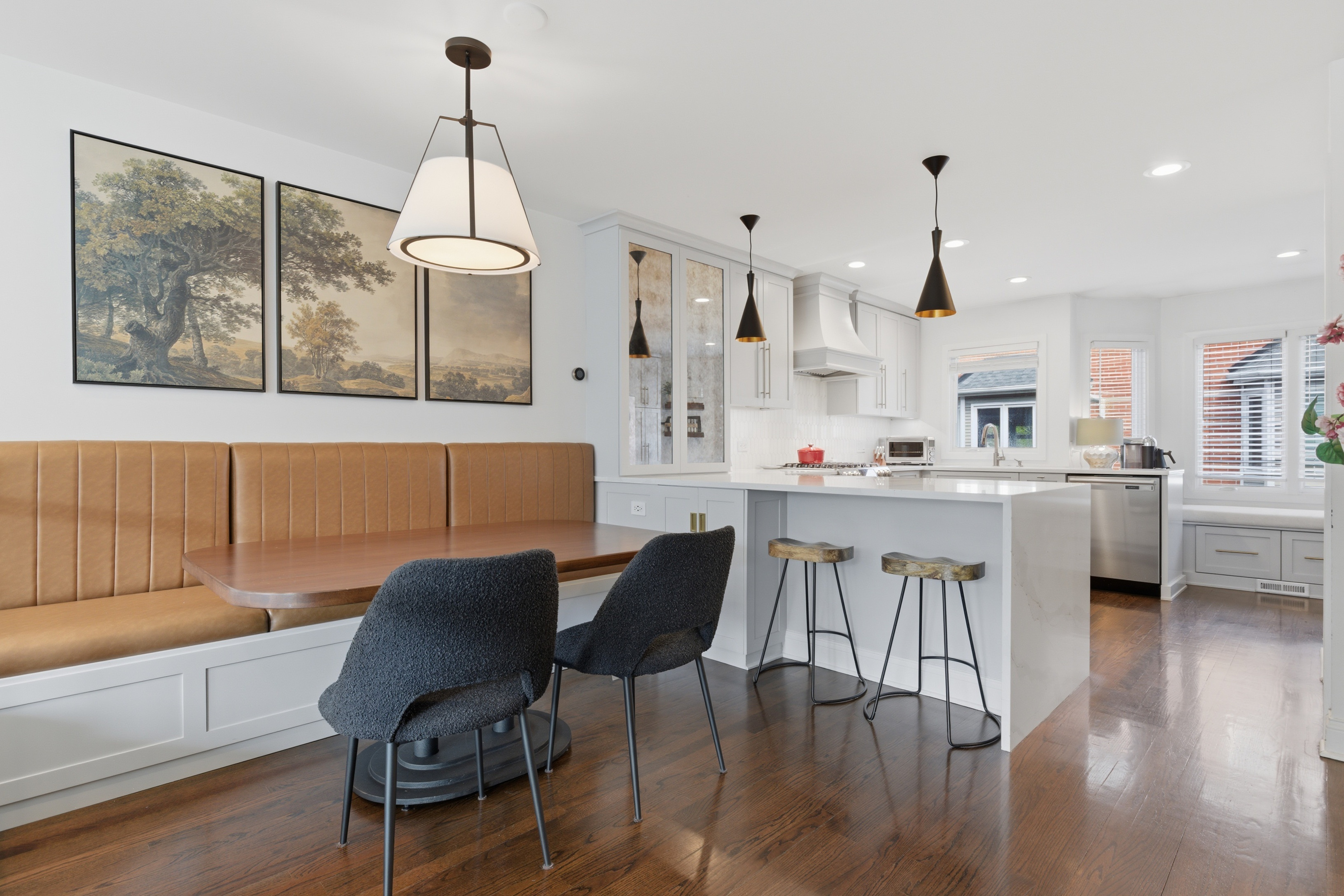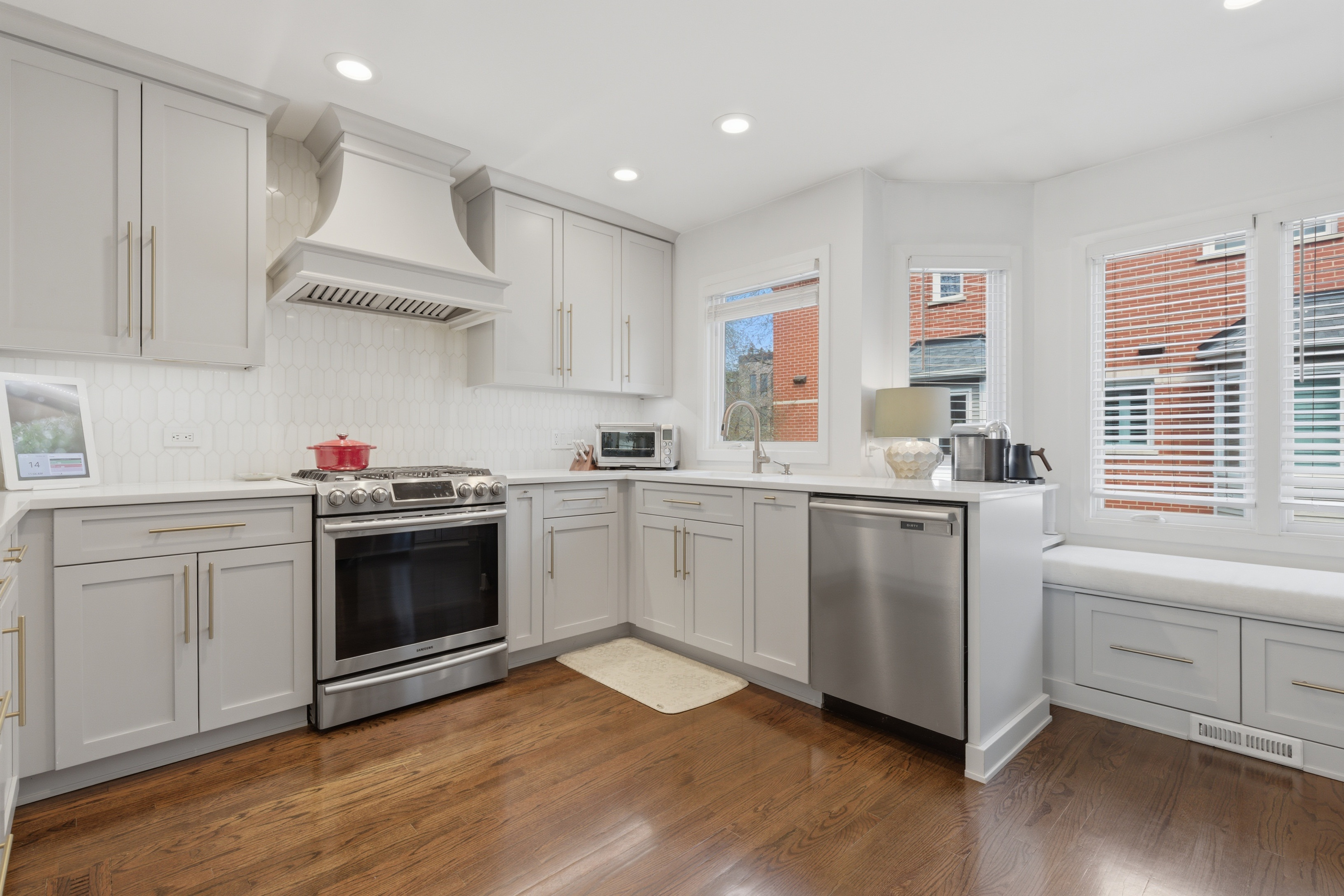 Amazing Lincoln Park location - across the street from Wrightwood park (baseball, pool, sand volleyball, huge kids play lot, baseball field, park space for picnics and playing) - 2 blocks away from blue ribbon Prescott School + Lincoln Park High School. Amazing GATED courtyard (DOG friendly) comunity with private patio that leads to large green space just for owners! This beautifully updated 3 bedroom, 2 1/2 bath townhome was completely over halled in 2019/2020. Sunlight is abundant throughout the entire home. Enter through a gated courtyard to your private terrace and into the home. On this level, you have a big, light-filled family room or could be an office, with doors to your private patio and radiant heated floors, a coat closet, and the attached garage - owners added custom murphy bed for a 4th bedroom if needed. On the second level, you have a spacious living room with oversized, south-facing windows and a new wood-burning fireplace with a gas starter. The gracious dining room is nestled between the living room and kitchen with brand new custom built banquette that seats up to 8 people. The completely renovated kitchen with beautiful, light grey wood cabinets and brass pulls, quartz countertops, stainless appliances, and a custom white tile backsplash. Plenty of storage and pantry with pull out shelves. The next level up features the primary bedroom suite, with cathedral ceilings, custom organized closets, and renovated spa-like bath. One of the two secondary bedrooms is located on this level, along with a guest bathroom and laundry. On the top floor is a light-filled 3rd bedroom or could be a dual-purpose guest room and office. 1 attached garage spot included. Reserves - 127,000 w/ no specials planned; AC - 2023; Furnace - 2022; water heater 2023; new mantel and fireplace - 2025; Redo of 3rd bedroom + AC - 2025; Custom banquette - 2025; Fridge - 2022; Attic storage build out - 2025; New lightin and painting - 2025; Custom Murphy bed - 2025; Garage door mechanicals - 2025; Kitchen and Baths - 2019. (well over 100k of upgrades) HOA - 422; Tax 13,125. Sellers prefer closing before June 19th and possesion till July 27th.