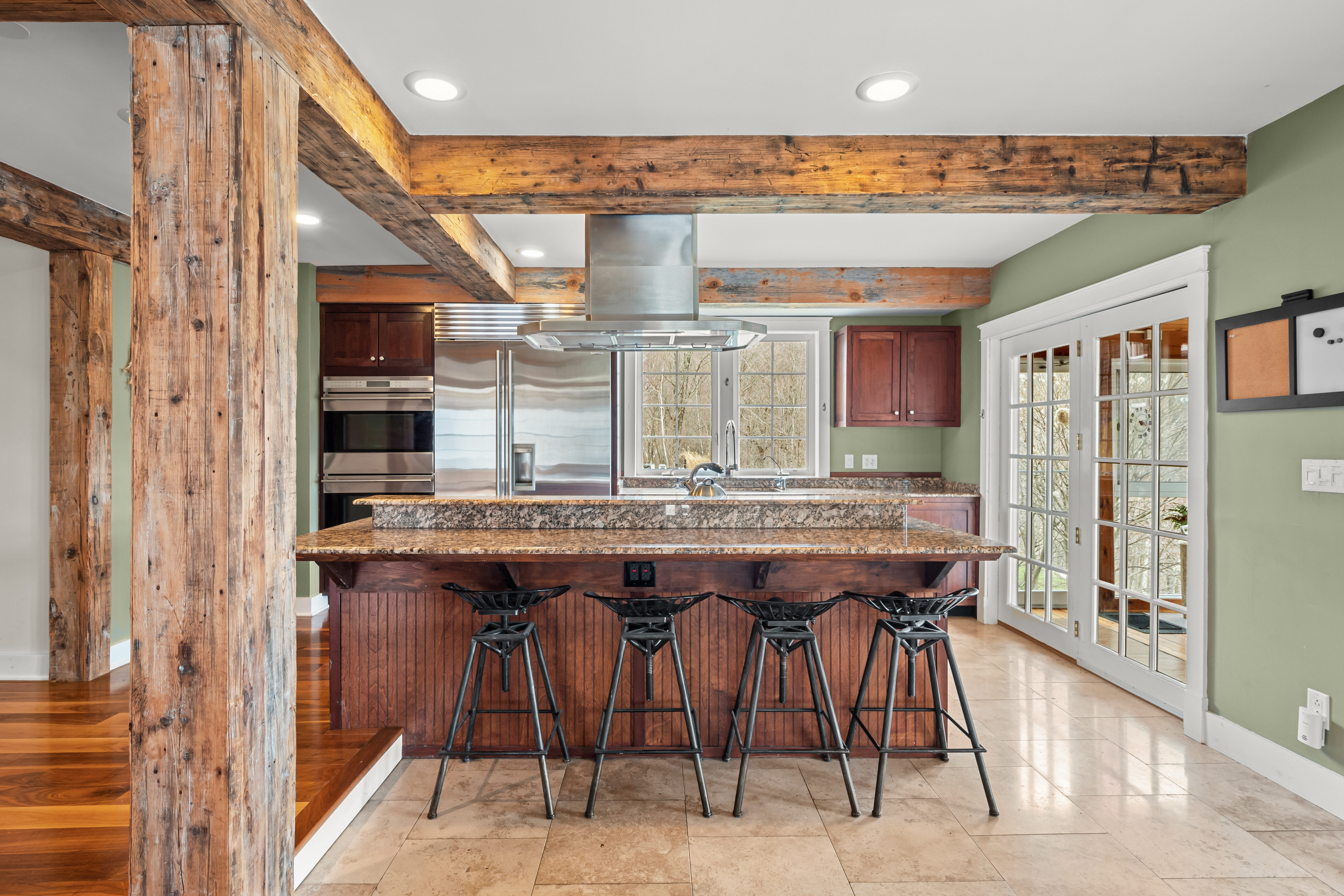 The primary suite is a remarkable haven with expansive windows all offering views. It boasts cherry floors, a vaulted ceiling with exposed beams, a 25-foot walk-in closet, and a private ensuite bathroom. Four additional bedrooms and a full bath complete the second level, and an enclosed balcony with winodws connecting two of the bedrooms frame the dramatic landscape. For those seeking the ultimate inspiring workspace, the residence's third-floor studio and office offering breathtaking 360-degree panoramic views of the surrounding Berkshire Mountains. The lower level is a walkout that contains an in-house yoga studio with a six-station yoga wall. A custom bluestone retaining wall and staircase complete the walkout to an outdoor hot tub.
