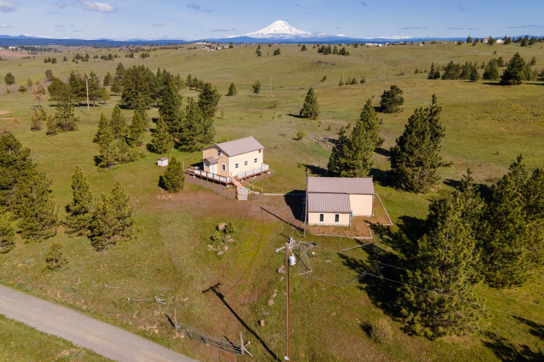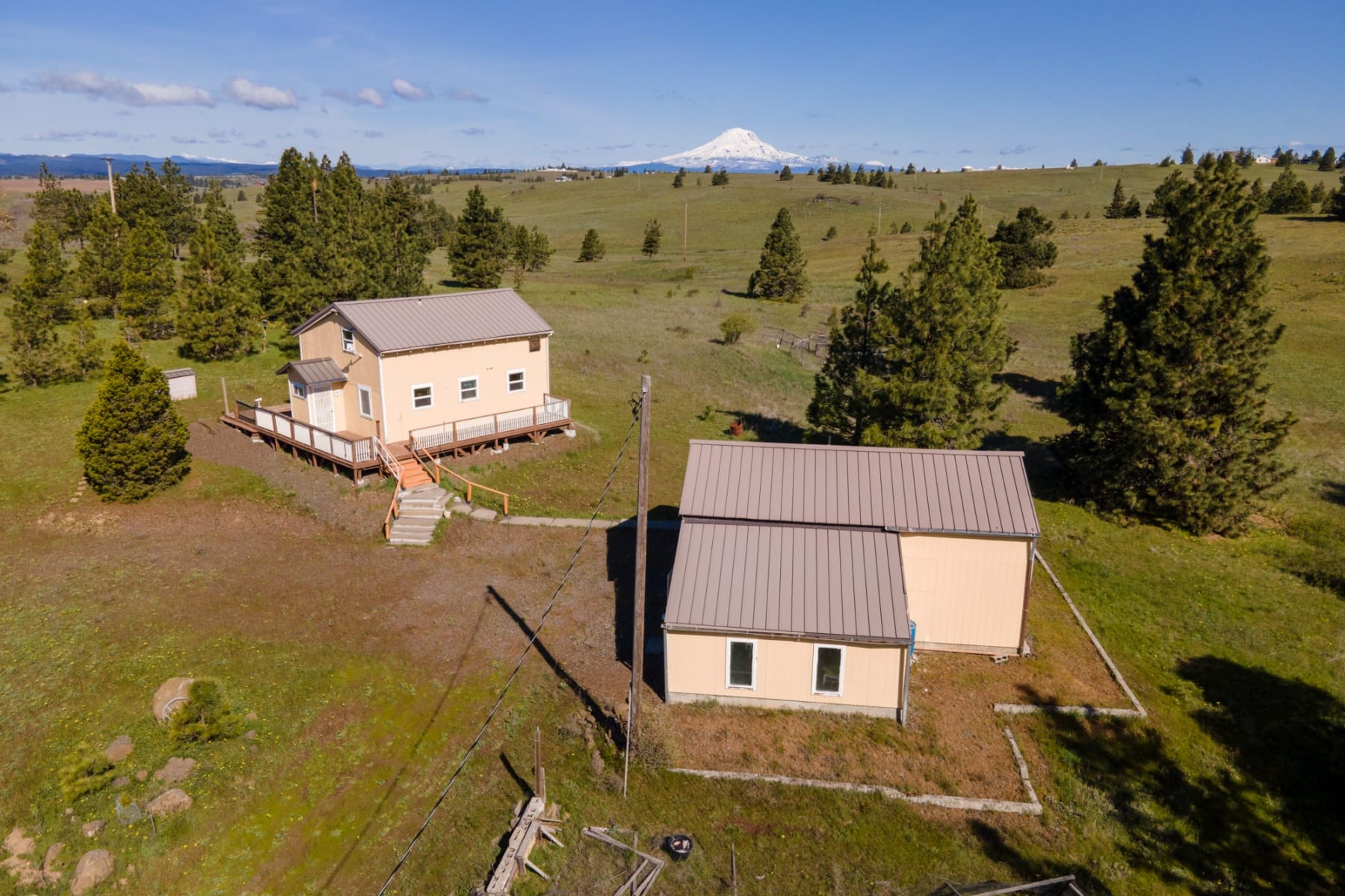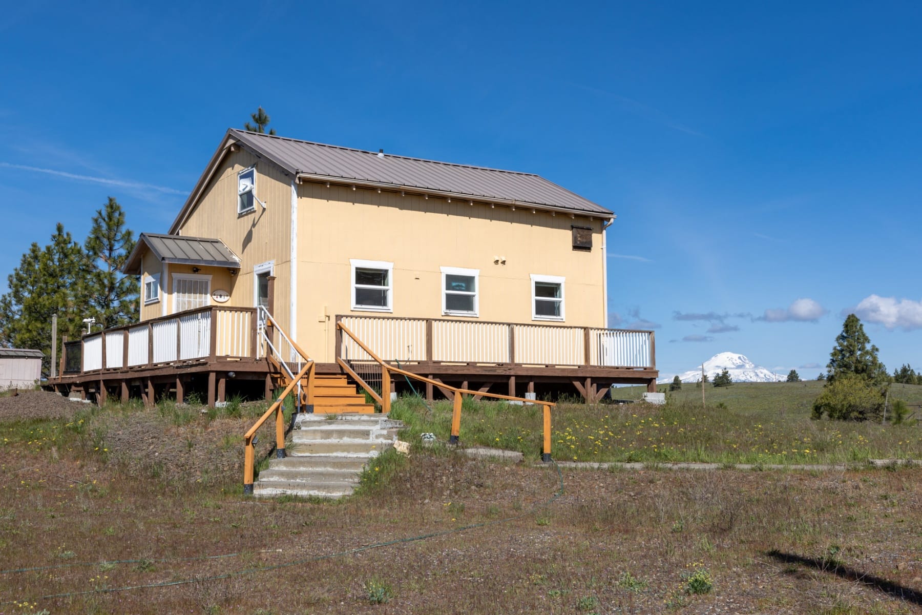 Tucked away on a private road, this peaceful country retreat offers the kind of quiet that's hard to find'where meadowlarks sing and wildlife roams freely across rolling meadows dotted with seasonal wildflowers. Framed by stunning views of Mt. Adams, the setting is both serene and inspiring, with wide-open skies and a true sense of privacy. The property features a charming stick-built cabin with two bedrooms, a full bath, and a spacious loft perfect for additional sleeping or a relaxed hangout area. Warm and inviting, the cabin blends comfort with rustic appeal. A separate, oversized garage of 625 sqft provides ample space for RV parking and includes a full bathroom (not currently connected), along with a versatile room of 200 sqft, ideal for recreation, hobbies, or extra storage. Both the cabin and garage are topped with durable metal roofs, offering added peace of mind and fire resistance. Whether you're seeking a quiet getaway, a full-time rural lifestyle, or a place to unwind in nature, this property delivers a rare combination of beauty, functionality, and seclusion. Well worth walking the land, the upper acreage away from the road is amazing. Seller will consider a seller carried contract.
