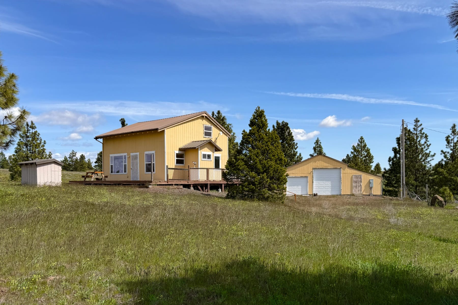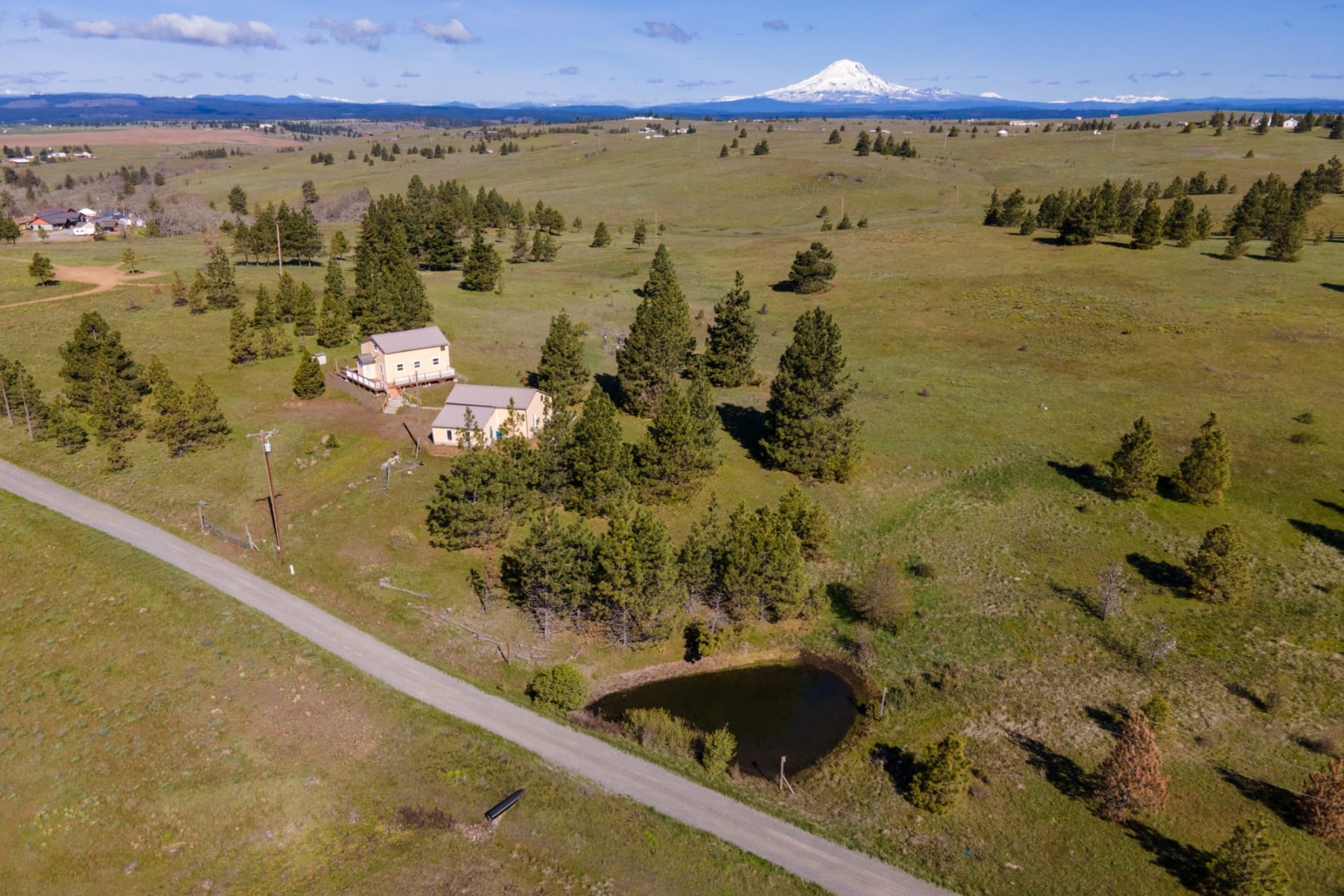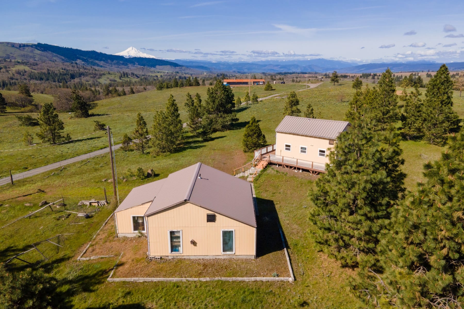 Tucked away on a private road, this peaceful country retreat offers the kind of quiet that's hard to find'where meadowlarks sing and wildlife roams freely across rolling meadows dotted with seasonal wildflowers. Framed by stunning views of Mt. Adams, the setting is both serene and inspiring, with wide-open skies and a true sense of privacy. The property features a charming stick-built cabin with two bedrooms, a full bath, and a spacious loft perfect for additional sleeping or a relaxed hangout area. Warm and inviting, the cabin blends comfort with rustic appeal. A separate, oversized garage of 625 sqft provides ample space for RV parking and includes a full bathroom (not currently connected), along with a versatile room of 200 sqft, ideal for recreation, hobbies, or extra storage. Both the cabin and garage are topped with durable metal roofs, offering added peace of mind and fire resistance. Whether you're seeking a quiet getaway, a full-time rural lifestyle, or a place to unwind in nature, this property delivers a rare combination of beauty, functionality, and seclusion. Well worth walking the land, the upper acreage away from the road is amazing. Seller will consider a seller carried contract.