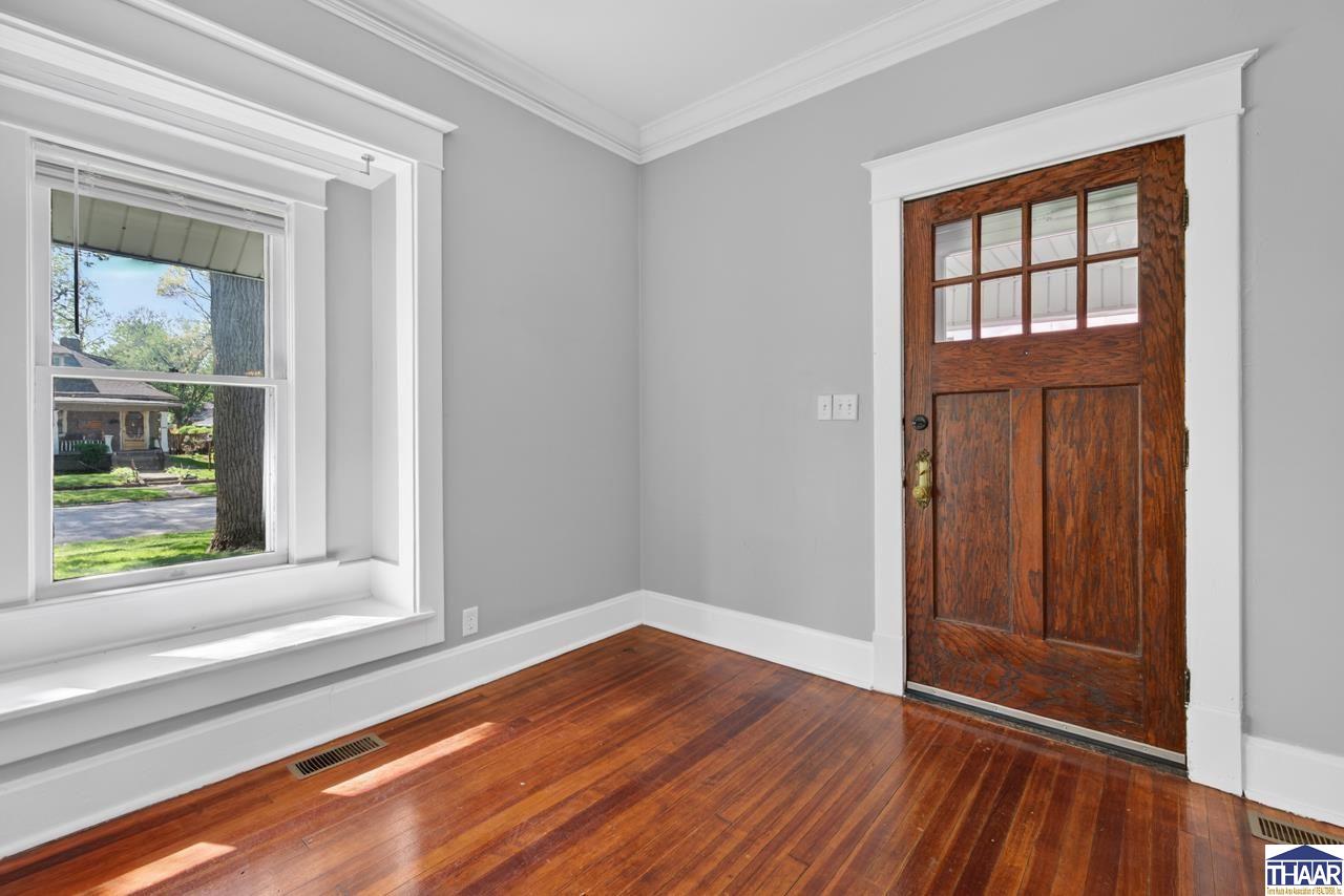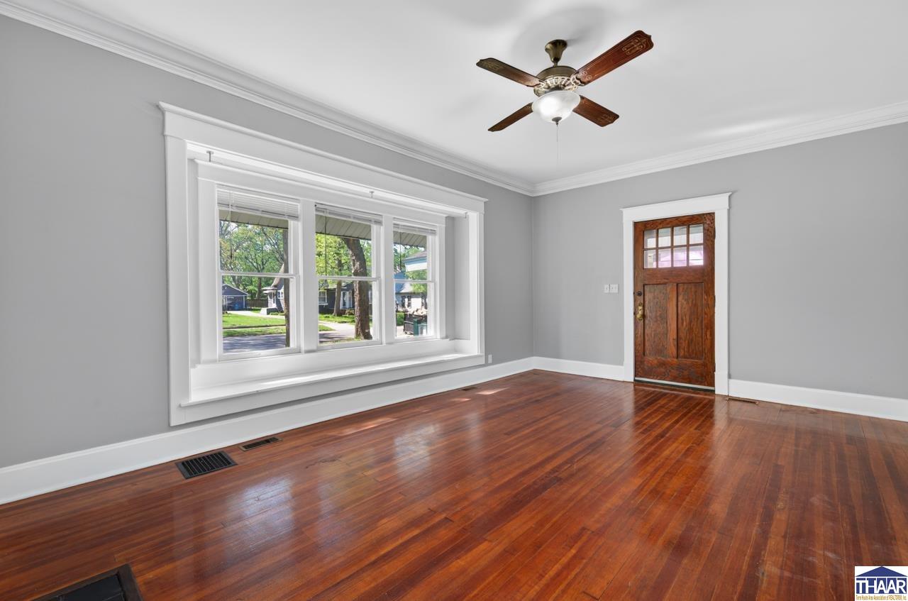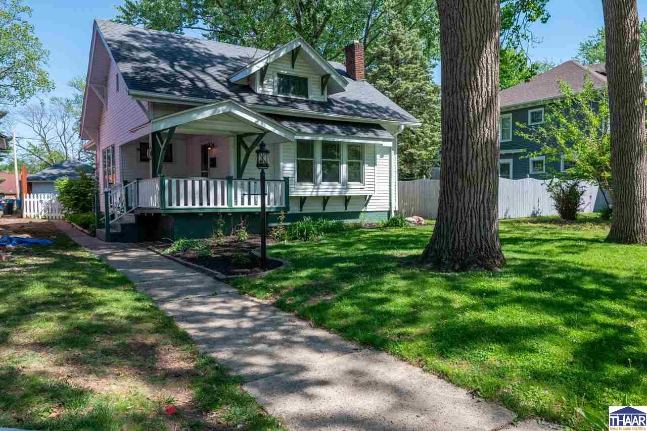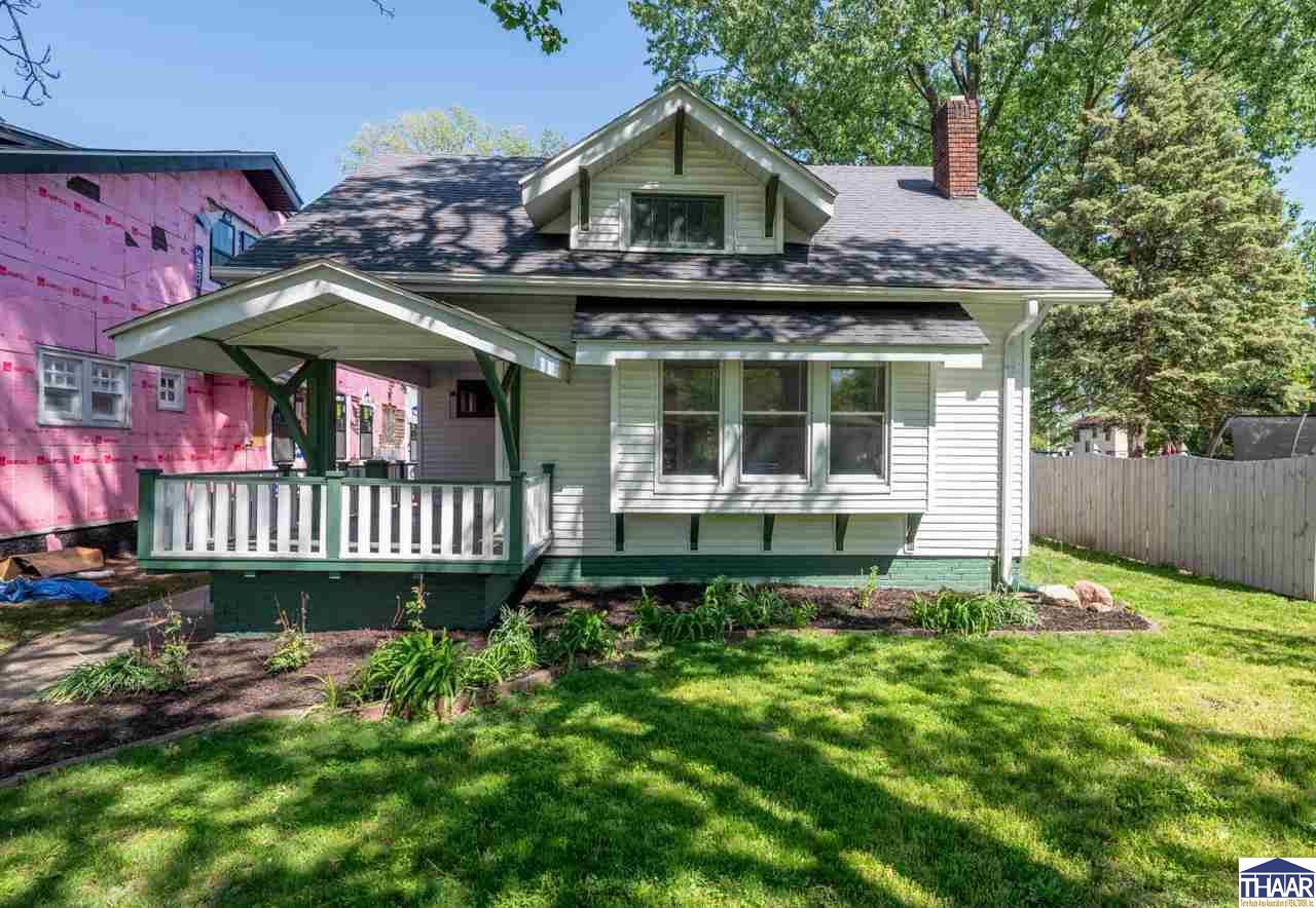 Welcome to 1920 S Center Street, one of the absolute cutest homes you will find in Terre Haute, full of charm and character both inside and out. From the moment you arrive, the curb appeal draws you in with its inviting covered front porch and unique roof line details that make this home truly stand out. Whether you are enjoying your morning coffee or unwinding in the evening, the front porch is the perfect place to do it. Step inside to find original hardwood floors in beautiful condition and a light filled living room featuring a cozy fireplace and a charming window seat that adds the perfect touch of character. The formal dining room is made for entertaining, showcasing coffered ceilings and stunning moldings that elevate the space. The kitchen offers updated cabinetry and appliances, along with plenty of counter space and easy to maintain finishes. The primary bedroom is spacious and bright with a wall of windows and the added convenience of a half bath. A versatile additional room provides the perfect opportunity for a second bedroom, office, or yoga space, while another bedroom with original hardwood floors completes the main level. The full bath features an updated vanity and a shower and tub combo. The unfinished basement offers excellent storage options. Outside, the fully fenced yard provides peace of mind and the detached garage adds even more functionality. This home is full of personality and ready for its next chapter.