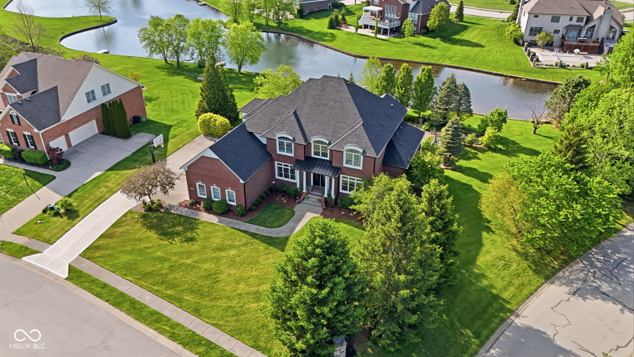 This isn't just a home-it's the one people wait for. Situated on a premier corner waterfront lot, this extraordinary custom built six-bedroom, six-bath residence delivers the kind of everyday luxury that feels like a private retreat. From the moment you walk in, you're greeted by soaring ceilings, walls of windows, and shimmering water views that instantly quiets the world around you. The heart of the home is a beautifully crafted chef's kitchen with dual fireplace and cozy hearth room designed for gathering -whether it's slow mornings, busy school nights, or hosting everyone for the holidays in the formal dining room. Just beyond, warm living spaces create the perfect backdrop for connection and comfort. A richly detailed home office commands an inspiring work-from-home setting wrapped in natural wood architecture. The main-level primary suite feels like a getaway of its own, with a cozy fireplace and a spa-inspired bath that invites you to unwind at the end of the day. Upstairs, four generously sized bedrooms offer the space everyone wants and the privacy everyone needs-two feature en suite baths and deep walk in closets. A charming loft area plus floored attic storage, adds flex space for crafting or hobbies! Downstairs is where the fun really kicks into high gear! Movie nights in your private theater, get bragging rights in the game room, workouts on your schedule, and a full kitchen with soda fountain ready for entertaining-it's all here. And then..there's outside. A true backyard escape. An in-ground pool overlooking peaceful water. Evenings around the gas fire pit AND stacked stone fireplace. Summer dinners from the outdoor kitchen. Kids laughing on the in-ground trampoline while you practice your putt just steps away. Indiana summer sunsets here aren't just seen-they're experienced. All of this, just minutes from top-rated Brownsburg Schools, and easy commute to enjoy downtown Indy's most iconic and celebrated events. Schedule your private tour today!