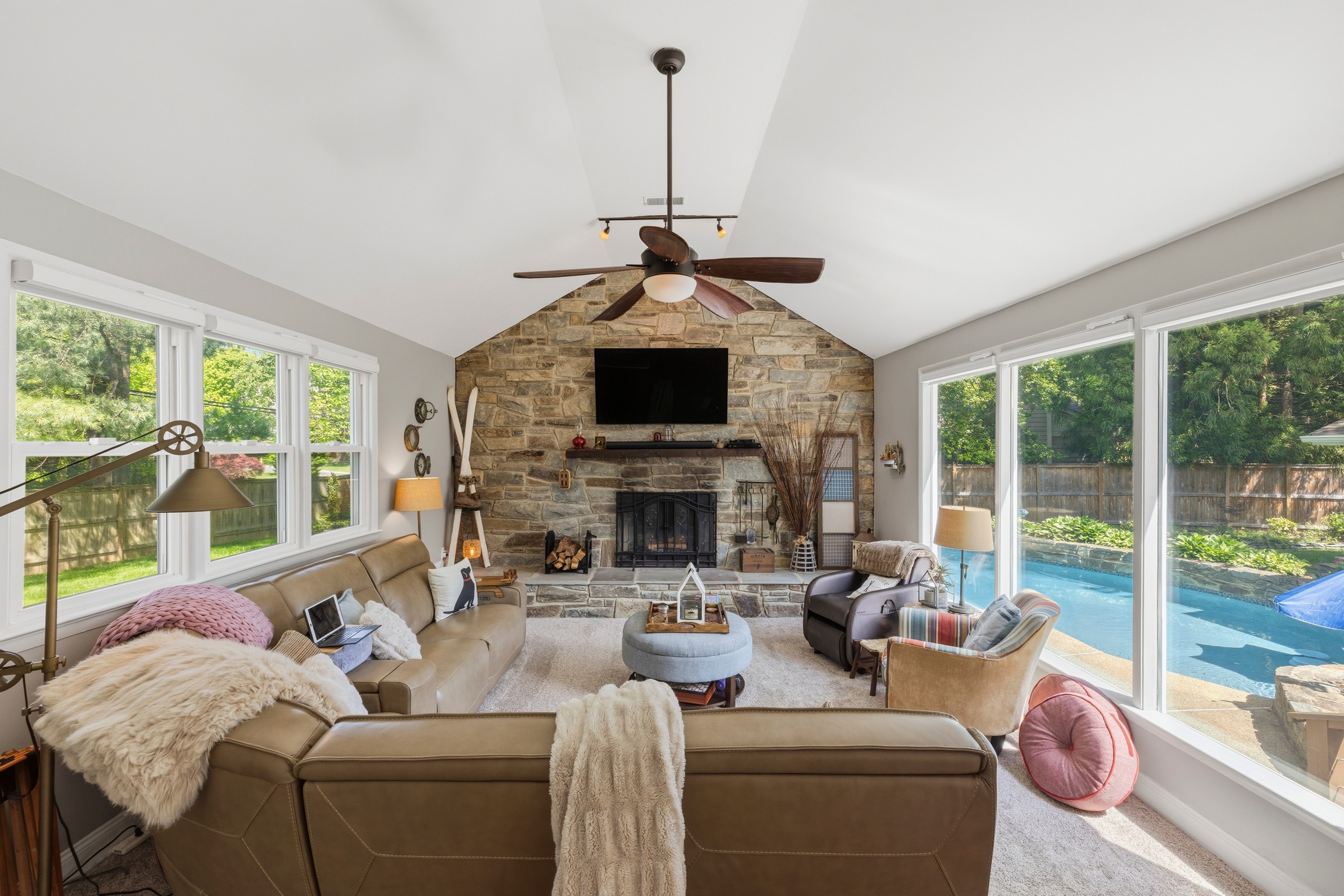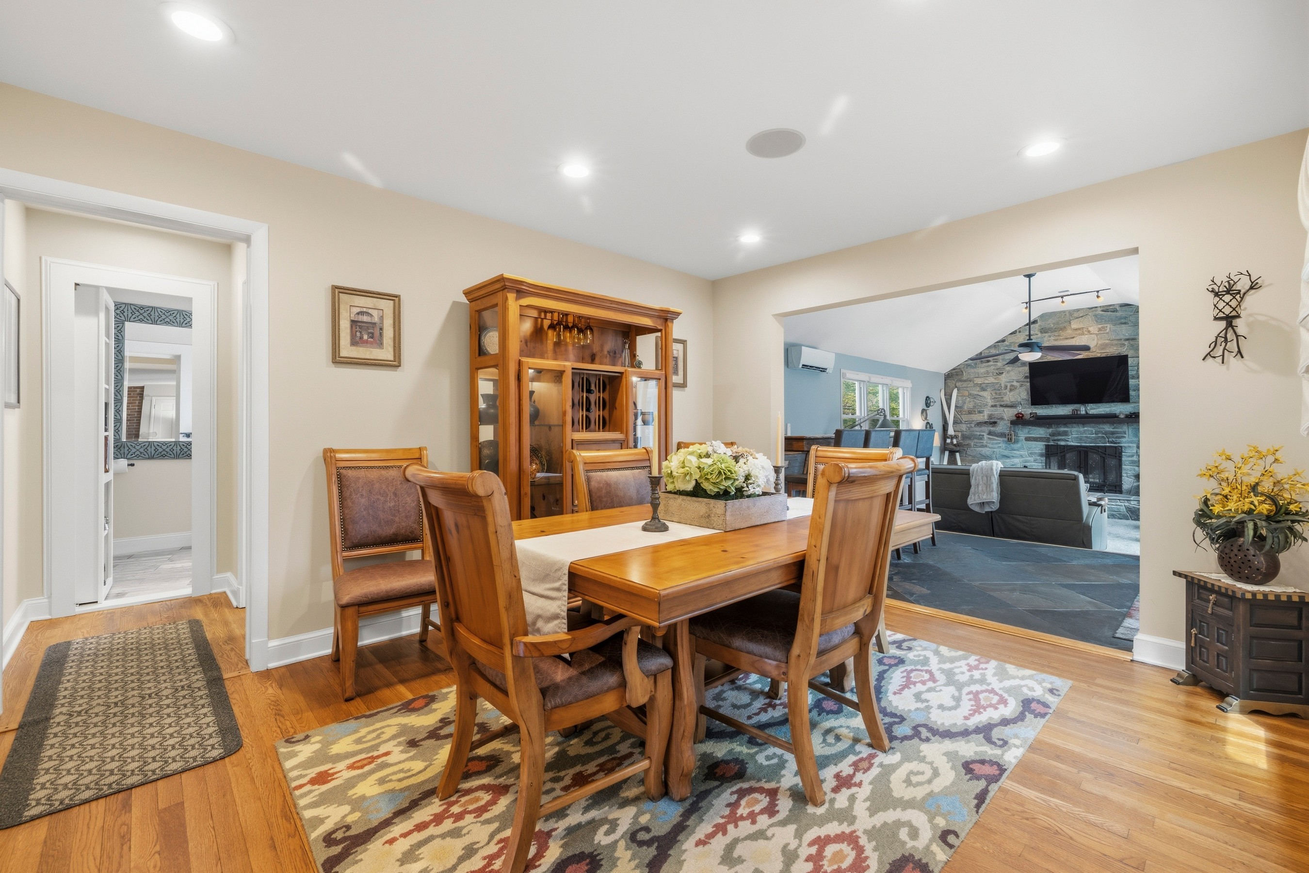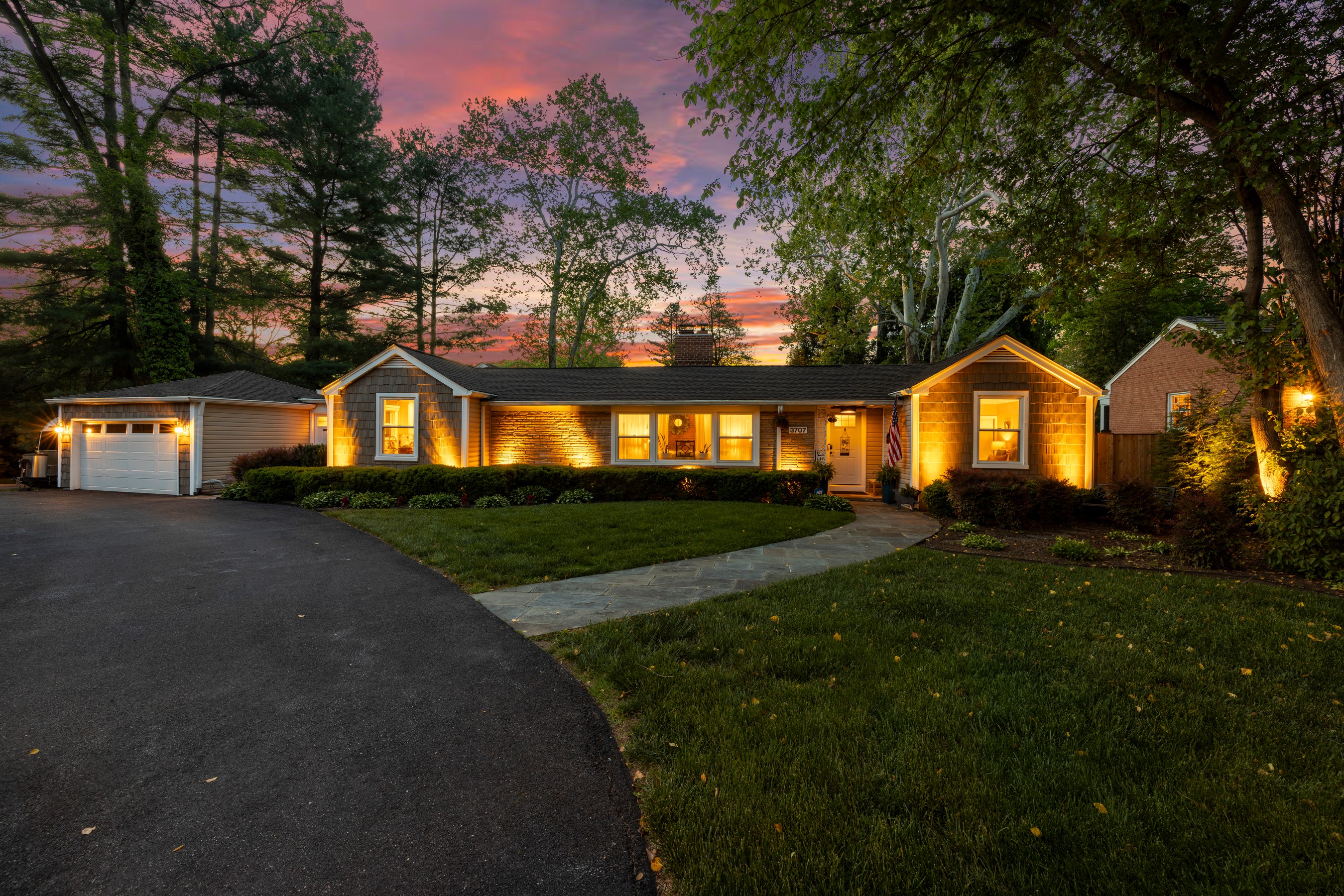 Welcome to this mid-century modern ranch corner lot residence featuring three bedrooms, three-and-a-half bathrooms, set on 0.35 acres in the Chevy Chase neighborhood. Offering nearly 3,107 square feet ( buyer to verify; tax records may differ) of beautifully designed living space, including the expansive heated swimming pool with waterfall, two-car garage, and fully fenced yard. This move-in-ready home blends timeless craftsmanship, modern comfort, and an array of unique features. From the moment you enter, the home reveals an elegant and thoughtfully curated interior. A stunning great room addition with soaring ceilings and a dramatic stone fireplace creates a warm yet grand focal point for everyday living and entertaining. Two additional fireplaces in the family room and master bedroom, all recently renovated. The open luxury kitchen is beautifully appointed with Electrolux appliances, a Bosch dishwasher, an induction cooktop, granite countertops, soft-close drawers, and seamless flow into the dining area and family room, complete with a bar area designed for effortless gatherings. One of the home's most distinctive features is its hidden spa retreat, tucked discreetly behind a library door. This private sanctuary offers a jetted tub with a heat pump, a Viking sauna for five, and an oversized skylight that fills the space with natural light, creating a serene, resort-like ambiance. Ceiling speakers throughout the home (inside and outside) allow for a fully immersive atmosphere, ideal for music, relaxation, and entertaining. The spacious primary suite is a true retreat, featuring a newly renovated bathroom with dual sinks, marble countertops, an electric fireplace, and custom his and hers closet organization, along with a dedicated cedar closet. A large integrated study is attached to the primary suite, perfect for work, a coffee bar, and a sitting room. The primary suite and great rooms have also been thoughtfully updated with new Mitsubishi mini-split HVAC systems with Wi-Fi app control, fresh paint, new hypoallergenic carpet installed in 2024, and new automatic blinds. A bonus room provides excellent flexibility for a home office, gym, or guest space. Outside, the property continues to impress. The expanded driveway includes a 30-amp receptacle for an RV. The backyard is designed for exceptional outdoor living, with a heated swimming pool, a new composite deck, WiFi-controlled landscape lighting, and electric heaters under the waterproof pergola with adjustable louvers—perfect for entertaining or quiet evenings at home. Surrounded by lush landscaping and mature trees enclosed by a private cedar fence, the yard also features a Wi-Fi-controlled sprinkler system for ease and convenience. Additional updates and features include kitchen remodel (2013), closet cabinetry (2014), Spa (2016), three large exterior siding door panels with access to deck (2016), pool recently renovated (2021), Driveway expanded (2022), two new electrical panels with whole house surge protection (2023), master bedroom and master bath (2023), new roof with ridge vents and skylights (2024), landscaping including sprinkler (2024), replacement windows, doors, by Andersen and Window World, with transferable lifetime warranties (2025) and a gym area is also included, with equipment negotiable. Plenty of storage and shelving in the attached shed with room for lawn equipment, bicycles, holiday supplies, and woodworking tools. Ideally located near downtown Bethesda, Friendship Heights, New Purple Line Metro access (10-minute walk), The Shops at Wisconsin Place, Trader Joe's, over 300 popular and boutique dining destinations, this home also offers close proximity to Rock Creek Park, Woodend Sanctuary, Meadowbrook Stables, and Meadowbrook Local Park. With easy access to the Beltway, Silver Spring, Bethesda, and Washington, D.C., this remarkable property delivers the perfect balance of refined indoor living, exceptional outdoor enjoyment, and unmatched convenience.