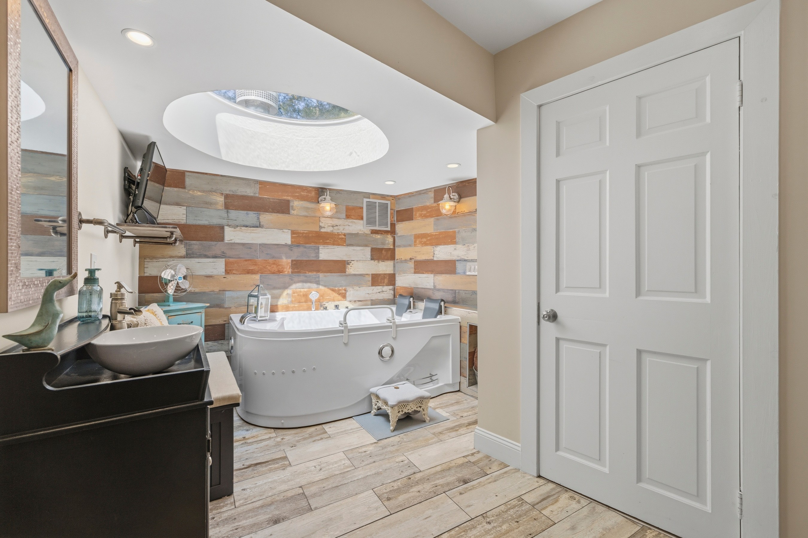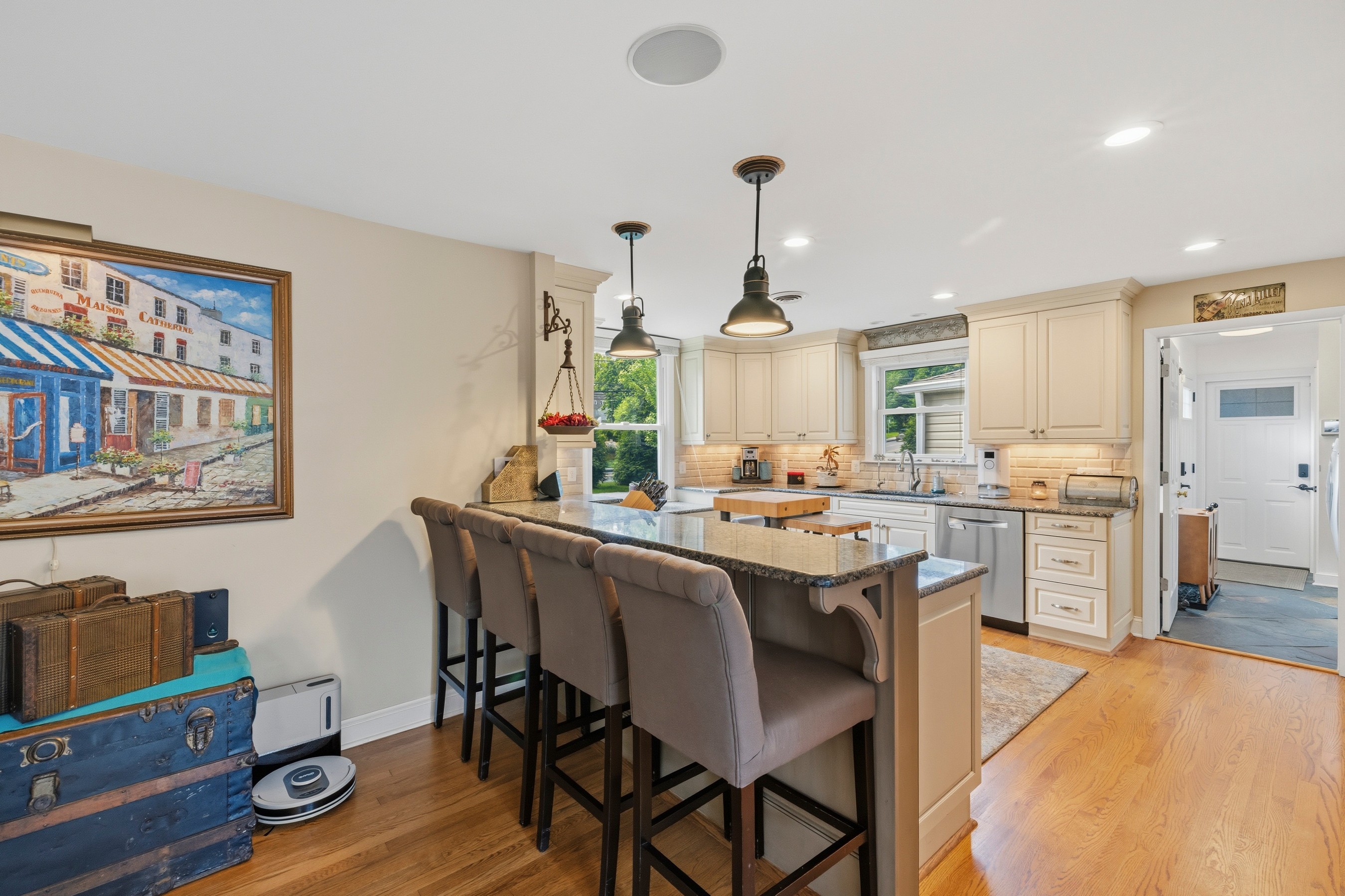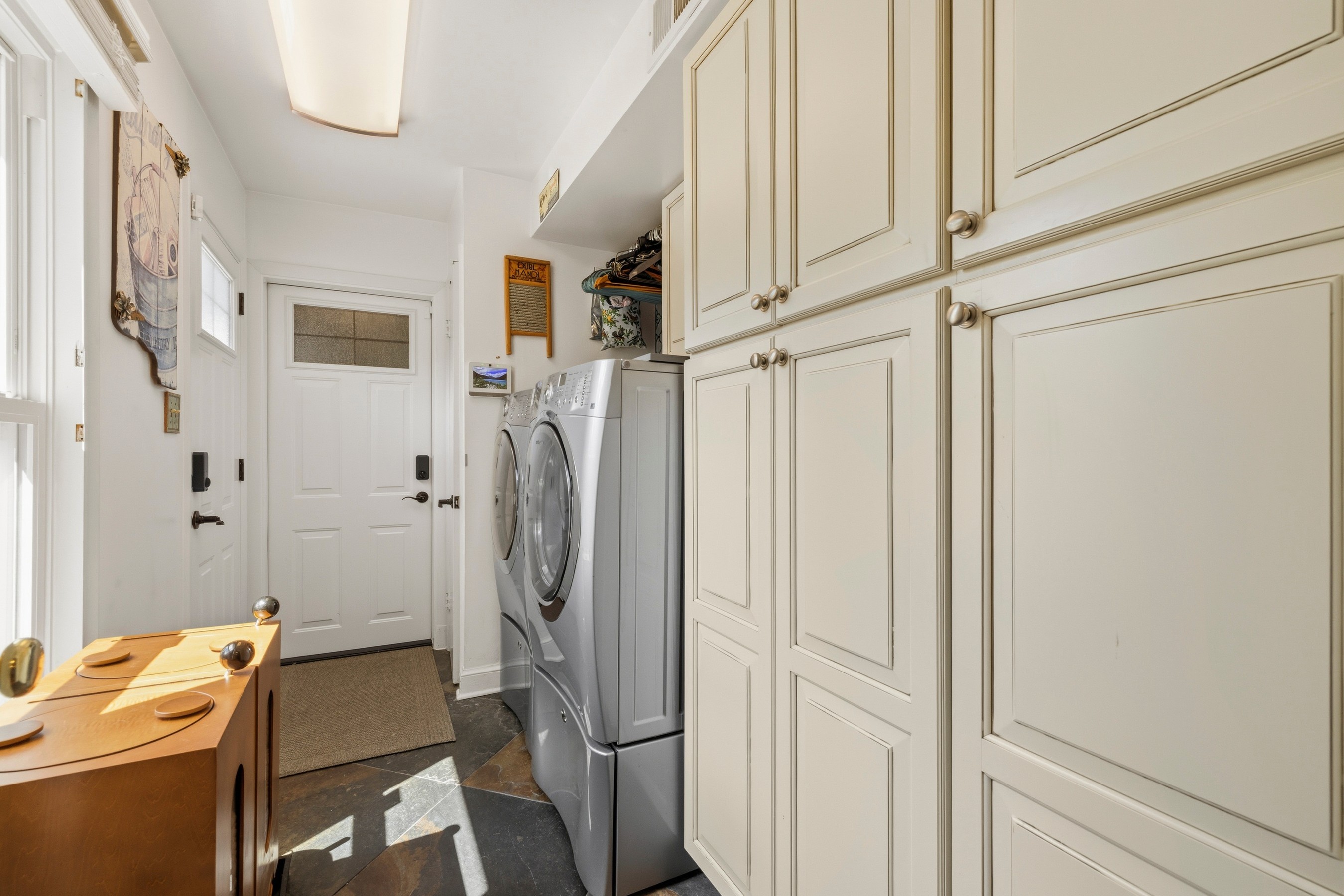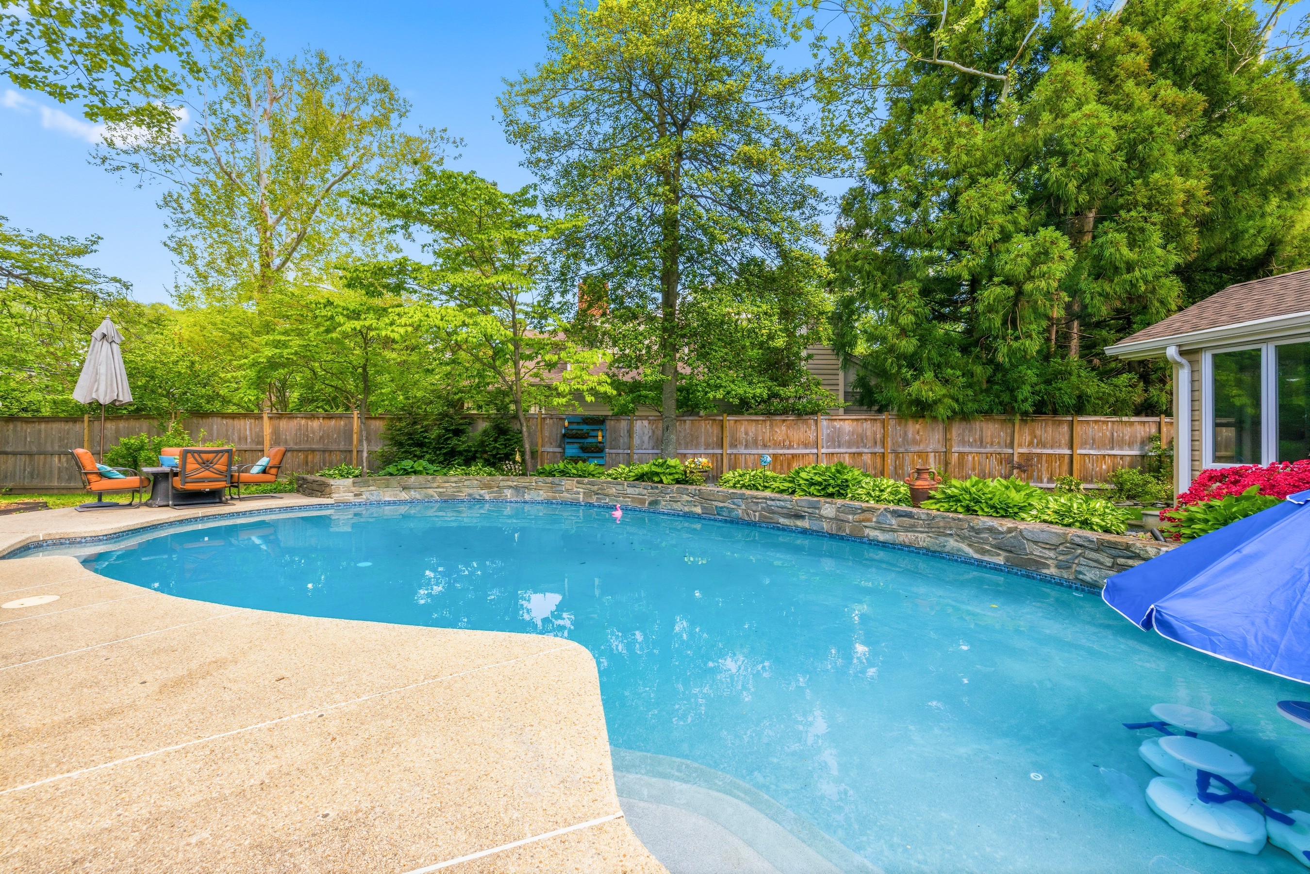 Welcome to this mid-century modern ranch corner lot residence featuring three bedrooms, three-and-a-half bathrooms, set on 0.35 acres in the Chevy Chase neighborhood. Offering nearly 3,107 square feet ( buyer to verify; tax records may differ) of beautifully designed living space, including the expansive heated swimming pool with waterfall, two-car garage, and fully fenced yard. This move-in-ready home blends timeless craftsmanship, modern comfort, and an array of unique features. From the moment you enter, the home reveals an elegant and thoughtfully curated interior. A stunning great room addition with soaring ceilings and a dramatic stone fireplace creates a warm yet grand focal point for everyday living and entertaining. Two additional fireplaces in the family room and master bedroom, all recently renovated. The open luxury kitchen is beautifully appointed with Electrolux appliances, a Bosch dishwasher, an induction cooktop, granite countertops, soft-close drawers, and seamless flow into the dining area and family room, complete with a bar area designed for effortless gatherings. One of the home's most distinctive features is its hidden spa retreat, tucked discreetly behind a library door. This private sanctuary offers a jetted tub with a heat pump, a Viking sauna for five, and an oversized skylight that fills the space with natural light, creating a serene, resort-like ambiance. Ceiling speakers throughout the home (inside and outside) allow for a fully immersive atmosphere, ideal for music, relaxation, and entertaining. The spacious primary suite is a true retreat, featuring a newly renovated bathroom with dual sinks, marble countertops, an electric fireplace, and custom his and hers closet organization, along with a dedicated cedar closet. A large integrated study is attached to the primary suite, perfect for work, a coffee bar, and a sitting room. The primary suite and great rooms have also been thoughtfully updated with new Mitsubishi mini-split HVAC systems with Wi-Fi app control, fresh paint, new hypoallergenic carpet installed in 2024, and new automatic blinds. A bonus room provides excellent flexibility for a home office, gym, or guest space. Outside, the property continues to impress. The expanded driveway includes a 30-amp receptacle for an RV. The backyard is designed for exceptional outdoor living, with a heated swimming pool, a new composite deck, WiFi-controlled landscape lighting, and electric heaters under the waterproof pergola with adjustable louvers—perfect for entertaining or quiet evenings at home. Surrounded by lush landscaping and mature trees enclosed by a private cedar fence, the yard also features a Wi-Fi-controlled sprinkler system for ease and convenience. Additional updates and features include kitchen remodel (2013), closet cabinetry (2014), Spa (2016), three large exterior siding door panels with access to deck (2016), pool recently renovated (2021), Driveway expanded (2022), two new electrical panels with whole house surge protection (2023), master bedroom and master bath (2023), new roof with ridge vents and skylights (2024), landscaping including sprinkler (2024), replacement windows, doors, by Andersen and Window World, with transferable lifetime warranties (2025) and a gym area is also included, with equipment negotiable. Plenty of storage and shelving in the attached shed with room for lawn equipment, bicycles, holiday supplies, and woodworking tools. Ideally located near downtown Bethesda, Friendship Heights, New Purple Line Metro access (10-minute walk), The Shops at Wisconsin Place, Trader Joe's, over 300 popular and boutique dining destinations, this home also offers close proximity to Rock Creek Park, Woodend Sanctuary, Meadowbrook Stables, and Meadowbrook Local Park. With easy access to the Beltway, Silver Spring, Bethesda, and Washington, D.C., this remarkable property delivers the perfect balance of refined indoor living, exceptional outdoor enjoyment, and unmatched convenience.
