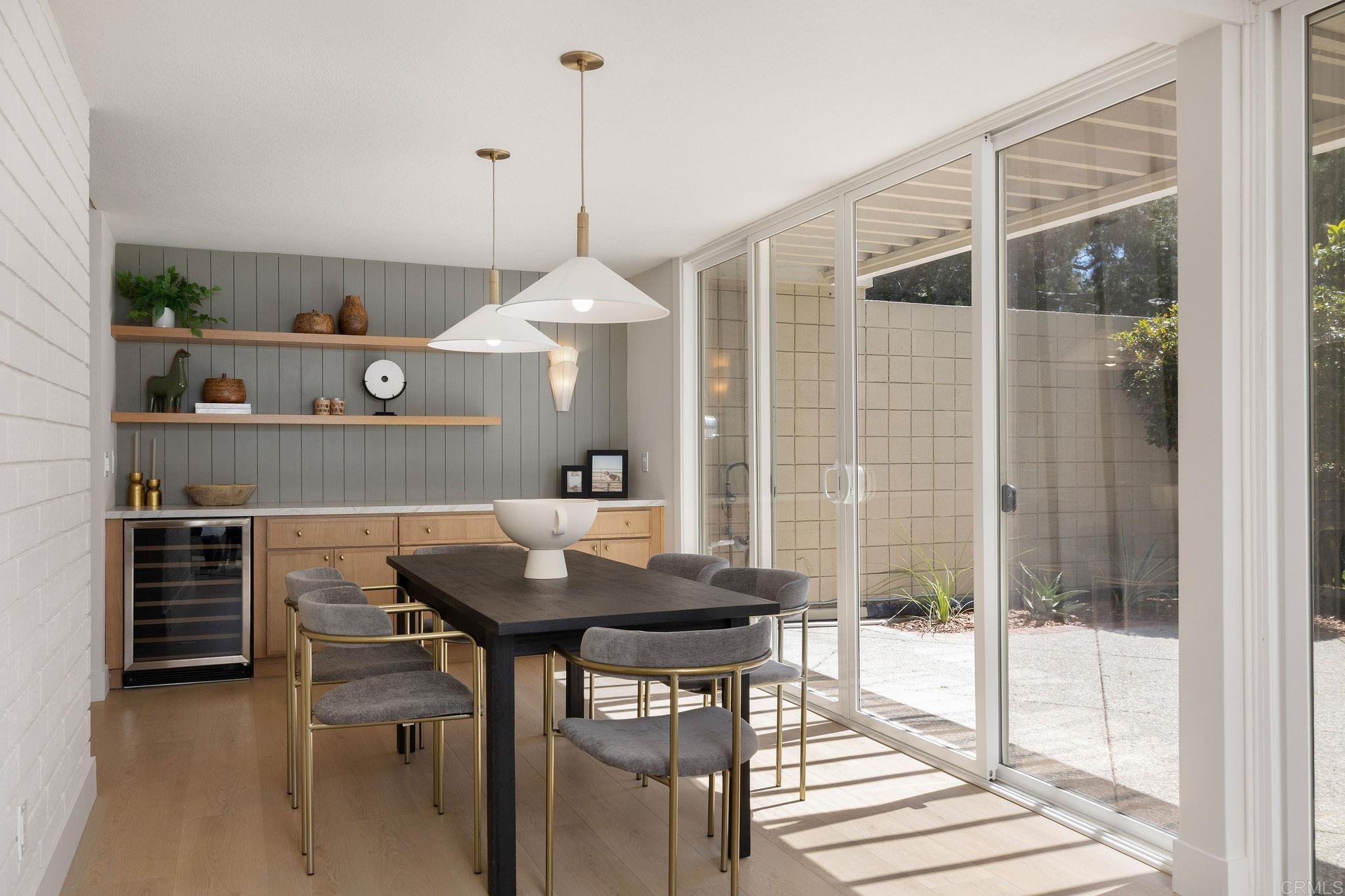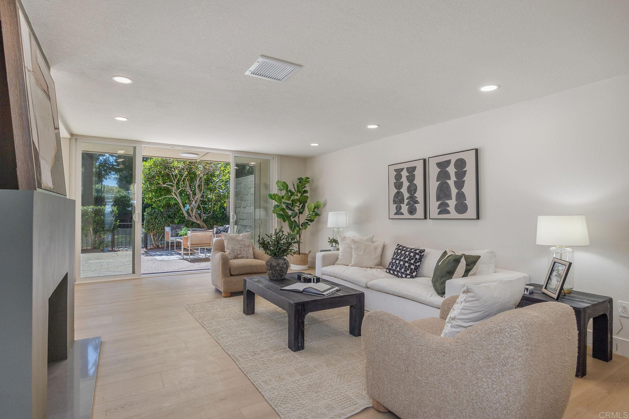 A private boat slip and 50 yards to Humboldt Beach — this thoughtfully remodeled home within gated Tennis Estates in Huntington Harbour offers rare harbor access paired with refined coastal living. Light wide-plank flooring runs through the open main level, where a fireplace with a sage green surround anchors the living room before flowing into a dining room framed by a shiplap wall and built-in dry bar. A breakfast room off the kitchen opens through sliding glass doors to a private patio. The galley kitchen is the design centerpiece: floor-to-ceiling white oak slim shaker cabinetry, white marble-look countertops, a glossy ceramic backsplash, and brushed gold hardware. Upstairs, the primary suite pairs a vaulted ceiling and wall of windows complemented by a dual white oak vanity ensuite, brushed gold fixtures, and a frameless glass shower with a built-in bench. The secondary bath offers its own distinct character with bold gray and white checkerboard tub surround, horizontal shiplap, and a rattan pendant, while a gingham-wallpapered powder room adds a stylish touch near the entry. An upstairs loft provides flexible additional living space. A tankless water heater and HOA-covered water, trash, dock maintenance, and access to a community pool, spa, tennis, pickleball, and basketball courts complete the picture. Located near Huntington Harbour Mall, Trader Joe's, and the beaches, this home delivers the lifestyle Huntington Harbour buyers rarely find available.