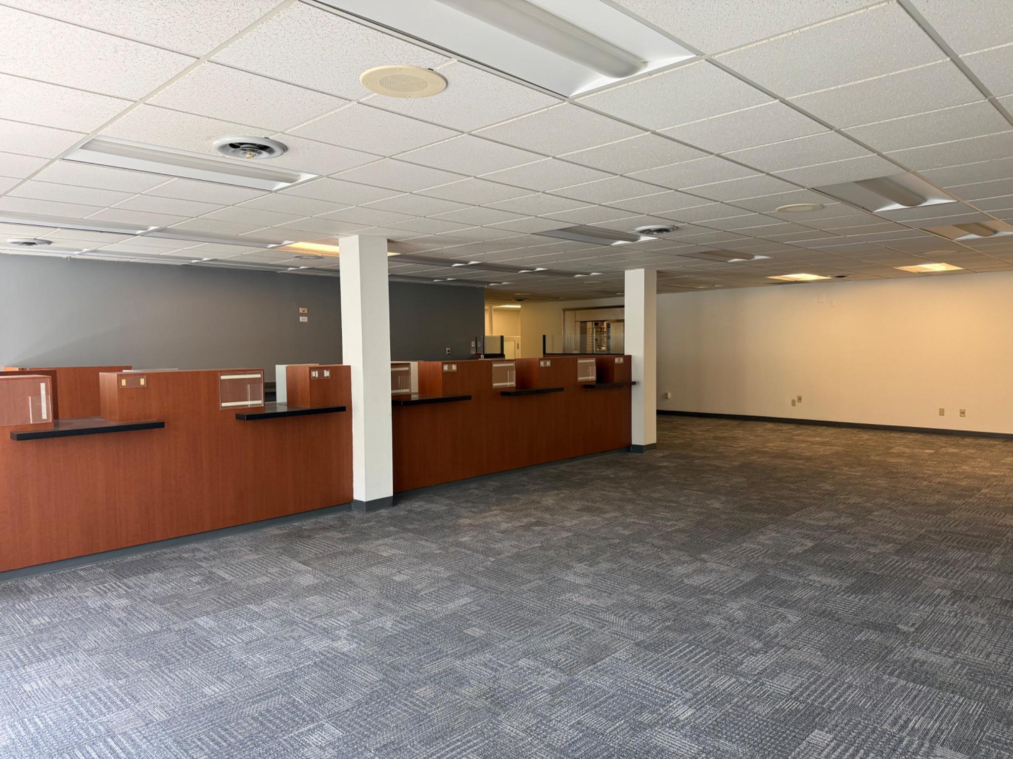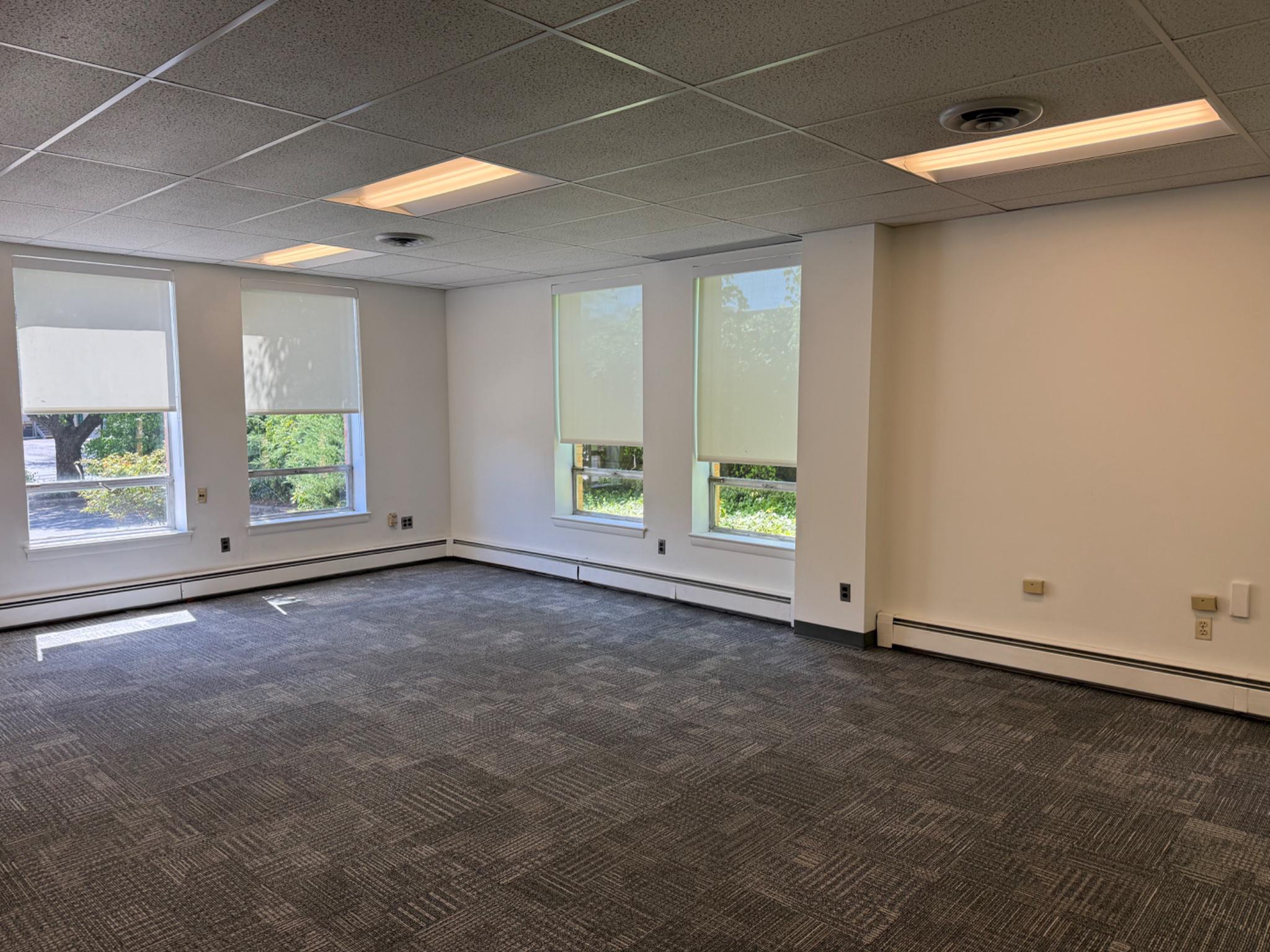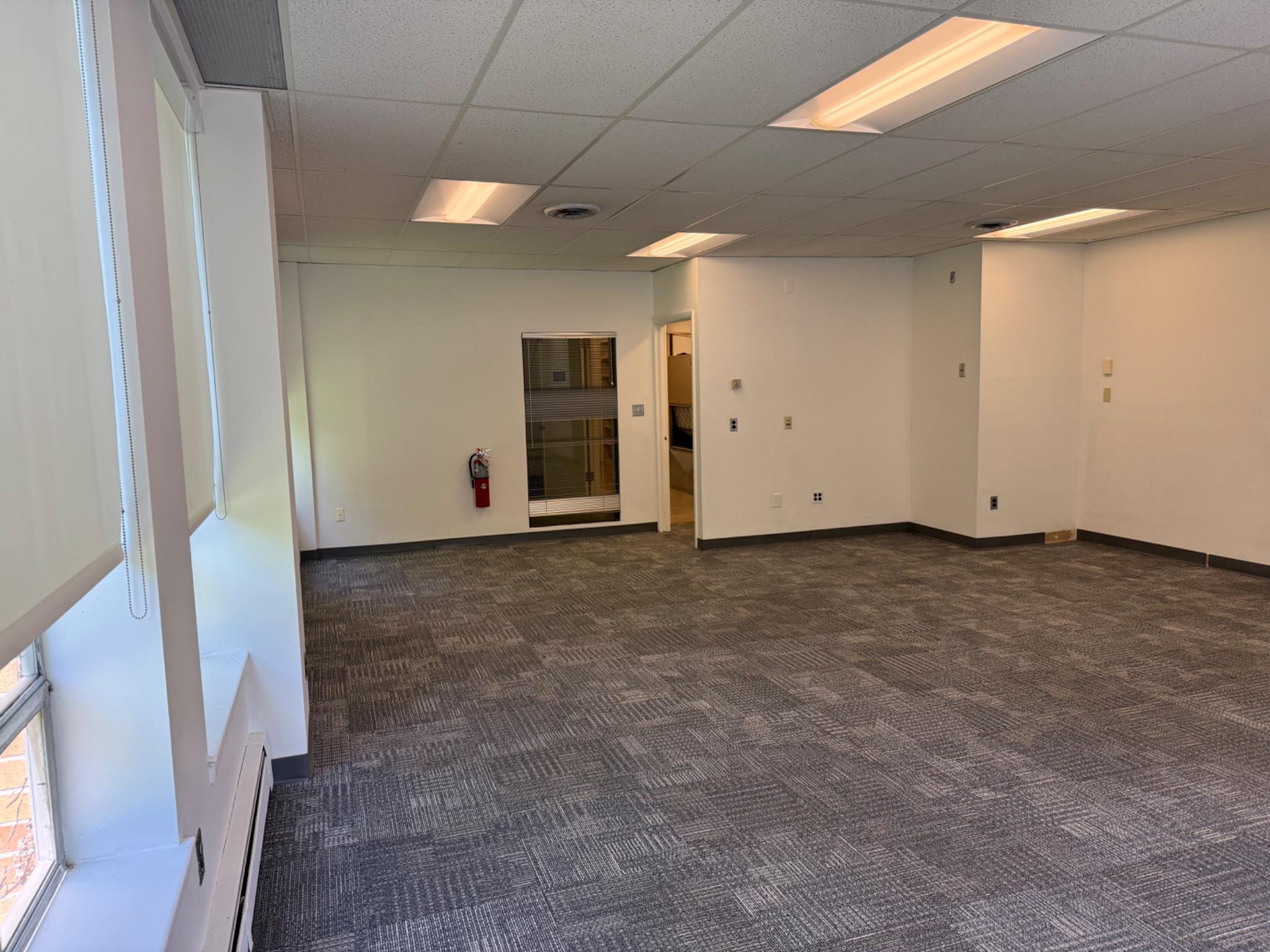 Prime location with great visibility and signage. Suitable for office/retail/service uses. 1st floor former bank space is a large opne plan with vault. 2nd floor Suit A has two large rooms plus work room with water and sewer hook ups. Suite B is a large windowed office space. Suite C has up to four smal office spaces. Heat and AC are included in CAM. Tenant electric is direct billed by utility company.