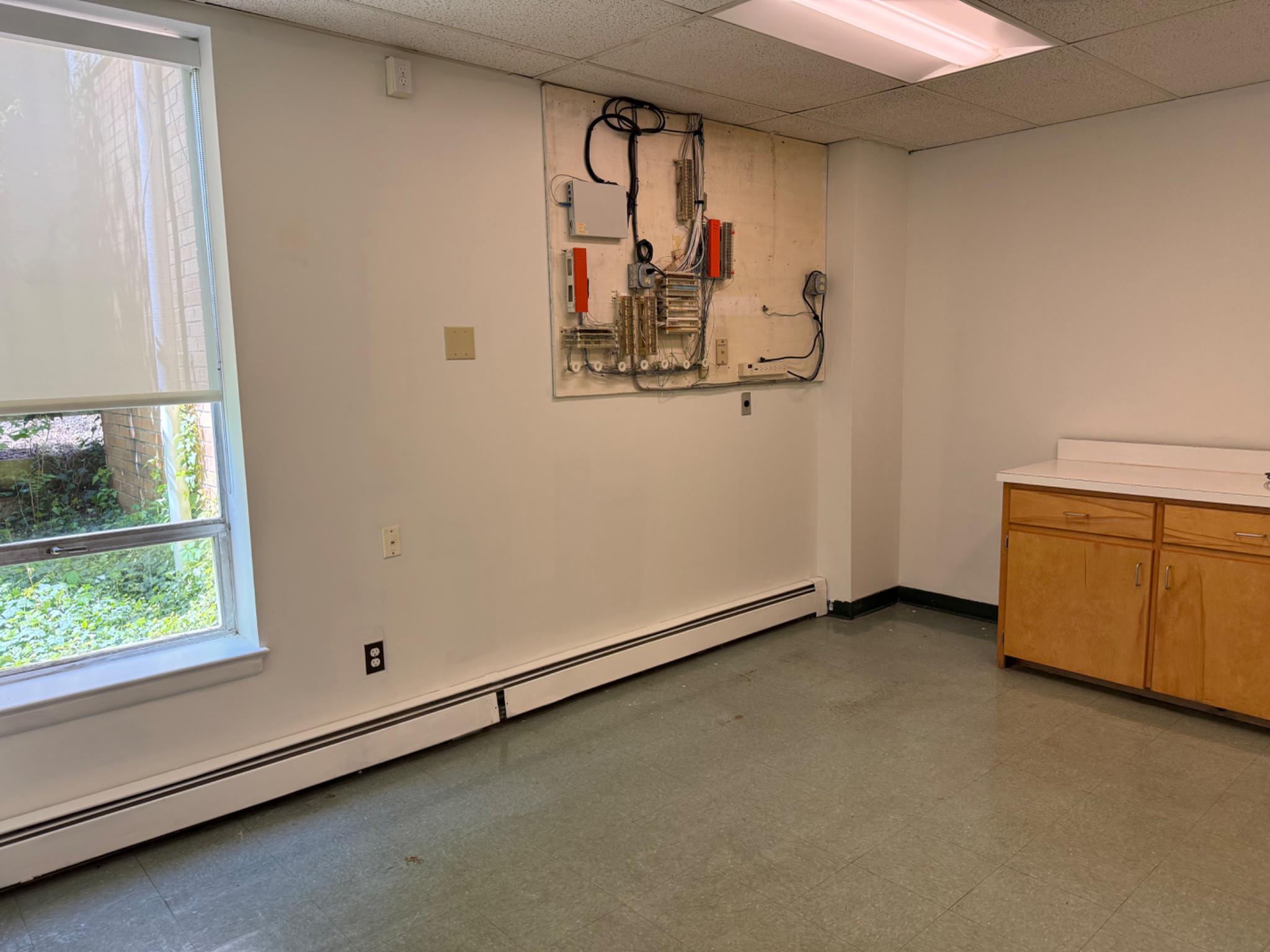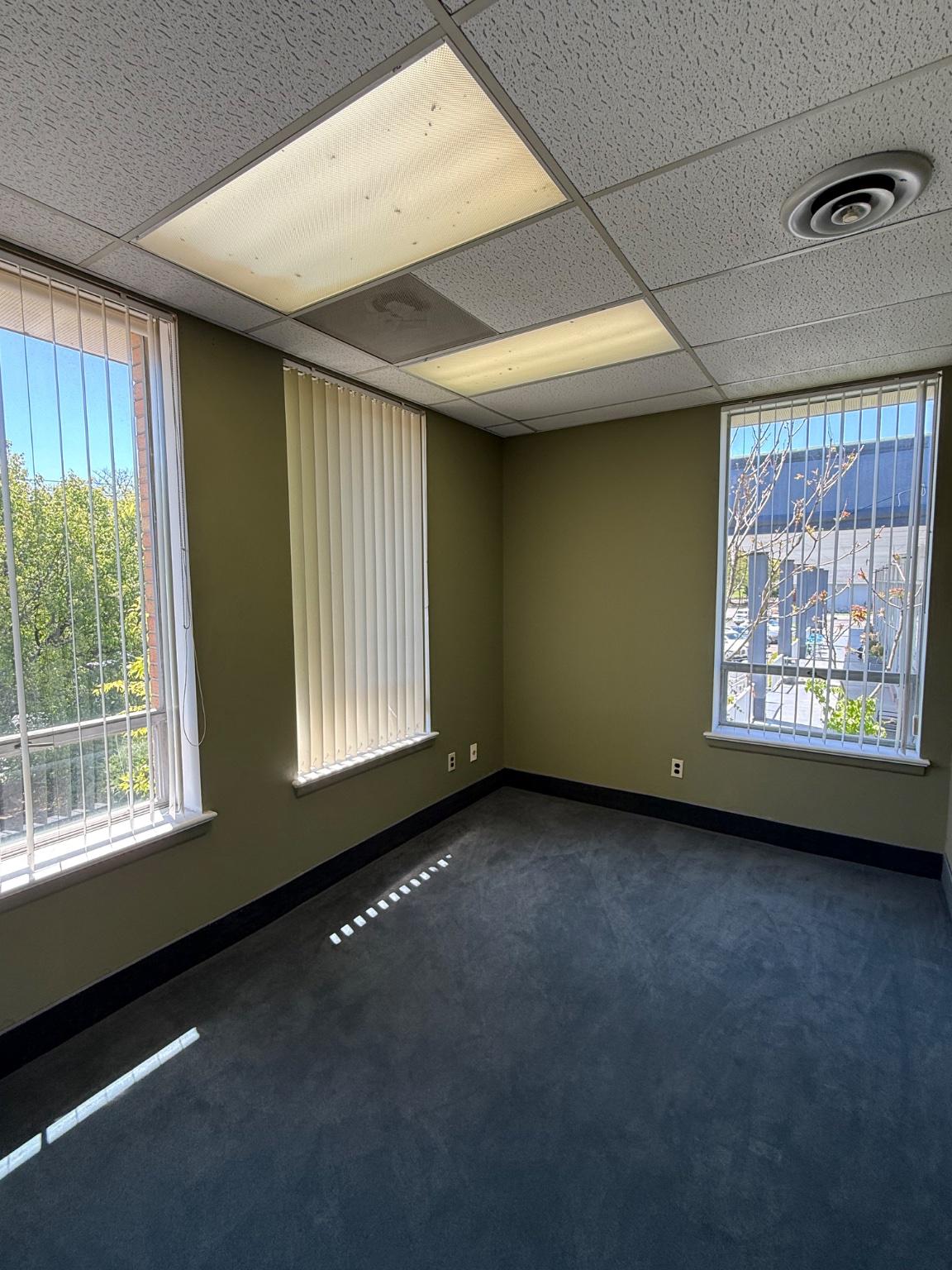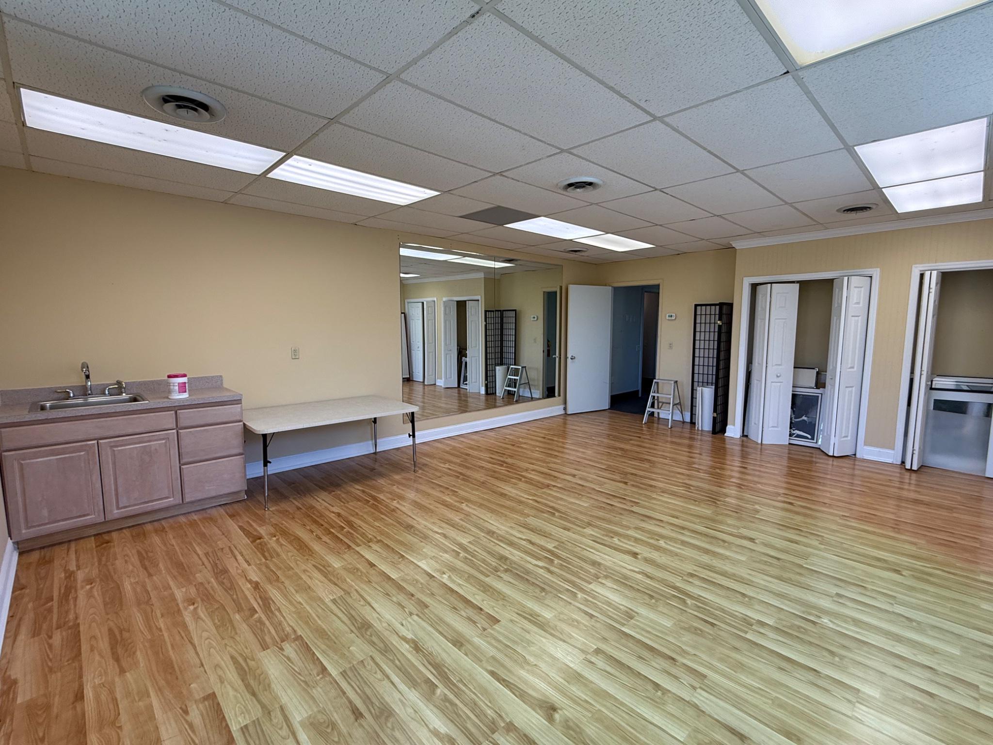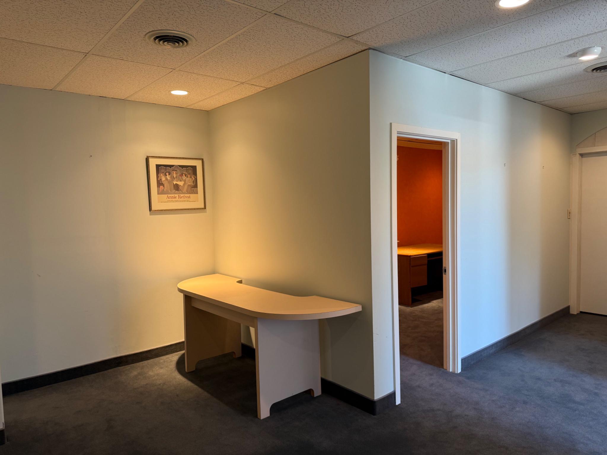 Prime location with great visibility and signage. Suitable for office/retail/service uses. 1st floor former bank space is a large opne plan with vault. 2nd floor Suit A has two large rooms plus work room with water and sewer hook ups. Suite B is a large windowed office space. Suite C has up to four smal office spaces. Heat and AC are included in CAM. Tenant electric is direct billed by utility company.