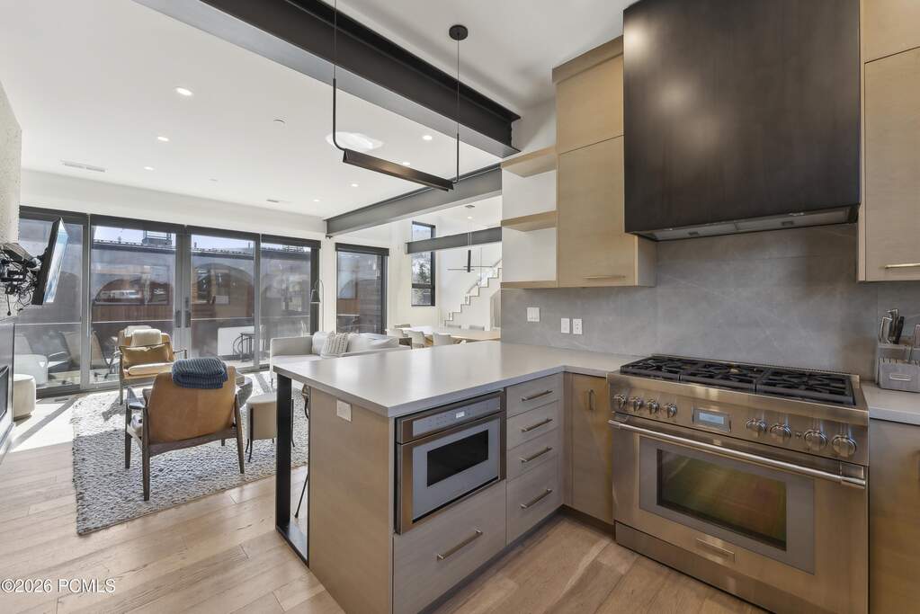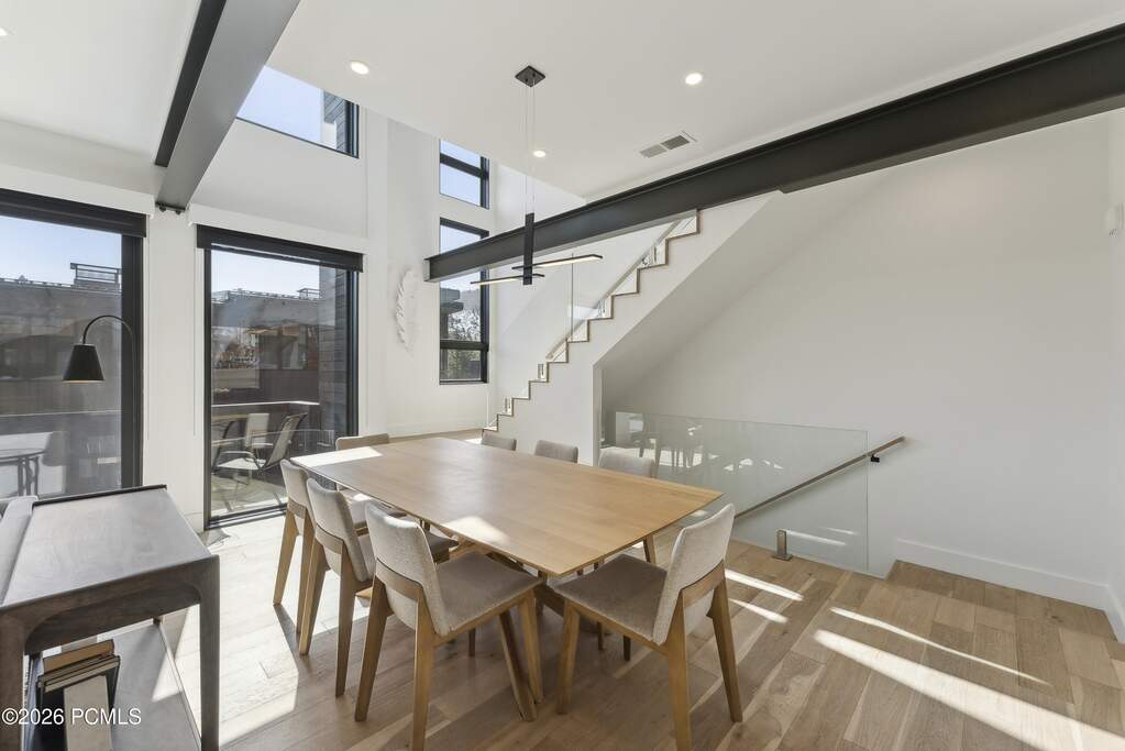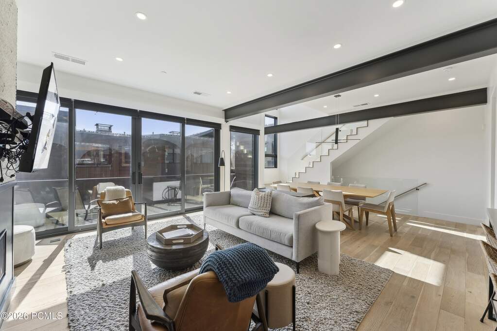 Situated in the exclusive The Ridge at Canyons Village, this stunning luxury townhome is a masterclass in refined mountain living, where no detail has been overlooked. Elegantly exposed structural steel and a dramatic glass staircase set the tone for a sleek, modern aesthetic that flows throughout the home's five bedrooms and five bathrooms, including four en-suites and a lavish owner's suite featuring a fireplace, heated bathroom floors, and a private balcony. Offered turn-key and fully furnished, the residence is outfitted with high-end Thermador appliances, soft-close kitchen cabinets, and two striking stone and metal gas fireplaces. Designed for both comfort and convenience, it includes a heated two-car garage, dual laundry closets, a high-efficiency water heater and furnace, and zoned heating and AC. The great room invites gatherings with its spacious layout, dining area, and balcony overlooking breathtaking mountain views, while a cozy loft offers additional space to relax. Step into your private hot tub after a day of skiing directly into the unit, and enjoy added peace of mind with a built-in security system. Perfectly positioned within walking distance to Park City Resort's Canyons side, shopping, and dining, this home also includes complimentary, on-demand winter shuttle service--an exceptional offering within a limited collection of 44 thoughtfully curated townhomes.