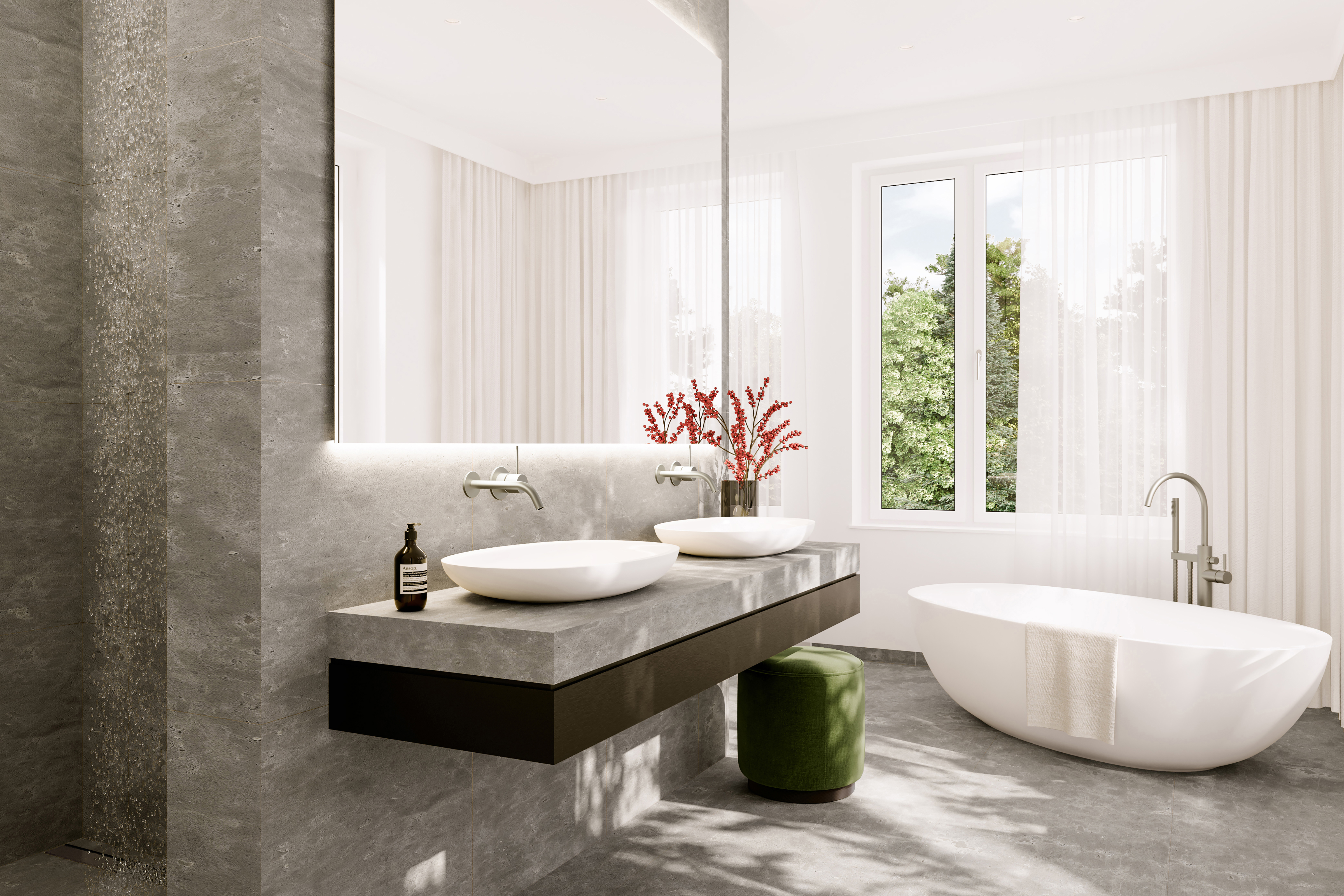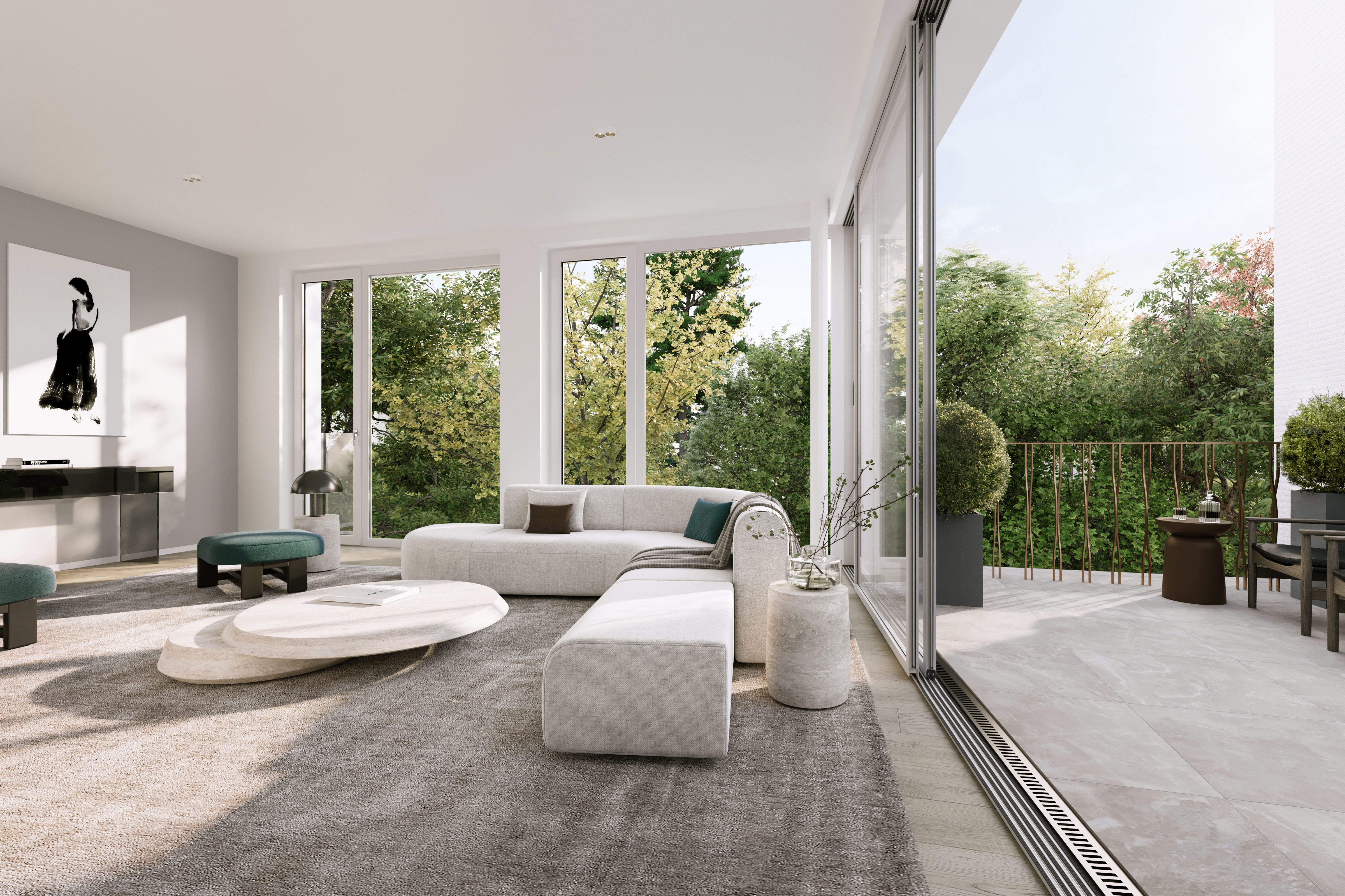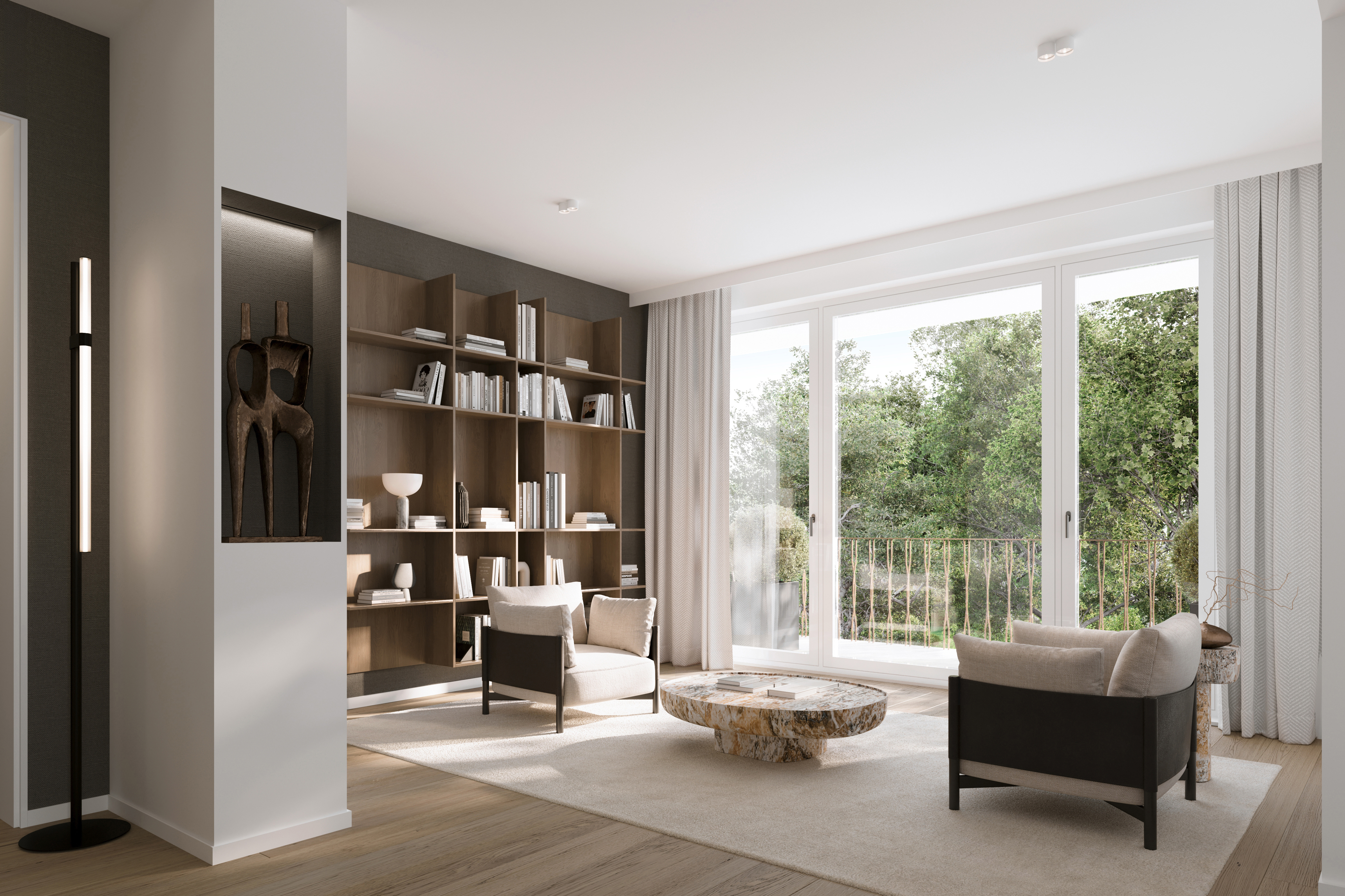 Eine hochklassige Ausstattung, das einladendes Wohlfühlambiente und ein intelligentes Raumkonzept prägen dieses Domizil mit Aussicht im 1. Obergeschoss. Auf einer Wohnfläche von ca. 118 m² bietet die barrierefreie 3-Zimmer-Wohnung viele Annehmlichkeiten und praktische Abstellflächen. Der raffiniert über Eck angelegte Wohn-, Ess- und Kochbereich vermittelt durch bodentiefe Fenster eine luftige Atmosphäre und öffnet sich zu einer Ost-Terrasse, die zum Frühstück in der Morgensonne einlädt. Dank des idealen Schnitts vereint das Raumgefüge alle drei Funktionen auf harmonische Weise und wird durch eine Hauswirtschaftskammer ergänzt. Einen weiteren schönen Freiraum bildet eine geschützte Süd-Loggia. Als ruhiger, privater Rückzugsort zeigt sich eine in sich geschlossene Mastersuite mit Ankleidebereich und Tageslicht-Bad. Hinzu kommt ein weiteres Schlafzimmer, das sich ganz nach persönlichem Bedarf als Arbeits-/Gästezimmer oder Kinderzimmer anbietet. Zusätzlichen Komfort bieten ein Duschbad und ein separates Gäste-WC. Zu dieser reizvollen Wohnung gehören zwei Tiefgaragen-Einzelstellplätze, davon einer mit Wallbox ausgestattet und ein Kellerabteil. Das Neubauprojekt befindet sich bereits in einem fortgeschrittenen Stadium, mit der Fertigstellung ist Ende 2026 zu rechnen.Das Neubauprojekt ISAR GÄRTEN umfasst zwei autarke, ebenso exklusiv wie die Wohnungen selbst ausgestattete Hobbyräume im Souterrain. Beide bieten sich als perfekte Ergänzung des Domizils an – als Homeoffice oder Fitnessbereich. Oder einfach als Rückzugsort „für mich allein". Die Hobbyräume können separat erworben werden und sind nicht im Kaufpreis der Wohnungen enthalten.(Visualisierungen © BE EXTRAORDINARY)