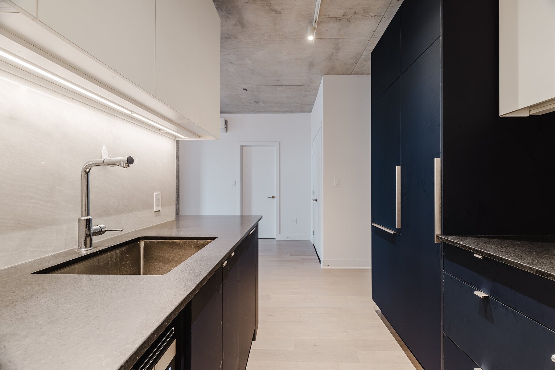 New construction. This well-proportioned open-concept condo features 2 bedrooms, several custom finishes and includes large appliances and in-suite storage space. Building with several services: gym, co-working lobby, rooftop swimming pool, BBQs & terrace offering a panoramic view of the city and a perfect viewpoint for the fireworks. Ideal location near the Jacques-Cartier Bridge, downtown Montreal, the St. Lawrence River, services, bars and restaurants in the area.