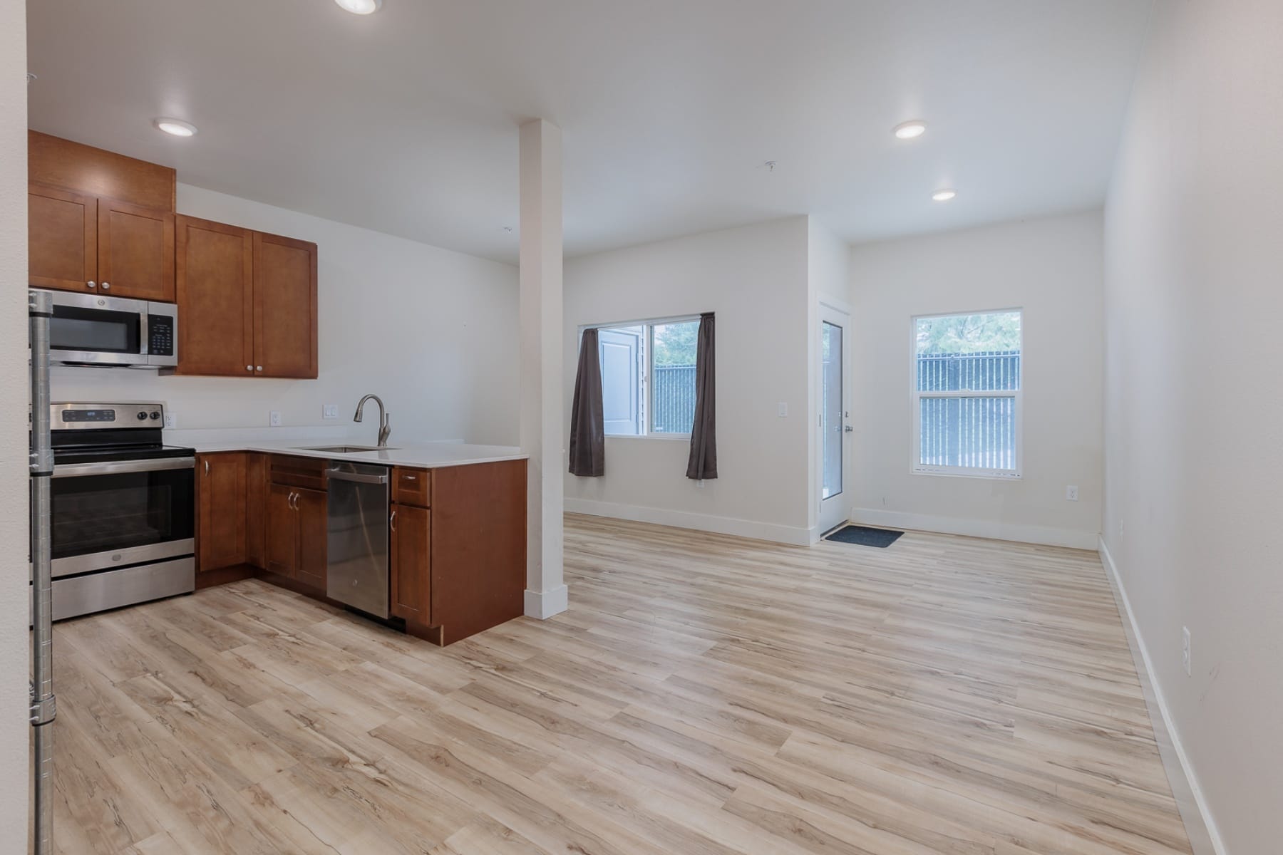 Welcome to easy coastal living in this beautifully designed, ground-floor 1-bedroom, 1-bath condo, built in 2024 with comfort, accessibility, and modern style in mind. Thoughtfully crafted for step-free living, this home offers accessible features with a spacious layout, and seamless transitions throughout. The open-concept floor plan creates a bright and inviting living space. Large windows fill the home with natural light, while clean lines and contemporary finishes give it a fresh, modern feel. The living area flows effortlessly into the kitchen, which features sleek cabinetry, stainless steel appliances, and ample quartz counter space for cooking and gathering. The spacious bathroom is designed with accessibility in mind with grab bars, an easy-to-navigate layout, and modern fixtures. Outside is a private rear patio, a perfect spot to take in the clean, coastal air. No stairs, ground-level access, and a handicapped parking spot located right outside the door. Located just south of the Newport Bridge, this condo is just minutes from some of the Oregon Coast's most popular attractions. Spend your days exploring the Oregon Coast Aquarium, strolling along the nearby beaches, or enjoying the vibrant atmosphere of the South Beach Marina. A variety of local shops, dining options, and everyday conveniences are all within easy reach, making this an ideal location for both full-time living and a relaxing coastal getaway. Built in 2024, this home offers the peace of mind that comes with newer construction. Whether you're looking for a primary residence, a second home, or a smart investment, this condo delivers accessibility, location, and contemporary comfort.