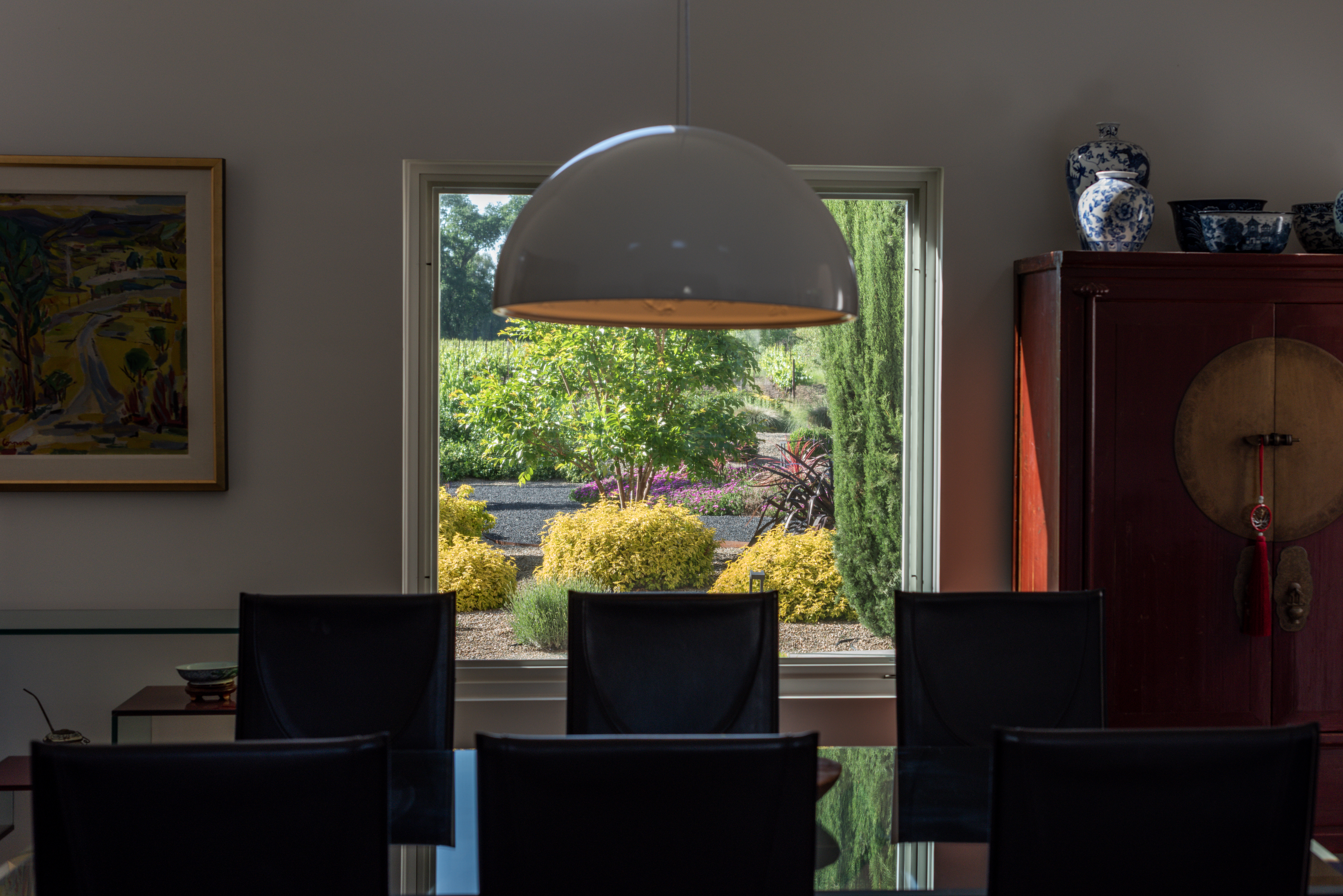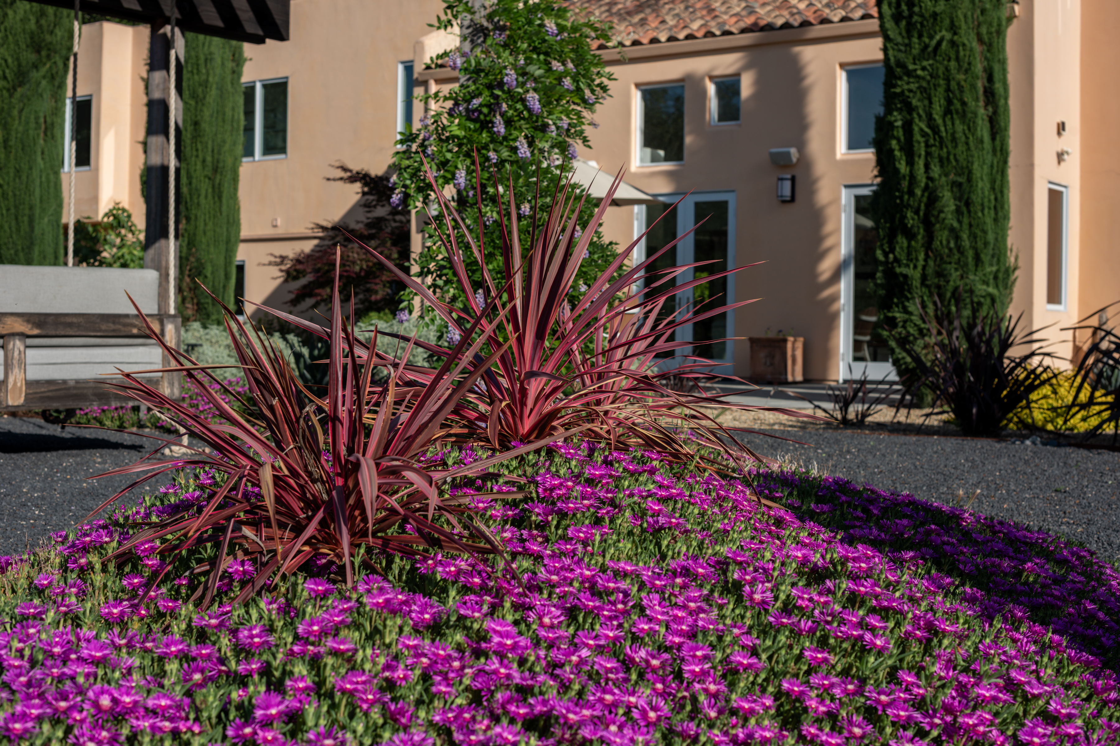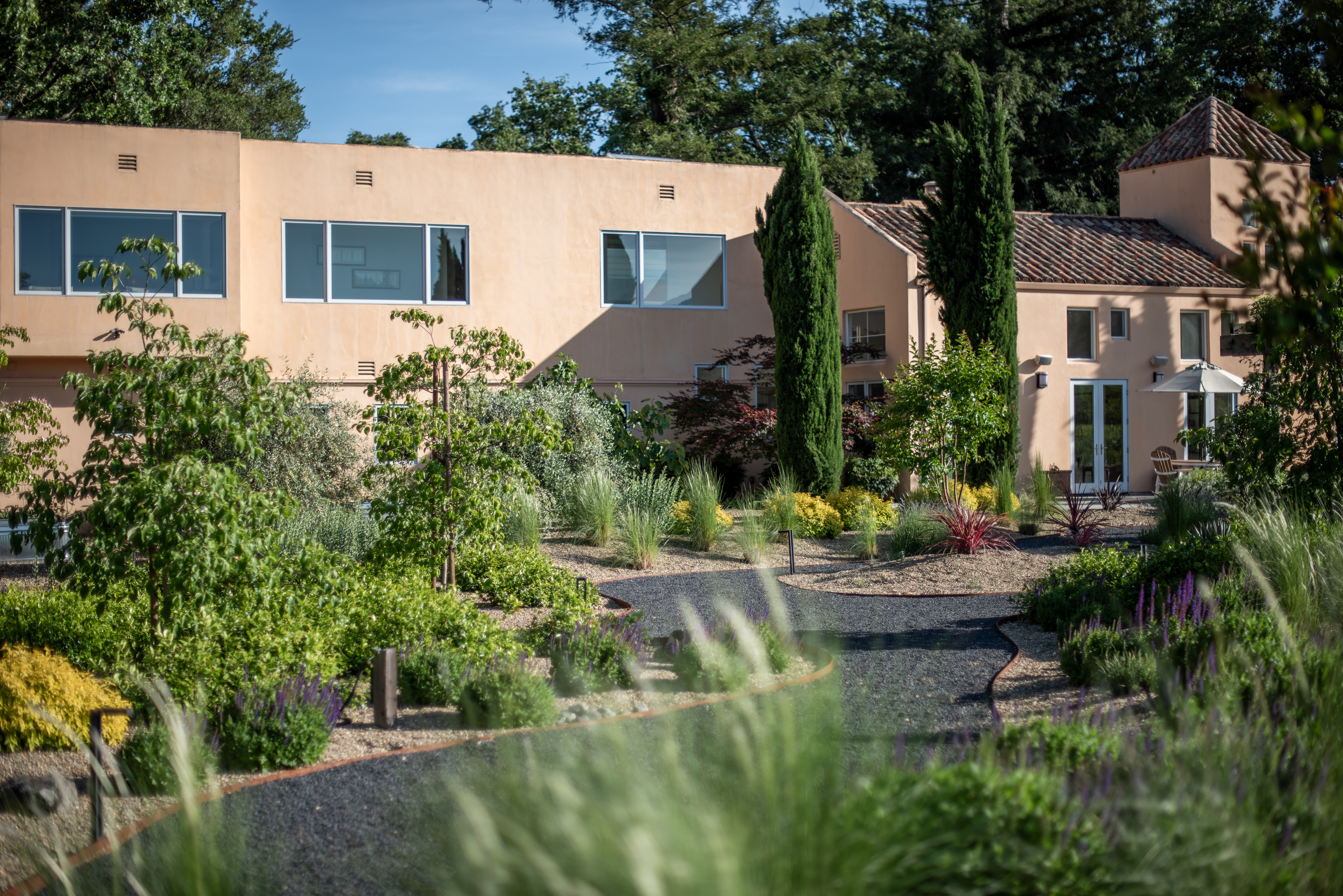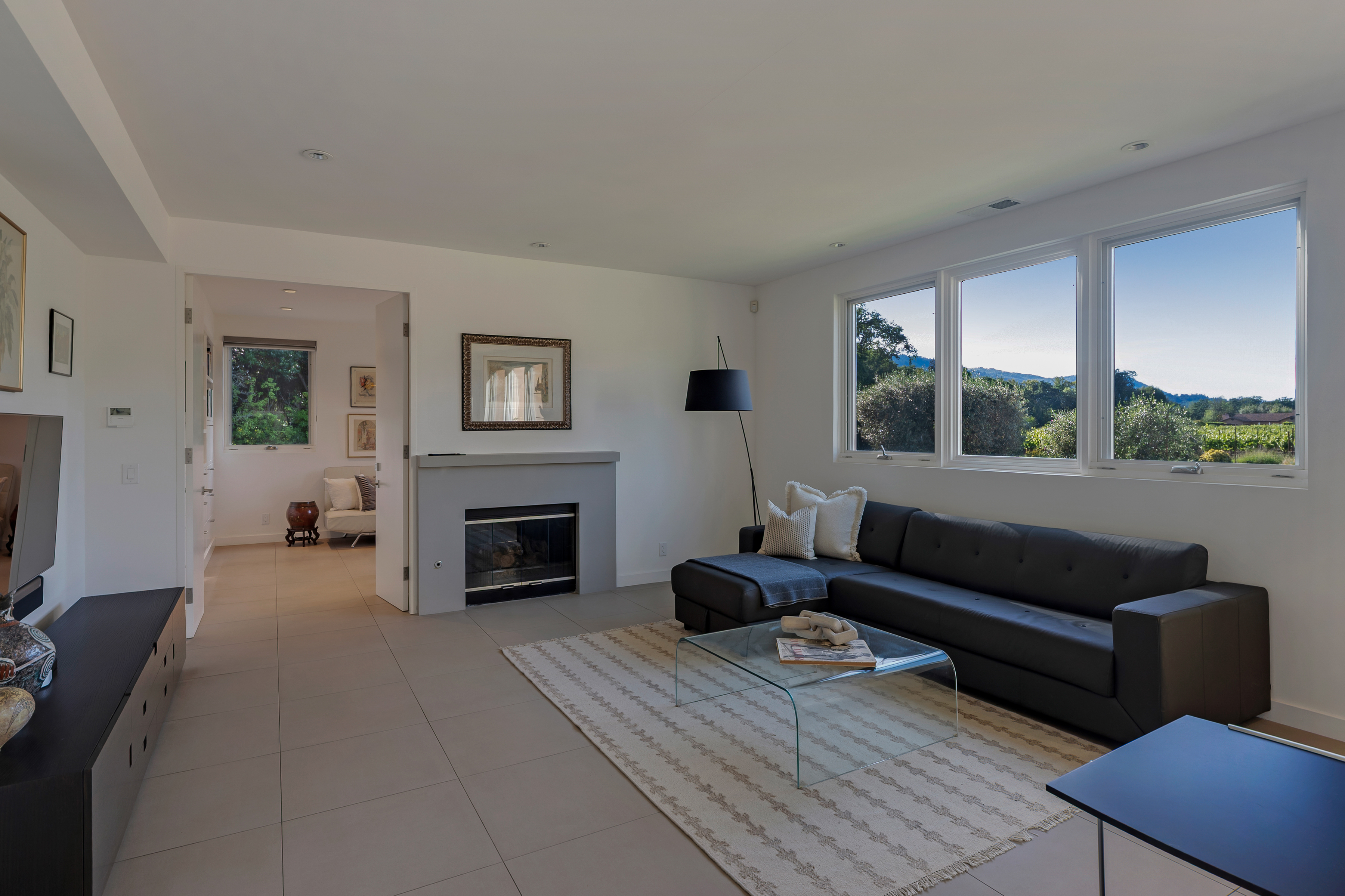 Ideally located just minutes from the historic Sonoma Plaza and Glen Ellen, 942 Country Club Lane offers a rare blend of convenience and privacy. Set behind a gate on approximately 3 acres, this Tuscan-inspired villa is approached via a private road and enjoys sweeping vineyard and hillside views. The grounds are thoughtfully landscaped for beauty and ease, featuring meandering garden paths, mature olive trees, citrus, dogwood, and crepe myrtle. Outdoor amenities include two trellises, a fountain, fire pit, pergola for sunset gatherings, and a comfy bed swing. A whimsical playhouse is tucked beneath a majestic oak, adding to the property's character. Inside, walls of glass flood the home with natural light, highlighting soaring ceilings in the formal living and dining rooms. The gourmet kitchen is equipped with top-of-the-line appliances and opens to both a casual seating area and a spacious family room. Seamless indoor-outdoor living extends to the patio and outdoor kitchen with grill, burners, refrigerator, and Italian pizza oven ideal for entertaining.