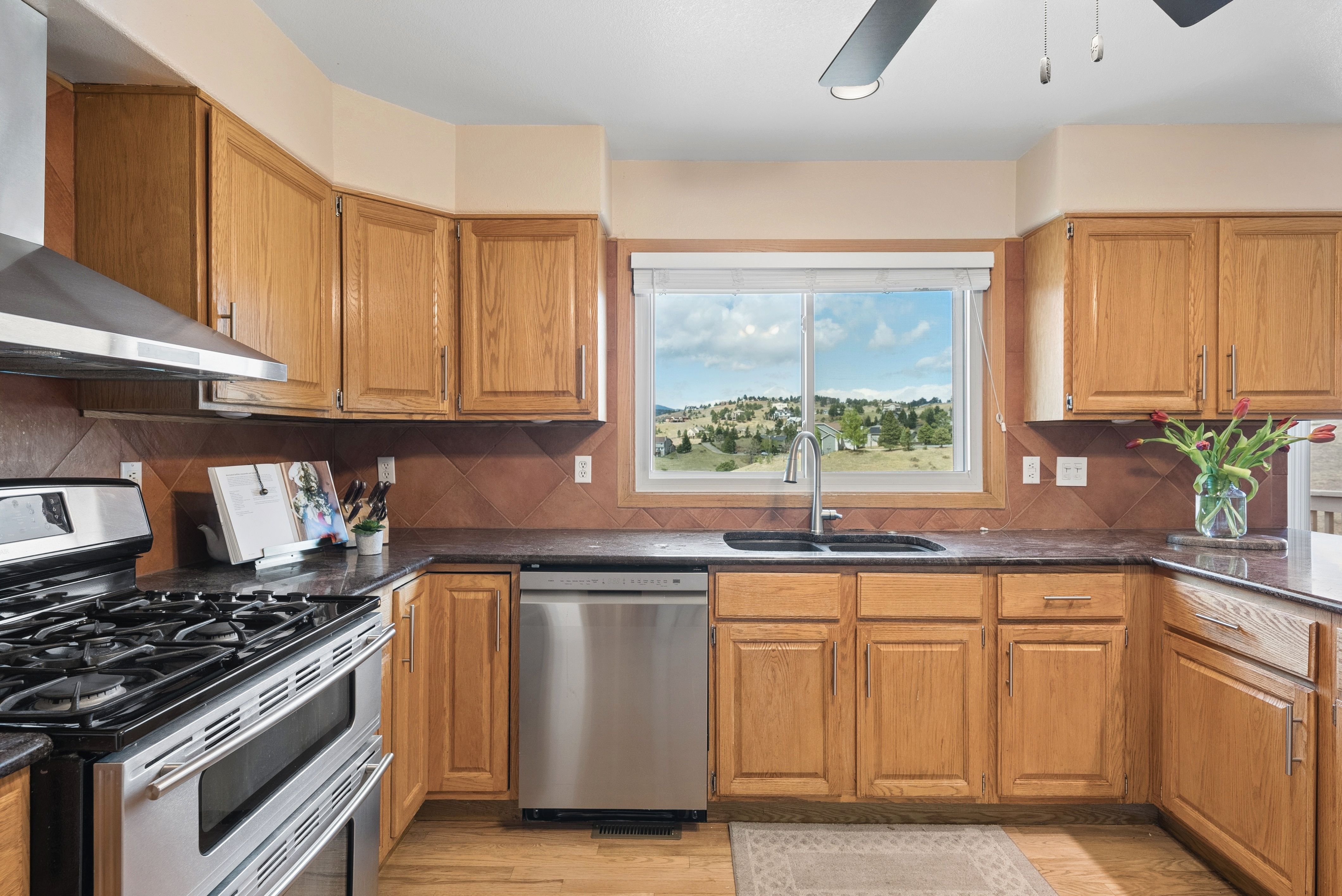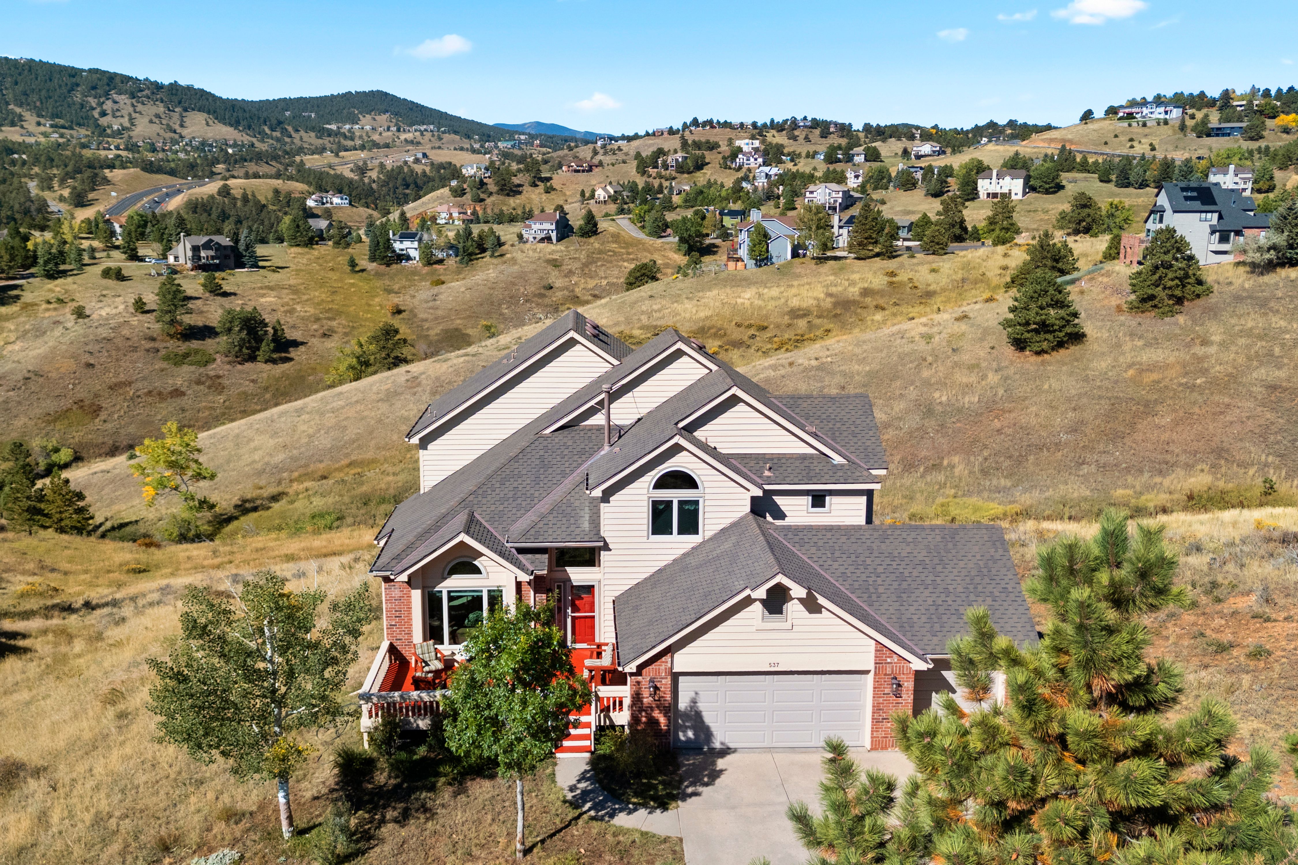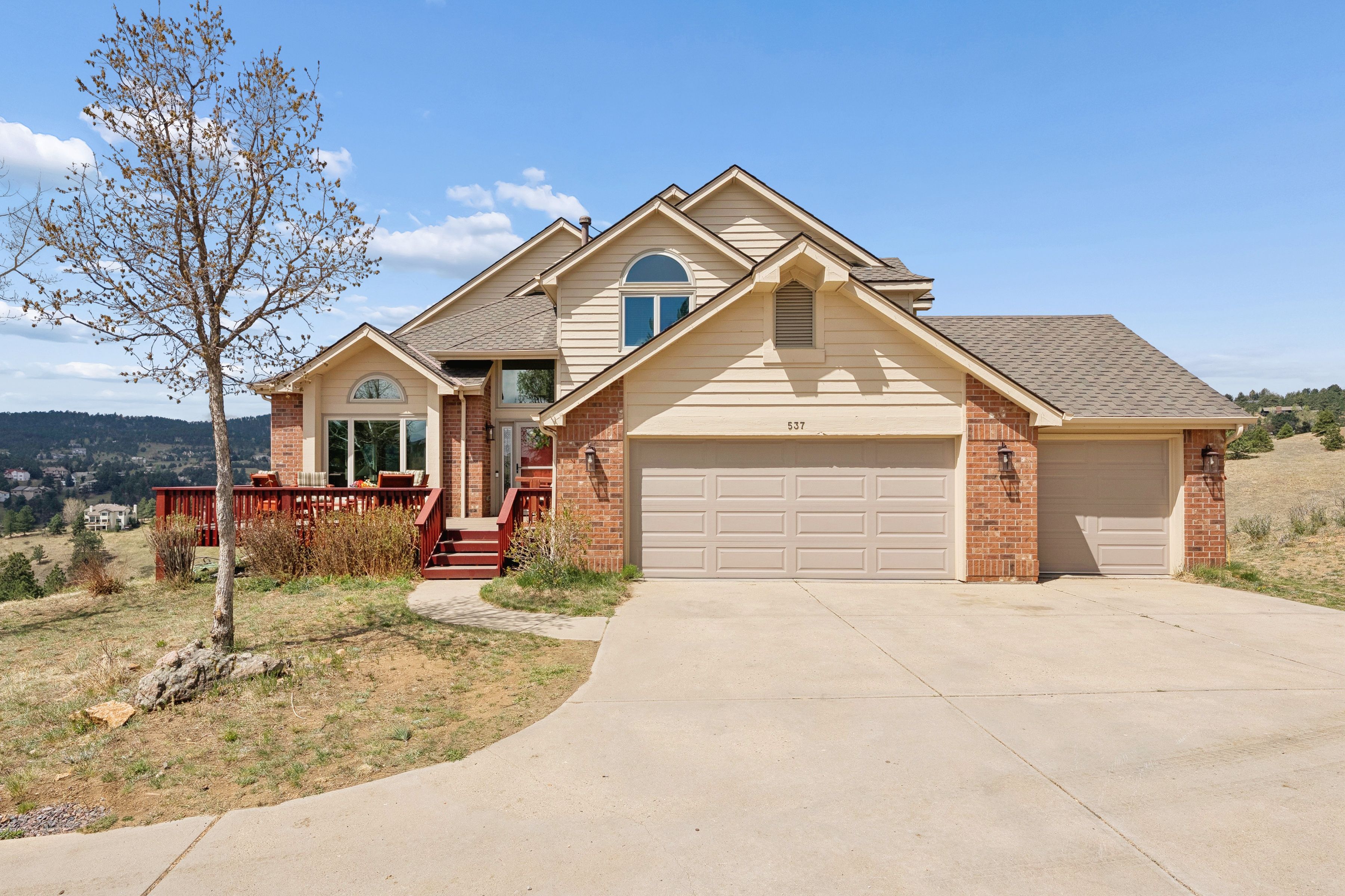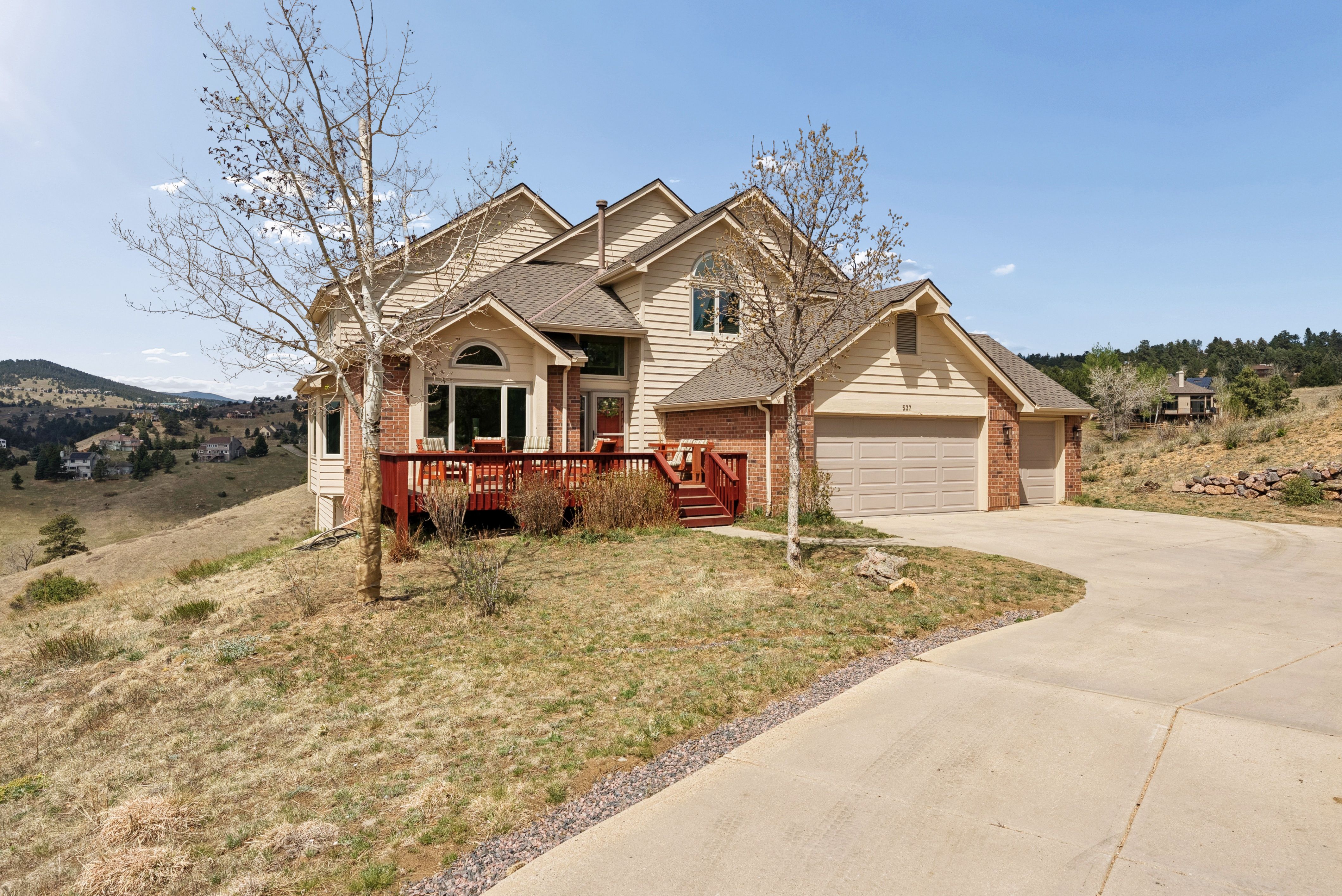 Welcome to scenic Lookout Mountain! This custom-built home, loved and occupied by the original owners, is situated on a rolling 1.5-acre lot in highly desired Paradise Hills. This 2-story residence with a walkout lower level offers 3 bedrooms, 4 bathrooms, and 3,500+ finished square feet of thoughtful living space. A brand-new Trex front deck welcomes you into the inviting entryway The main level features a front sitting area, dining room, spacious living room with gas fireplace, office, ¾ bathroom, and laundry room. The updated kitchen features stainless steel appliances, granite countertops, and a walk-in pantry. Newly refinished hardwood flooring and new carpeting offer fresh, move-in-ready appeal. Ascend the grand staircase to find 2 generously sized guest bedrooms sharing a Jack & Jill full bathroom. The primary suite features vaulted ceilings, west-facing views, an en suite full bathroom, and large walk-in closet. The walkout lower level with a fourth bathroom offers incredible versatility – ideal for guest quarters, additional entertaining space, a home gym, or recreation area. The spacious 3-car garage offers ample space to store your vehicles and Colorado toys. Enjoy outdoor living on the main-level back deck and lower concrete patio, both backing to open space.. This peaceful location offers splendid privacy and tranquility, endless opportunities to view wildlife, and access to miles of hiking and bike trails - all just minutes from I70. Only 25 minutes from Denver and 60 minutes from world-class mountain resorts, this home embodies the best of foothills living!