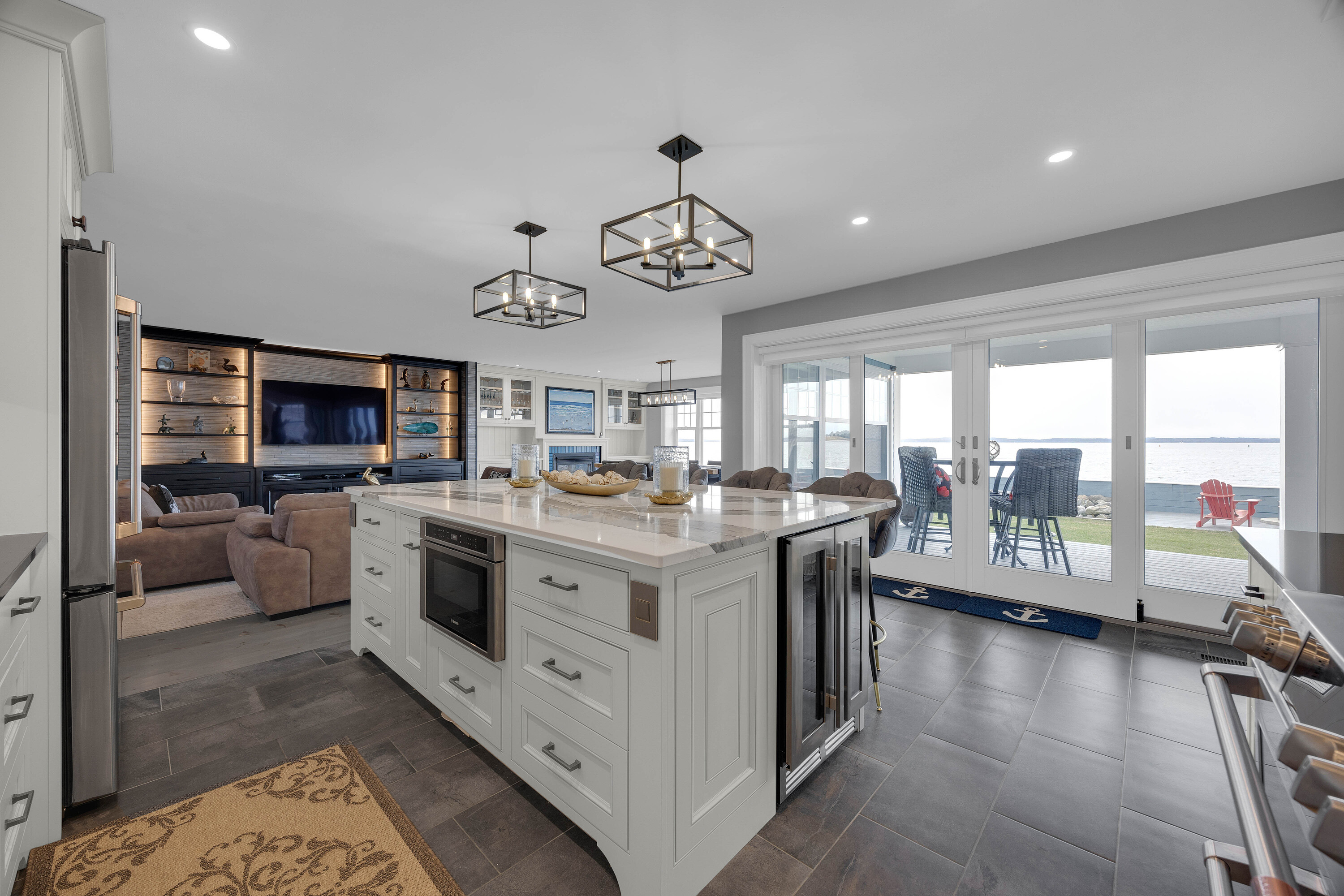 Experience refined coastal living in this executive two storey beachfront residence in Saint Andrews, NB. Perfectly positioned on a beautifully landscaped 0.38-acre lot, this property captures sweeping water views, exceptional privacy, and the added durability of an ICF foundation and construction throughout, delivering superior energy efficiency, comfort, and long-term peace of mind, all just minutes from downtown. A welcoming formal entry opens to an elegant and thoughtfully designed main level. The spacious living room, anchored by a propane fireplace, flows seamlessly into a formal dining area and a well-appointed custom B. Rourke Fine Cabinetry kitchen, ideal for both everyday living and entertaining. The sunroom offers a bright, tranquil retreat with direct access to the expansive 25' x 11' patio and salt water hot tub, creating the perfect setting to relax and take in the coastal surroundings. This level also features a bedroom with a 3-piece ensuite, convenient coffee bar, laundry area, mudroom, and access to the double attached garage. Upstairs, the impressive primary suite serves as a private sanctuary, complete with its own balcony showcasing breathtaking panoramic water views an ideal spot for morning coffee or evening sunsets. The suite is complemented by a generous walk-in closet and a spa-inspired 5-piece ensuite designed for ultimate comfort. The expansive 22' x 24' family room provides outstanding space for gathering and entertaining, seamlessly connecting to a cozy sitting room for added versatility. A third bedroom and full 3-piece bath complete the upper level, offering excellent accommodations for family and guests. Adding to the home’s appeal is a Generac backup generator, ensuring comfort and convenience year-round, no matter the conditions. This is a rare opportunity to own a beautifully renovated beachfront home with exceptional features and stunning views in one of New Brunswick’s most desirable coastal communities.
