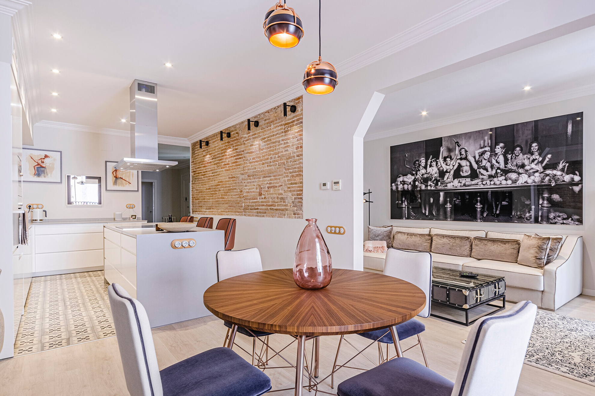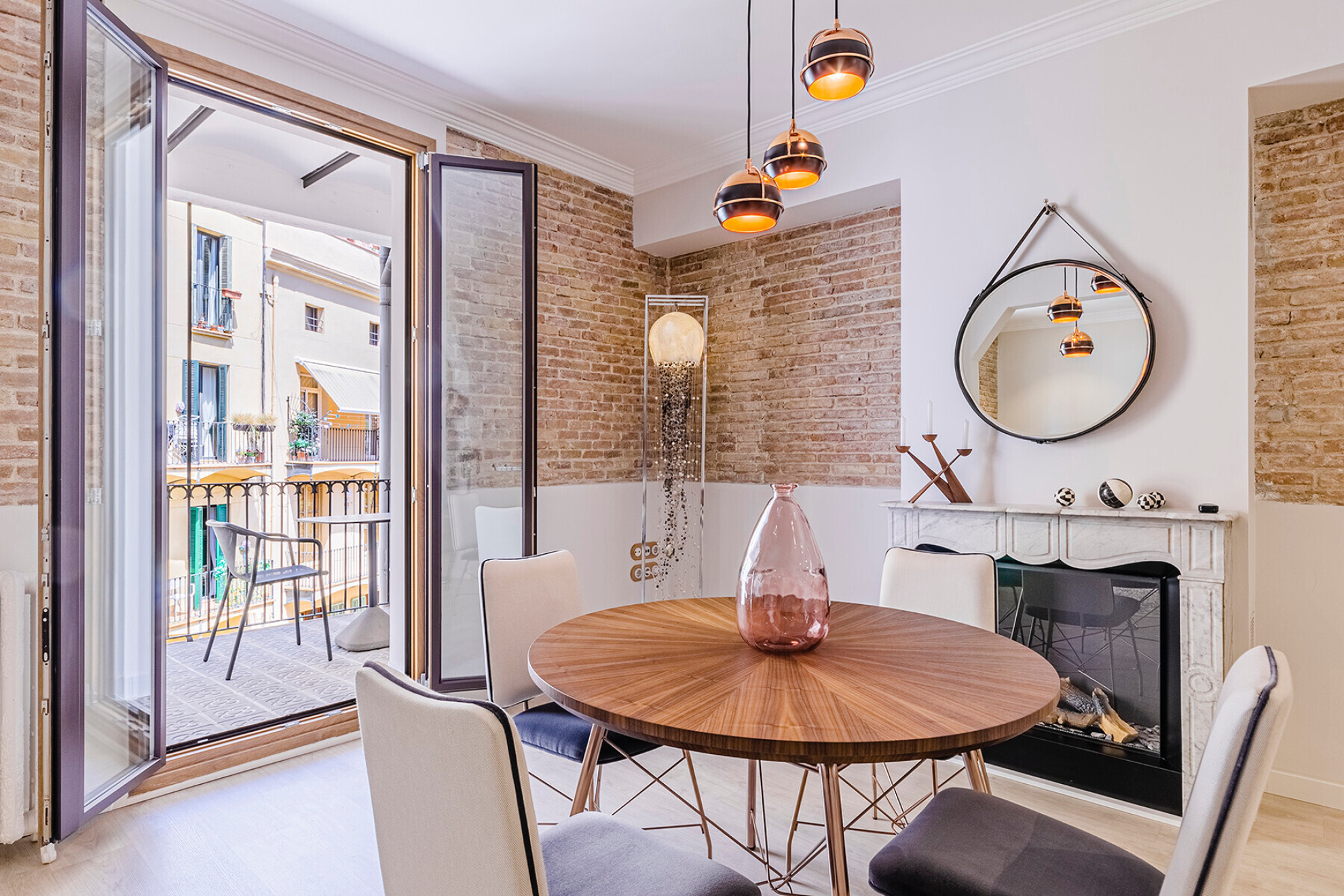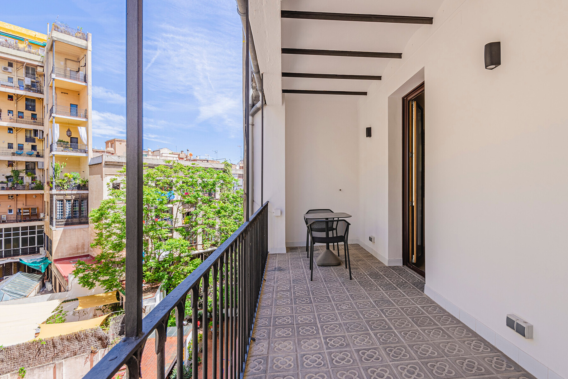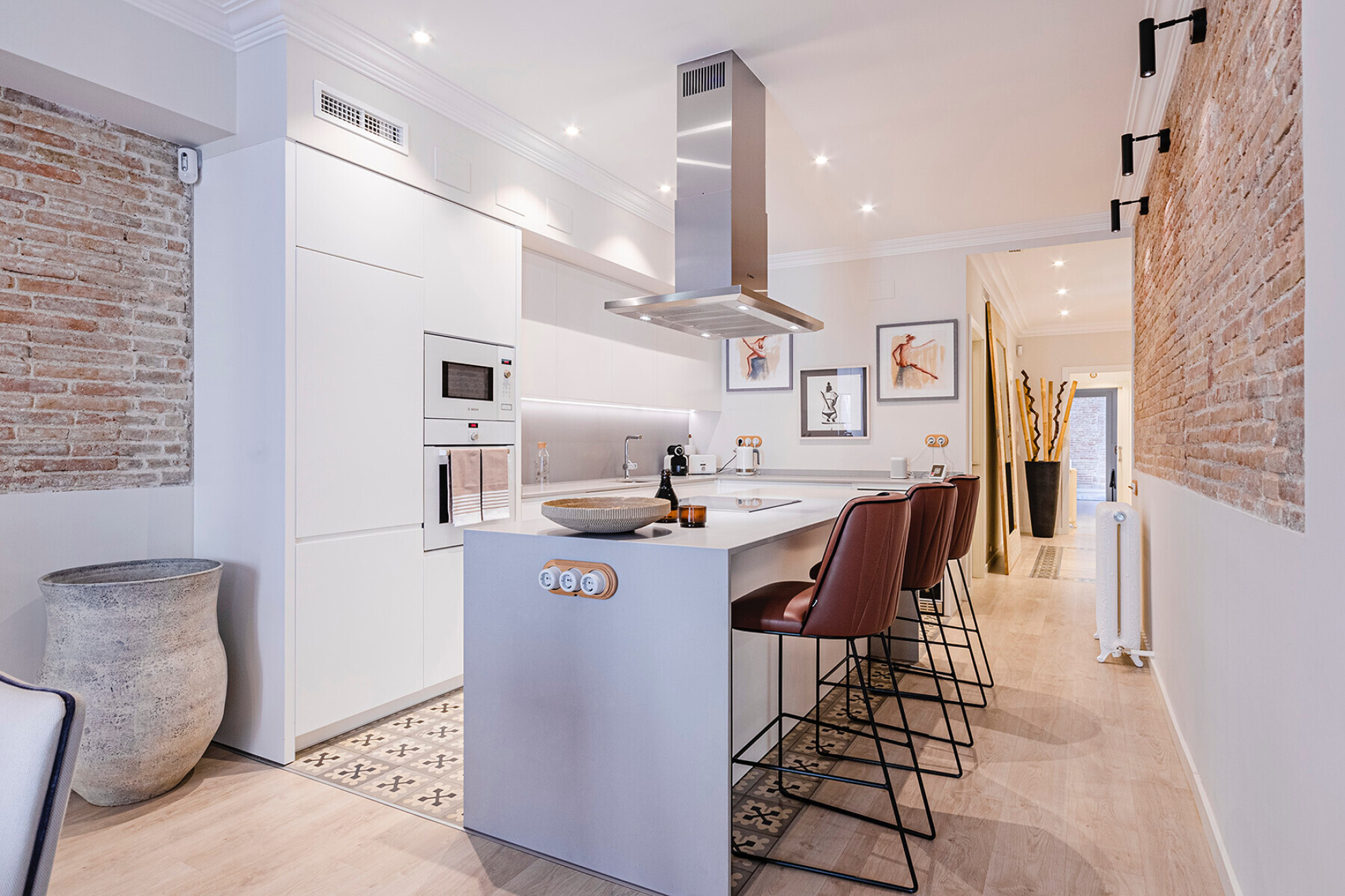 In a building with character in the Eixample Dreta, this apartment of approximately 157 m² has been transformed into a contemporary space where the distribution and light are the protagonists. A property designed to live comfortably without giving up a careful aesthetic.The entrance leads to a large hall that organizes the house with clarity. Here is integrated a full bathroom for general use and a separate laundry area, resolved in a discreet way.The night area has two bedrooms en suite, both with dressing room. They are generous spaces, well proportioned and with access to the outside, which guarantees natural light and a feeling of spaciousness.At the other end, the day area is developed in a single fluid environment. The kitchen with central island opens to the dining room and living room, creating a versatile space. A gas fireplace provides warmth without breaking the contemporary aesthetic.From the living room there is access to a terrace of approximately 10 m², an unusual differential value in the area.The renovation includes quality materials and technical solutions: natural wood floors, ducted air conditioning, radiator heating and integrated security systems.Located just minutes from Plaça de Catalunya and Passeig de Gràcia, in one of the most consolidated areas of Barcelona.A property ready to enjoy from the first moment.