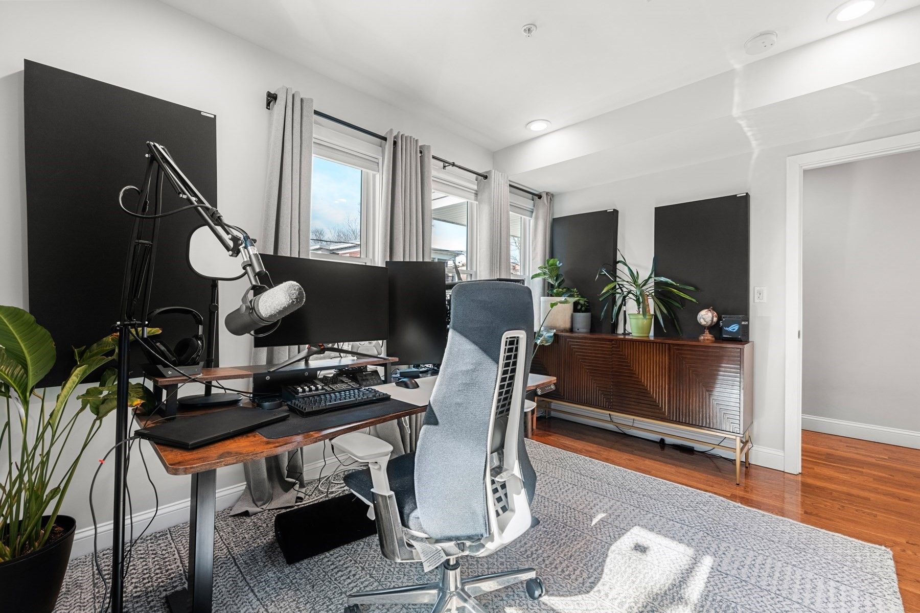 Set on a picturesque tree lined street in Jamaica Plain’s coveted Stony Brook neighborhood, this exquisitely renovated three bedroom, two bath residence offers a refined blend of modern sophistication and timeless design. A sun filled, open concept layout showcases hardwood floors and seamless flow for elevated living and entertaining. The designer kitchen features custom cabinetry, stone countertops, stainless steel appliances and gas cooking. The serene primary suite offers a spa inspired bath, while two additional bedrooms provide flexibility for guests or a home office. Amenities include central air, in unit laundry, tankless hot water and private storage. Enjoy front and rear decks plus a shared patio with fire feature. Includes one non tandem parking space. Moments to Jamaica Plain's top cultural, dining and entertainment destinations. Convenient access to public transportation and the arborway.