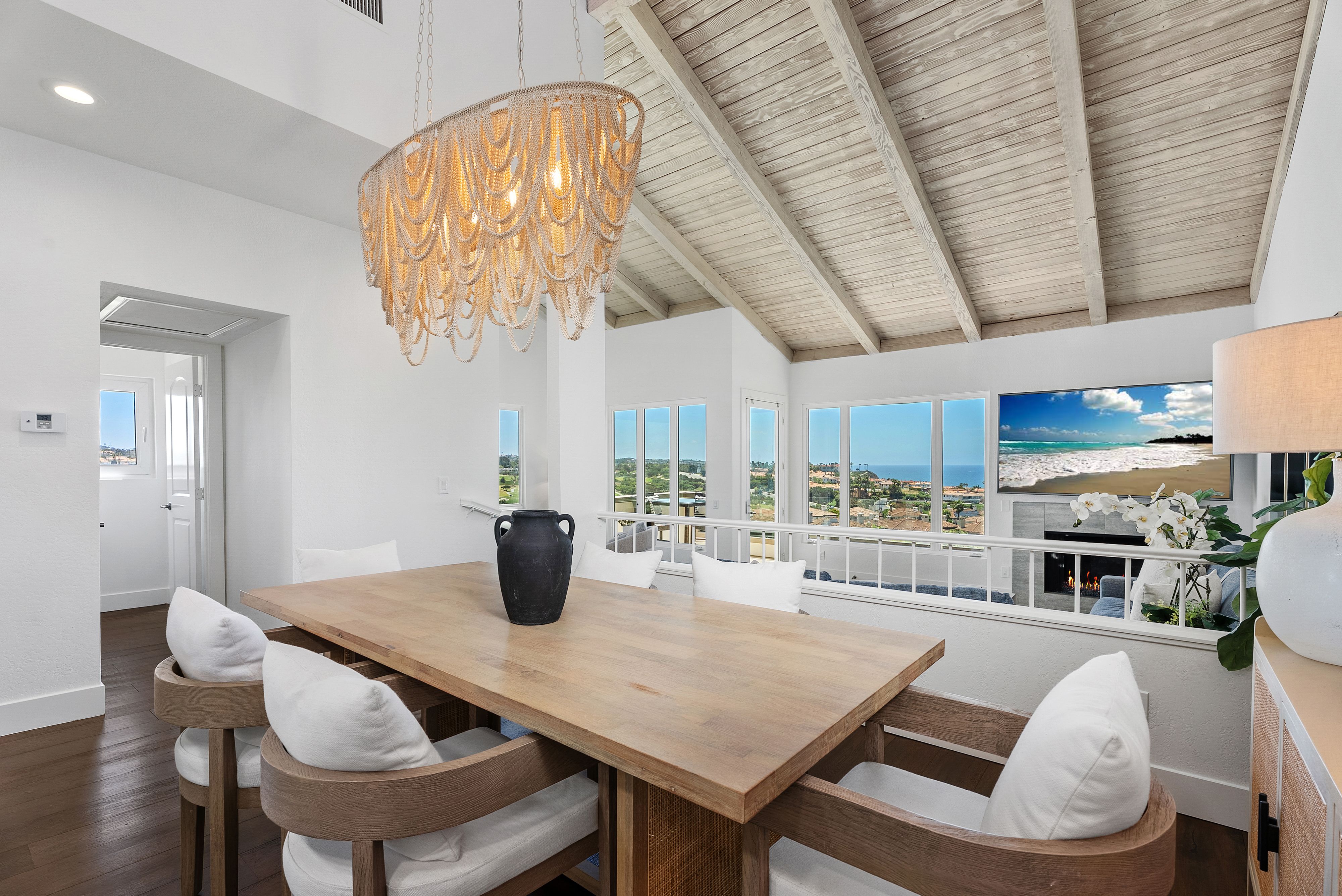 Offered within the prestigious gated enclave of Monarch Bay Villas in Monarch Beach, 23294 Atlantis Way presents a rare opportunity to own a beautifully positioned end-unit residence capturing truly breathtaking panoramic views. From the moment of entry, the home unveils a sweeping coastal tableau—spanning the shimmering Pacific Ocean, white-water waves at Salt Creek Beach, the iconic Monarch Beach Golf Links, and the refined silhouettes of the Waldorf Astoria Monarch Beach Resort & Club and The Ritz-Carlton, Laguna Niguel—all framed by ever-changing sunsets and sparkling city lights. Thoughtfully designed to embrace its extraordinary vantage point, the residence is filled with natural light, with expansive windows and sliding glass doors creating a seamless connection between indoor living spaces and the coastal horizon beyond. Vaulted ceilings elevate the main living area, where a fireplace anchors the room and enhances the sense of warmth and scale. The adjacent dining space and kitchen are equally well-appointed, featuring quartz countertops, custom cabinetry, and premium stainless-steel appliances—each space oriented to maximize both functionality and the home’s captivating views. Multiple outdoor living areas further extend the experience, offering ideal settings for al fresco dining, morning coffee, or simply unwinding while taking in the ocean breeze. Whether hosting or relaxing, the indoor-outdoor flow is both effortless and inviting. The lower level features well-proportioned bedrooms, including a tranquil primary suite with a private balcony, fostering a more intimate connection to the coastal setting. The suite is complemented by generous closet space and a thoughtfully updated bath, creating a quiet retreat within the home. Residents of Monarch Bay Villas enjoy a unique blend of privacy and convenience, with community amenities including a pool, spa, clubhouse, fitness room, and direct access to scenic coastal trails leading to Salt Creek Beach. Ideally situated near world-class resorts, dining, beaches, and the harbor, the location offers an unmatched coastal lifestyle. Balancing elevated design, a premier end-unit position, and some of the most compelling views within the community, 23294 Atlantis Way represents a rare offering—equally suited as a full-time residence or refined coastal retreat.