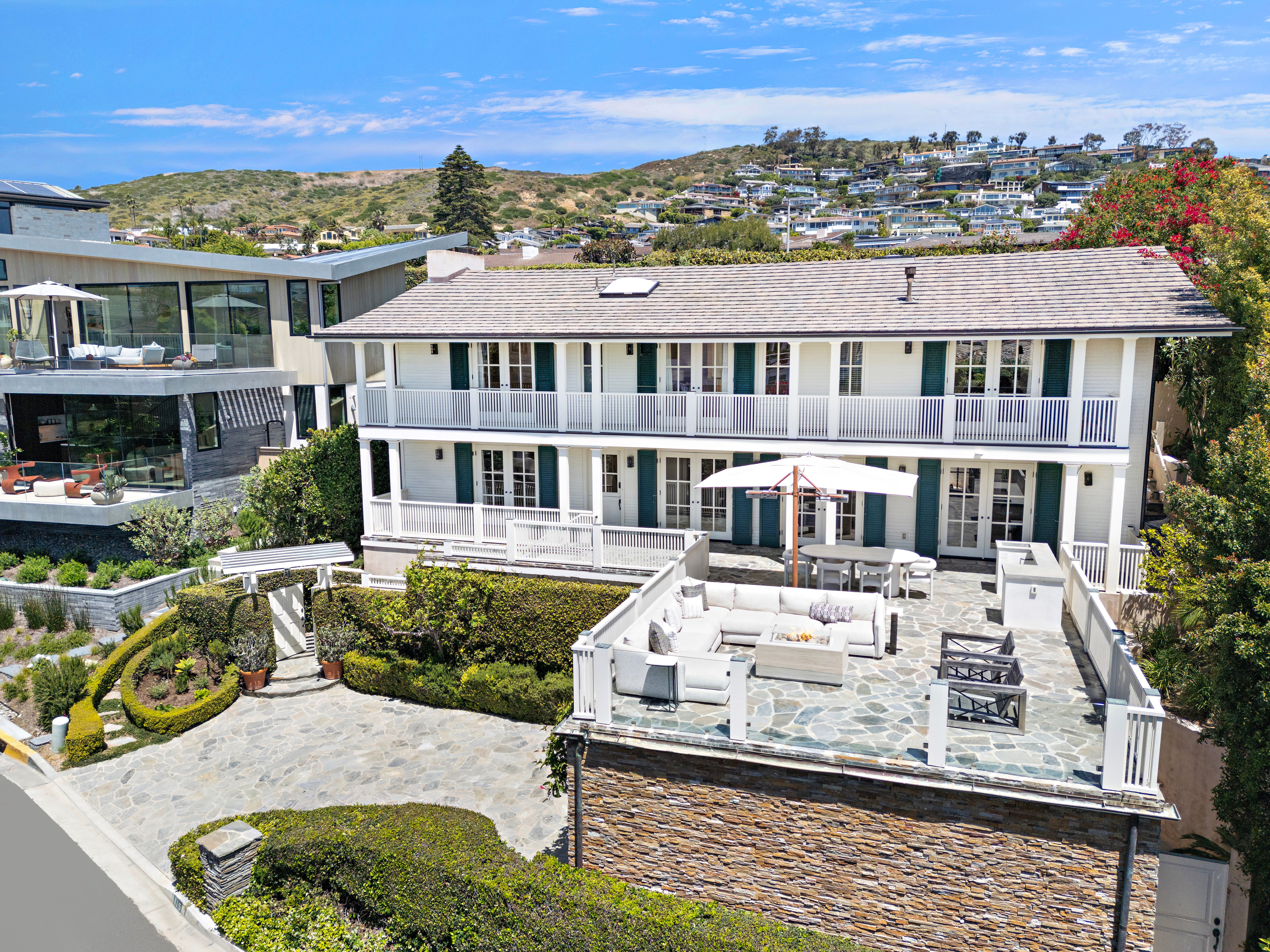 Set within the prestigious guard-gated seaside enclave of Emerald Bay, 115 Emerald Bay is a timeless coastal retreat where classic beach house charm meets an elevated, design-driven sensibility. Framed by captivating ocean views and embraced by the effortless beauty of Laguna Beach, this exceptional residence offers a rare opportunity to experience one of Southern California’s most exclusive and secure communities. Spanning approximately 2,850 square feet on a 7,405 square foot hillside lot, the four-bedroom, four-bathroom home is thoughtfully designed to capture abundant natural light and gentle ocean breezes at every turn. French doors and expansive picture windows artfully frame ocean vistas, seamlessly blending indoor and outdoor living. The heart of the home reveals a beautifully appointed kitchen, where luminous quartz countertops are paired with a striking mosaic tile backsplash. A suite of professional-grade Viking appliances anchors the space, delivering both performance and polished elegance for everyday living and elevated entertaining alike. Three of the four bedrooms, including the primary, offer relaxing balcony ocean views, while the bathrooms, with curated stone detailing, evoke a serene, spa-inspired ambiance. Expansive wraparound decking extends the living spaces outward, presenting multiple vantage points to take in the shimmering horizon. Designed for effortless entertaining, the outdoor areas feature a built-in BBQ, inviting lounge spaces, a cozy fire pit, large and private rear yard with sprawling lawn. Rare ample parking is provided on the large stone driveway that leads to a two-car garage. Just moments from Emerald Bay’s private community beach, this residence embodies the essence of seaside living. 115 Emerald Bay stands as an exquisite coastal sanctuary in one of Laguna Beach’s most coveted enclaves. Residents enjoy an extraordinary lifestyle defined by privacy, security, and effortless seaside living. This iconic community is centered around a residents-only crescent beach with soft sand, calm turquoise waters, and a sheltered cove qne 4esort-style amenities, a community center, and year-round recreational programming that fosters a rare sense of community. With guard-gated access and a prime Laguna Beach setting moments from world-class dining, galleries, and shopping, Emerald Bay offers the uncommon blend of exclusivity, natural beauty, and convenience that makes it one of the most desirable places to call home.