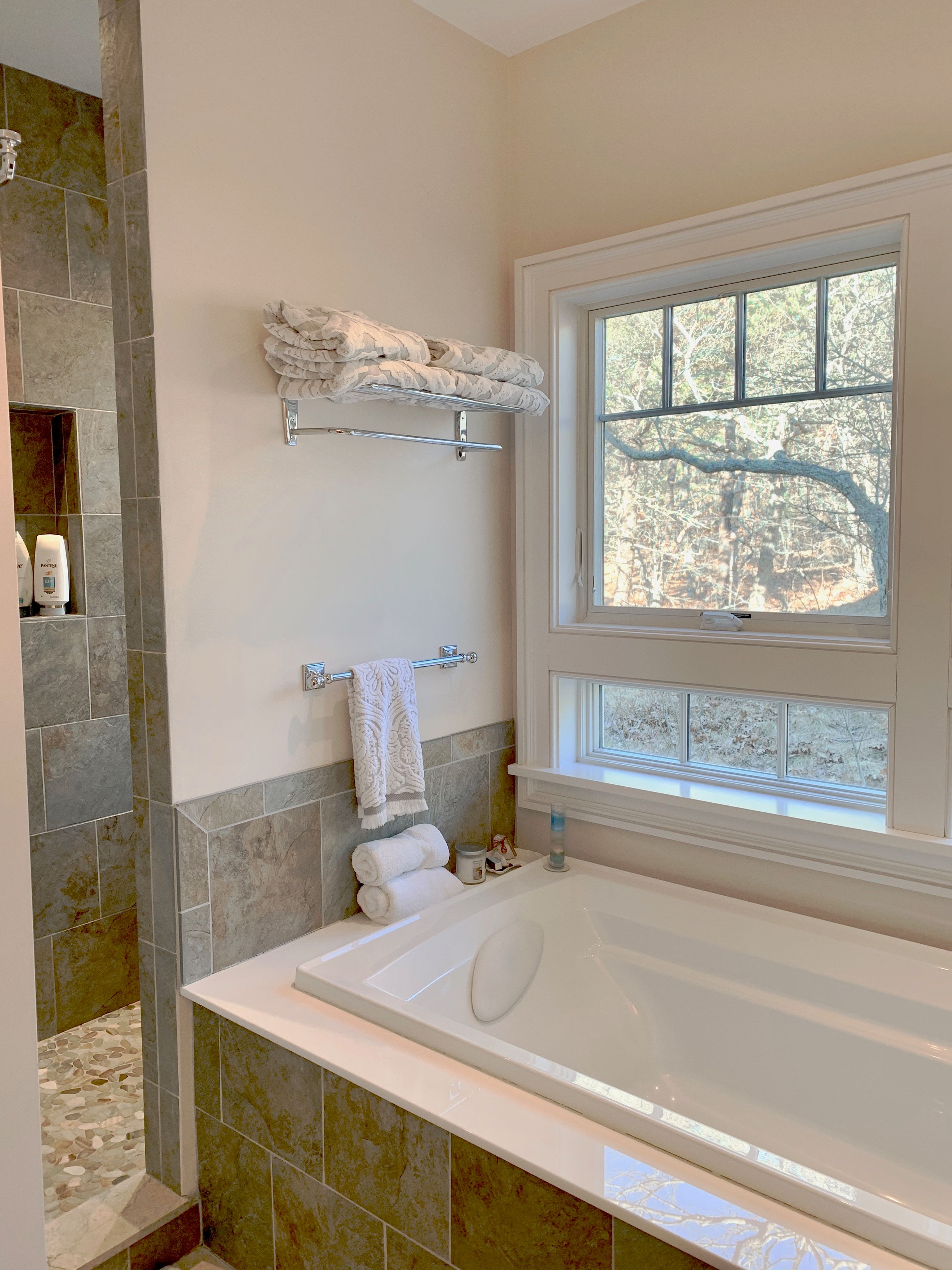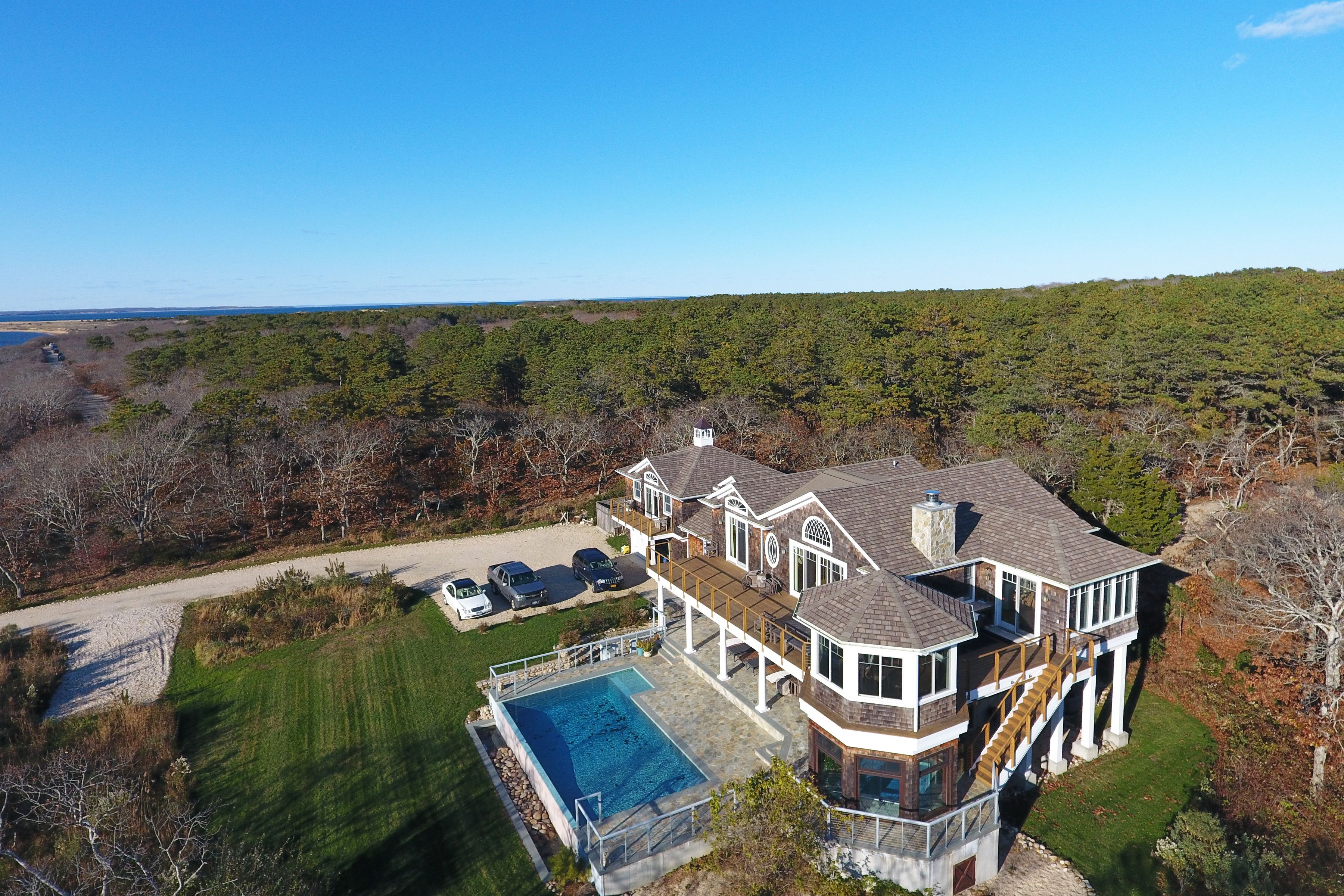 Spectacular 4 bedroom, 4 bath water view rental. Hot tub, gunite pool. Exquisite and unique offering with direct access to Napeague Harbor Bay, the famed dunes, and graciously surrounded on all sides by over 600+ acres of State Parkland and 1300 Acres of Nature Preserve, this incredible new home offers the most beautiful sunsets captured on the East End. Artfully sited on the acre property this 4,500 sq. ft. custom Nantucket inspired home offers top of the line amenities throughout, with comfort, style and summer living at its finest. The entry level offers three ensuite guest bedrooms, and a separate wing for either guest or media/office room enjoyment. Each of these rooms open to over 2,000 sq. ft. of slated covered patio, and decking overlooking the heated gunite infinity edge pool. Arbor laced stone outdoor shower and enclosed 4 Season Spa with outdoor stereo system. The Main living area has dynamic cathedral ceilings with antique hewned beams, state of the art chef's kitchen with enormous center island counter seating for six, all top of the line Wolf appliances, including counter cook top, convection oven, warming drawer and a Fisher Paykel dual drawer dishwasher. An all season sun room sits off the living room, centered by a stone fireplace, flat screen TV and sliders leading out to the second level decking, outdoor grilling/kitchen area and screened sunset gazebo. The upper Master suite has its own laundry room, dressing room, radiant heated floors, and master bath. Additional features include a 2 car garage, CAC, and rolling lawns. For the discerning summer guest this magnificent offering is a short distance to ocean beach and only a few minutes drive to both Montauk and Amagansett villages. Capture the magic of sunny fall days and cool sleeping nights.