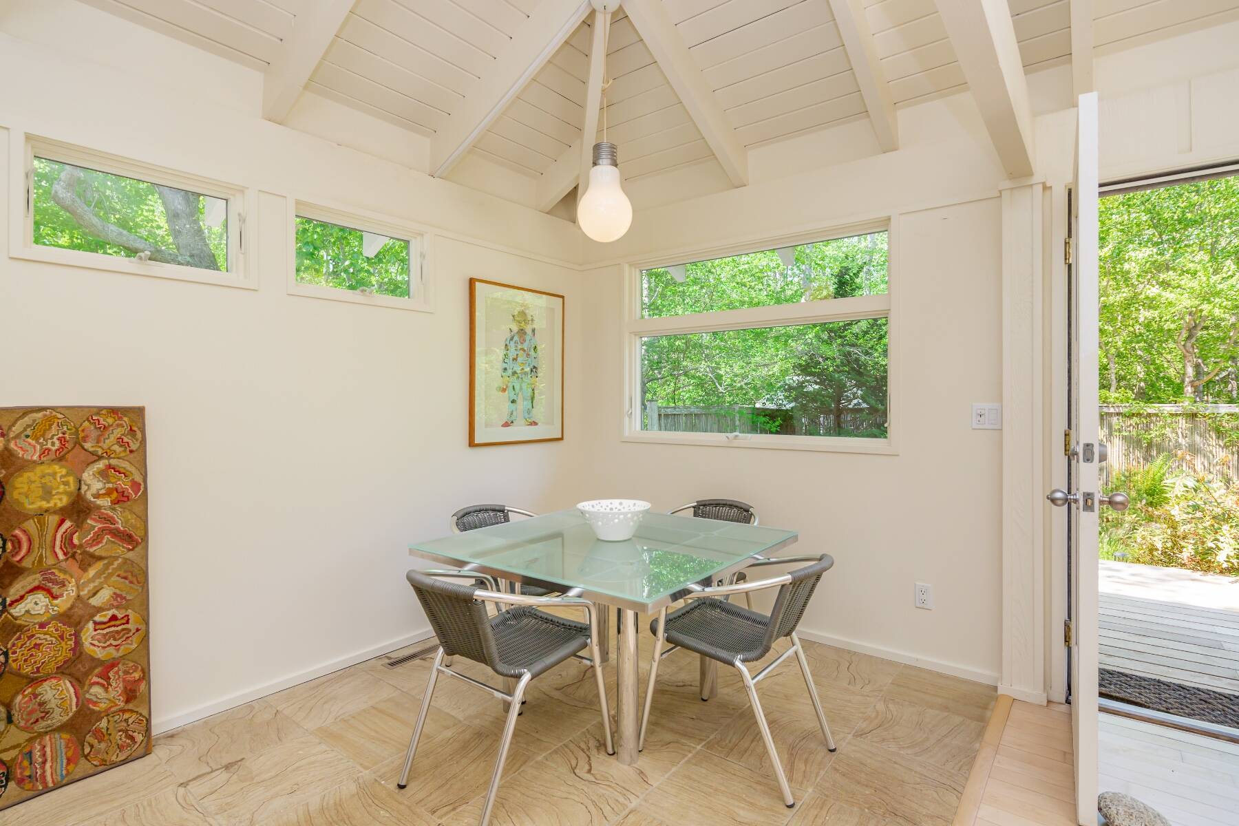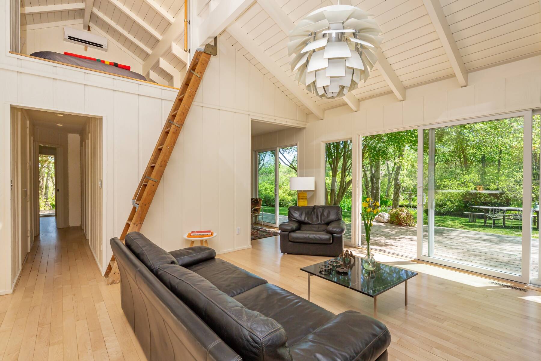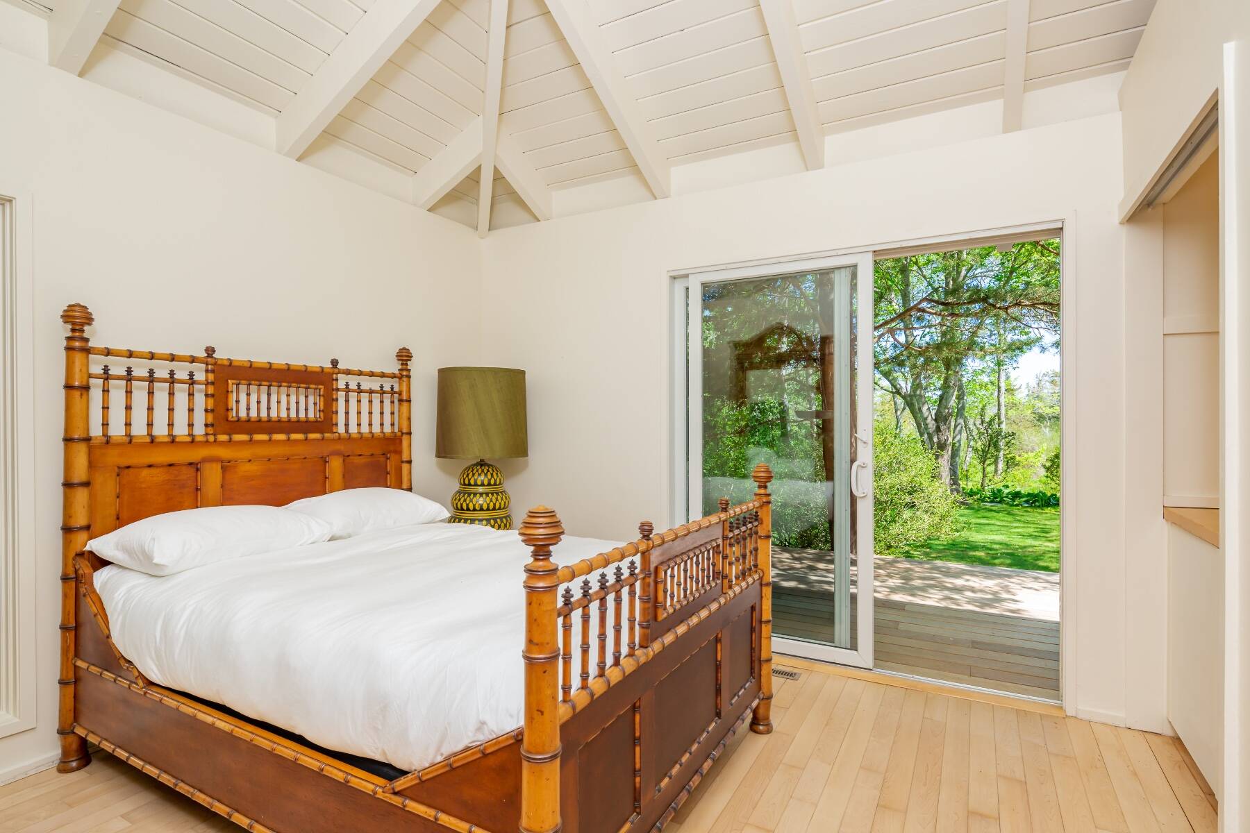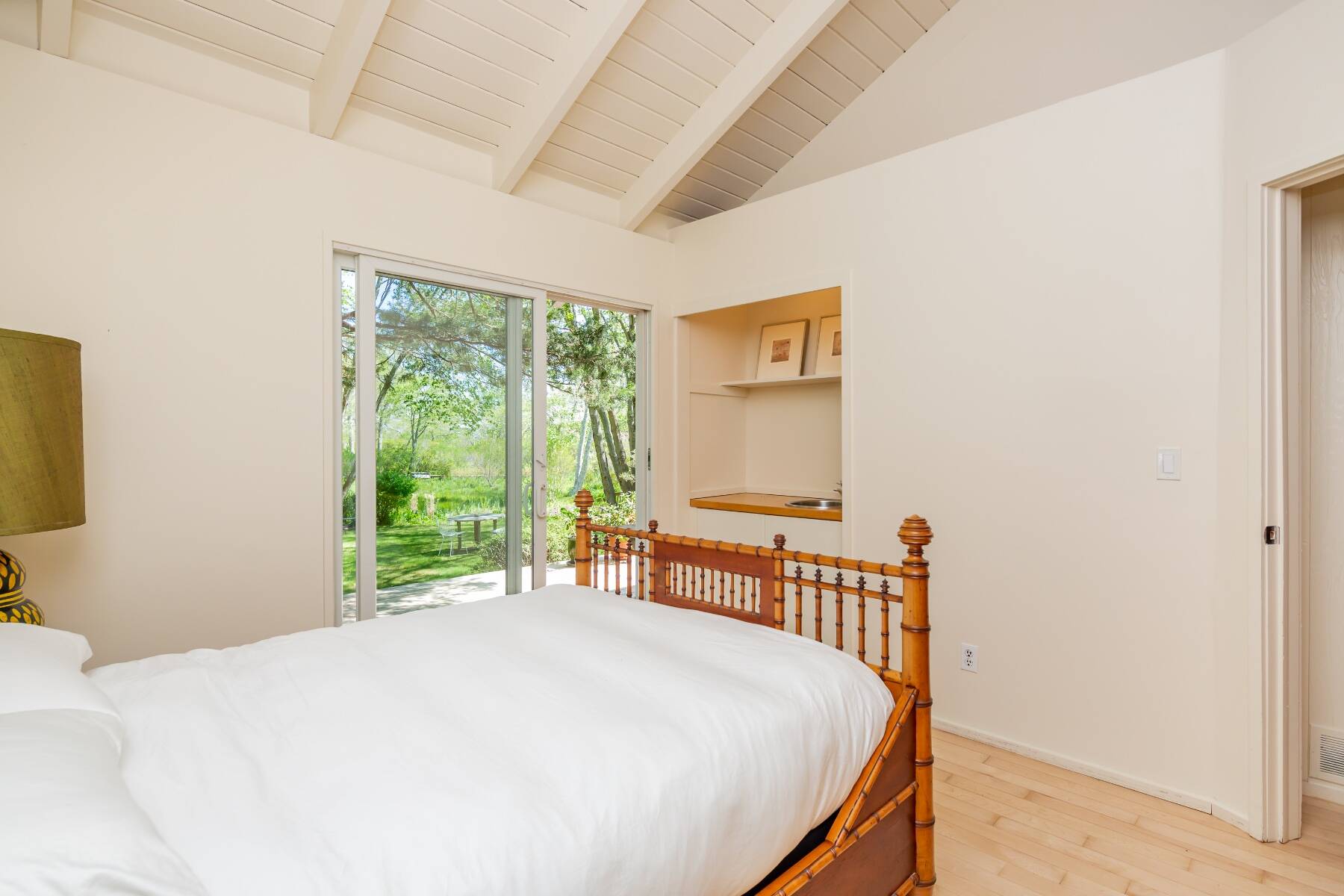 A modern retreat, cradled in a park-like oasis, where privacy and style intertwine in effortless harmony. Originally crafted in 1966 and thoughtfully renovated, this hidden gem awaits those who seek beauty and tranquility. Nestled along a storybook street and moments from the breathtaking shores of Louse Point, the home invites nature to dance within. Wide wraparound decking blurs the line between indoors and out, while golden light spills through every space, illuminating vaulted cottage-style ceilings that seem to breathe with the breeze. With two serene bedrooms, two spa-like baths, and a whimsical loft accessed by a library-style ladder, the home is both intimate and enchanting. Meandering pathways wind through the lush grounds, leading to a glistening pond, secluded seating nooks, and a fire pit encircled by Adirondack chairs-each moment here designed for quiet wonder. An automated driveway gate ensures a sanctuary of privacy. A place where time slows, light lingers, and every corner whispers serenity. Simply perfect. [[Rental Registration # 26-368]] EH RR #: 26-368