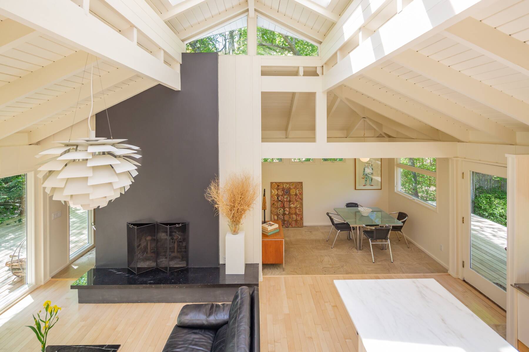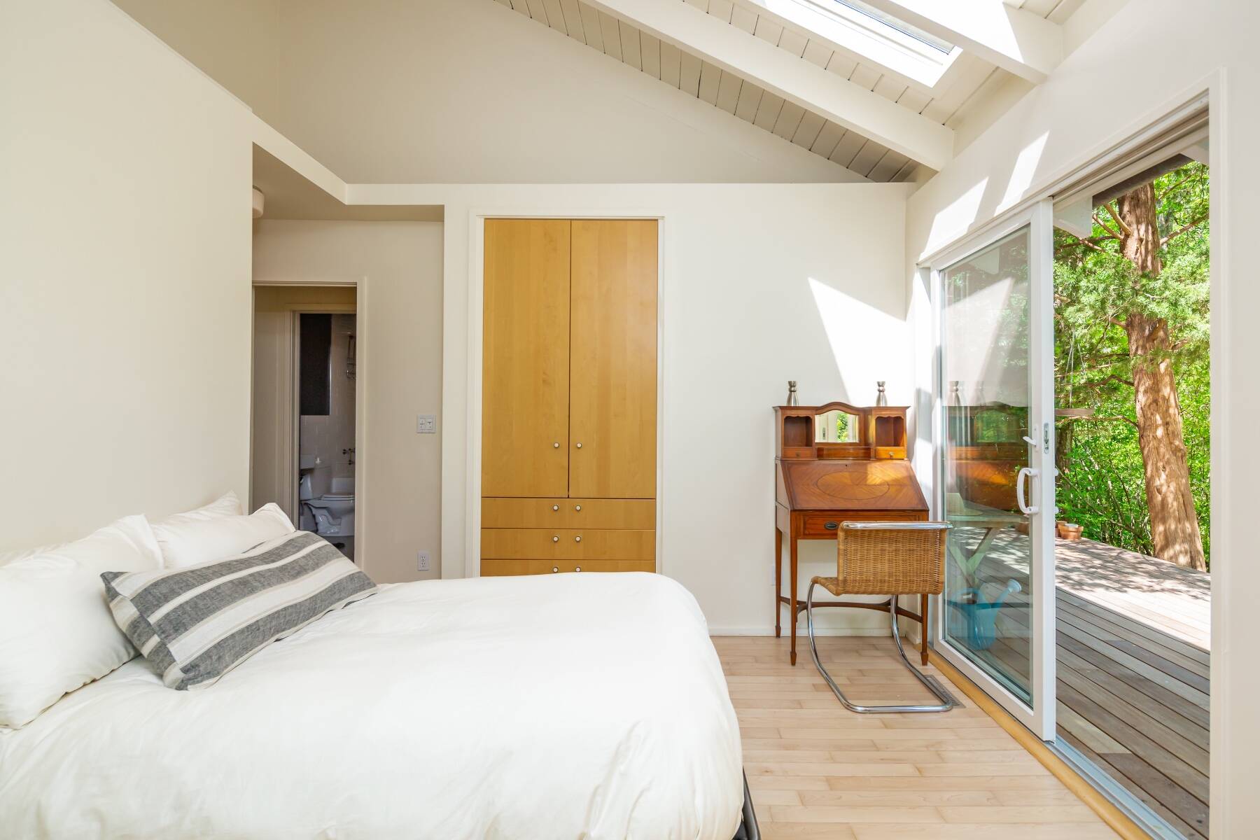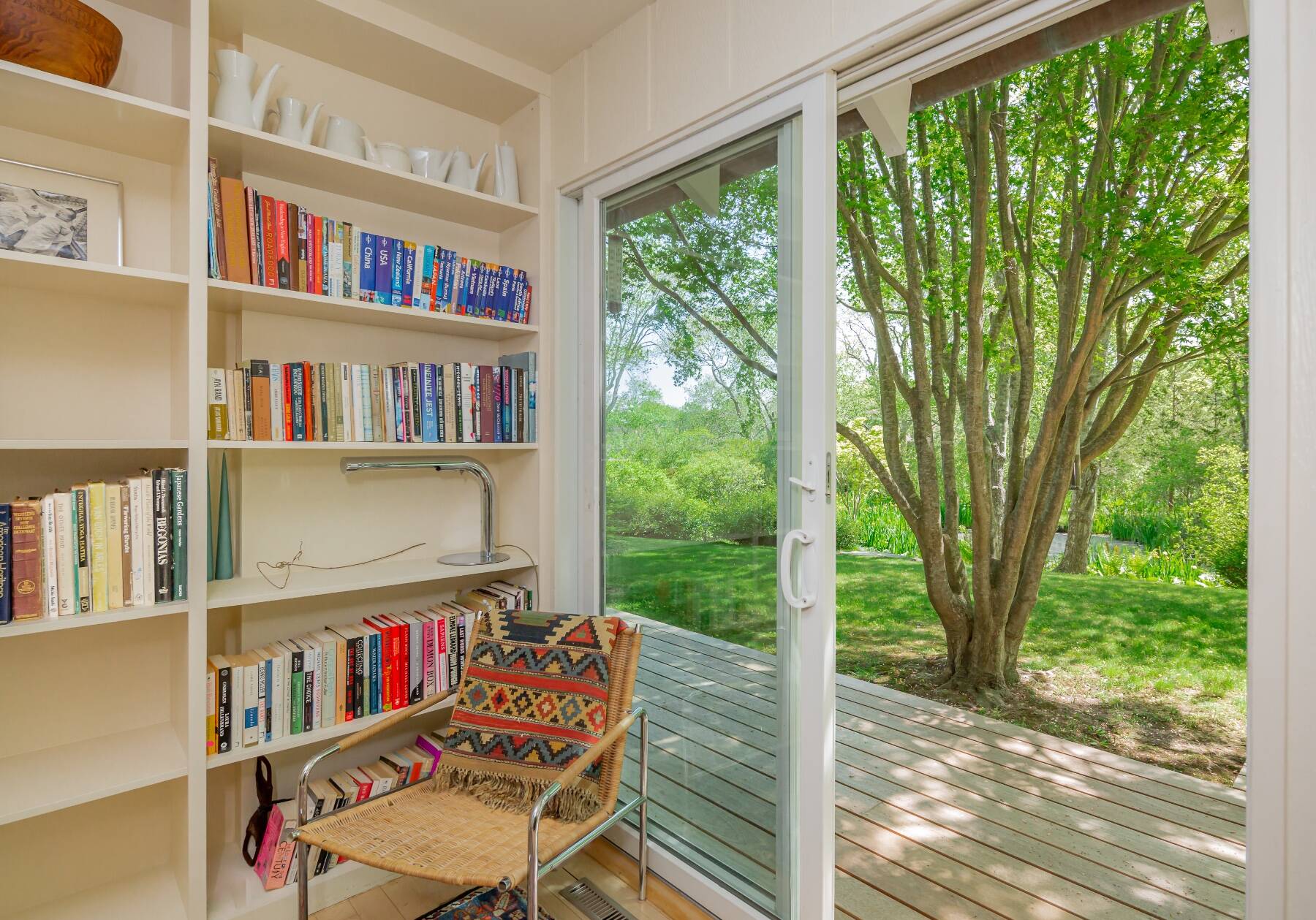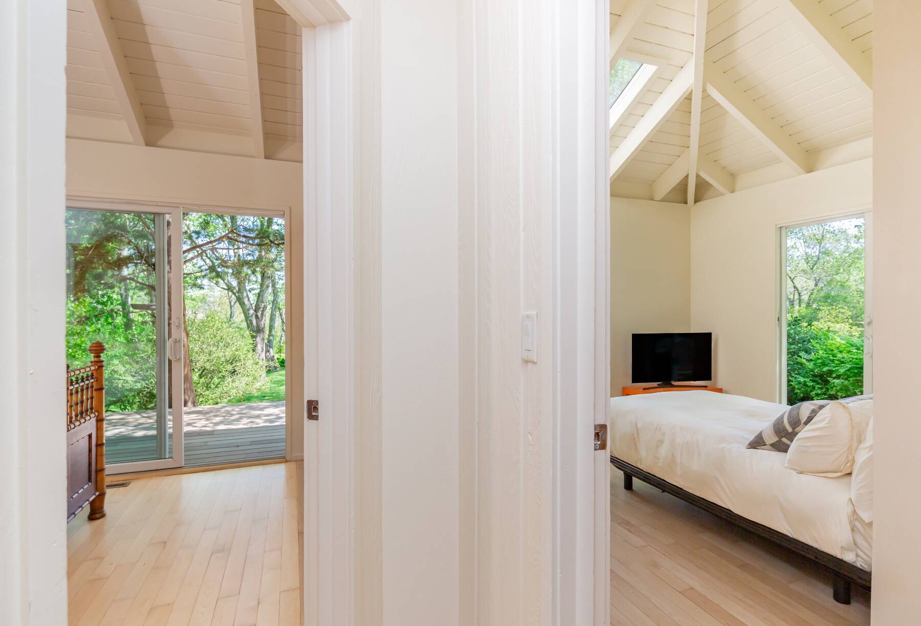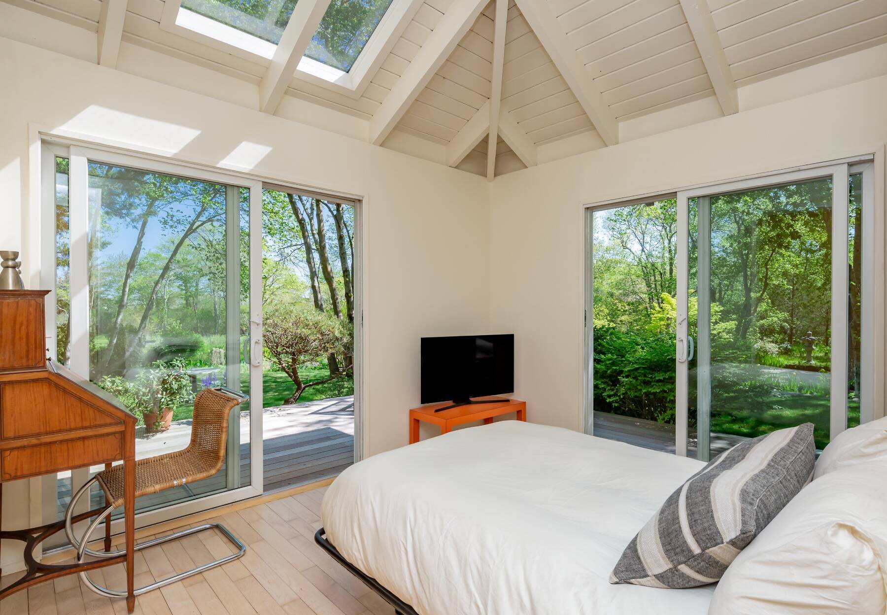 A modern retreat, cradled in a park-like oasis, where privacy and style intertwine in effortless harmony. Originally crafted in 1966 and thoughtfully renovated, this hidden gem awaits those who seek beauty and tranquility. Nestled along a storybook street and moments from the breathtaking shores of Louse Point, the home invites nature to dance within. Wide wraparound decking blurs the line between indoors and out, while golden light spills through every space, illuminating vaulted cottage-style ceilings that seem to breathe with the breeze. With two serene bedrooms, two spa-like baths, and a whimsical loft accessed by a library-style ladder, the home is both intimate and enchanting. Meandering pathways wind through the lush grounds, leading to a glistening pond, secluded seating nooks, and a fire pit encircled by Adirondack chairs-each moment here designed for quiet wonder. An automated driveway gate ensures a sanctuary of privacy. A place where time slows, light lingers, and every corner whispers serenity. Simply perfect. [[Rental Registration # 26-368]] EH RR #: 26-368