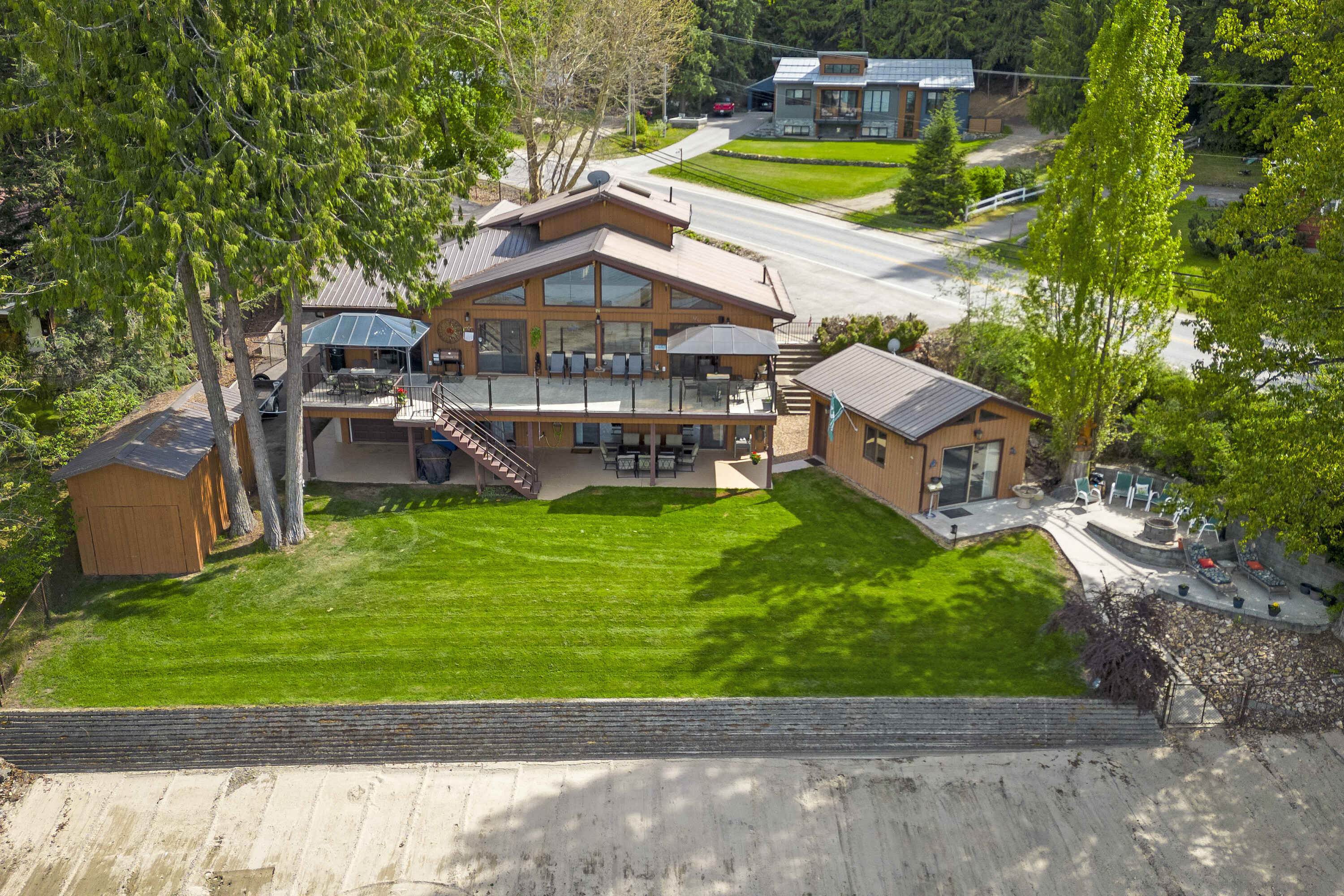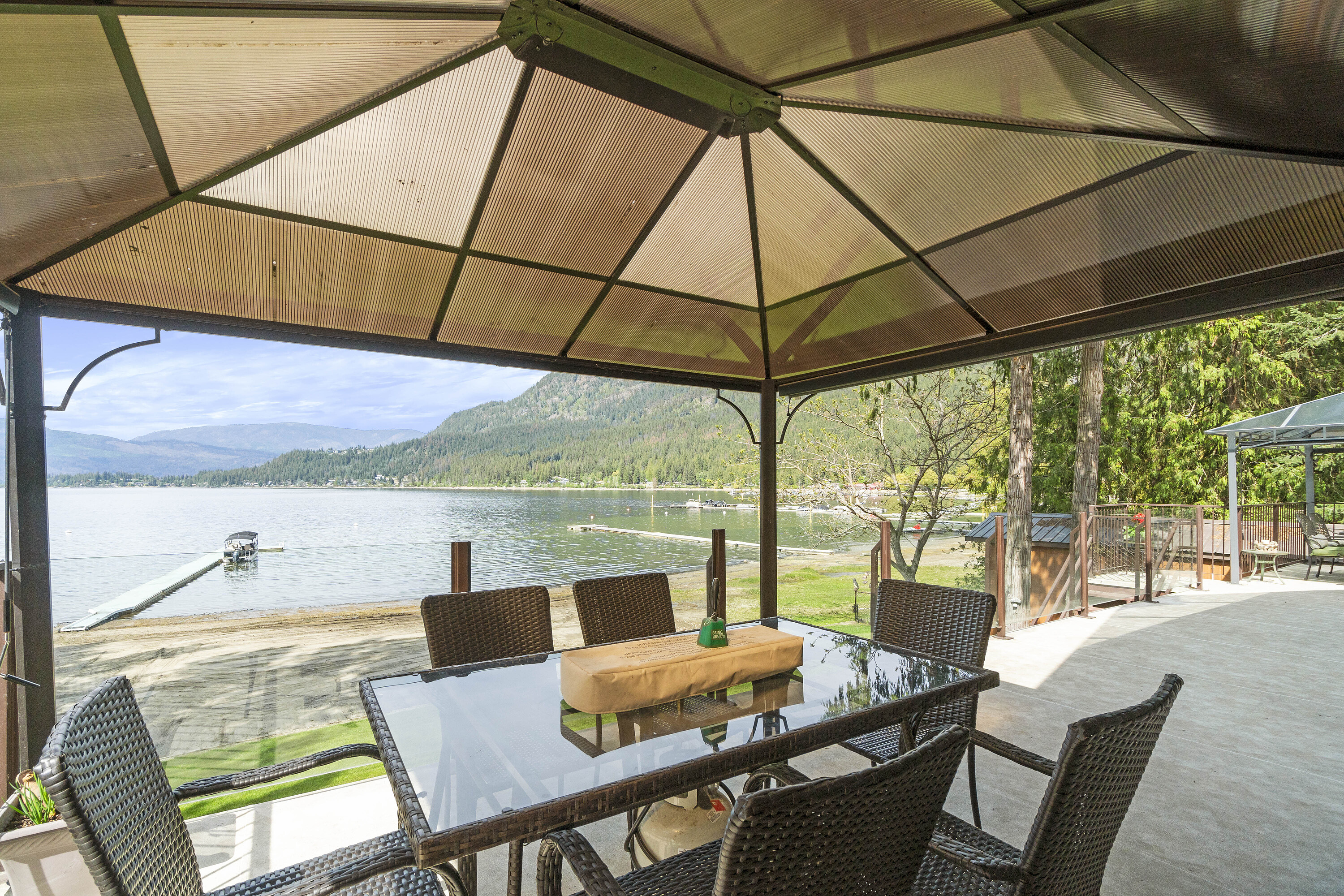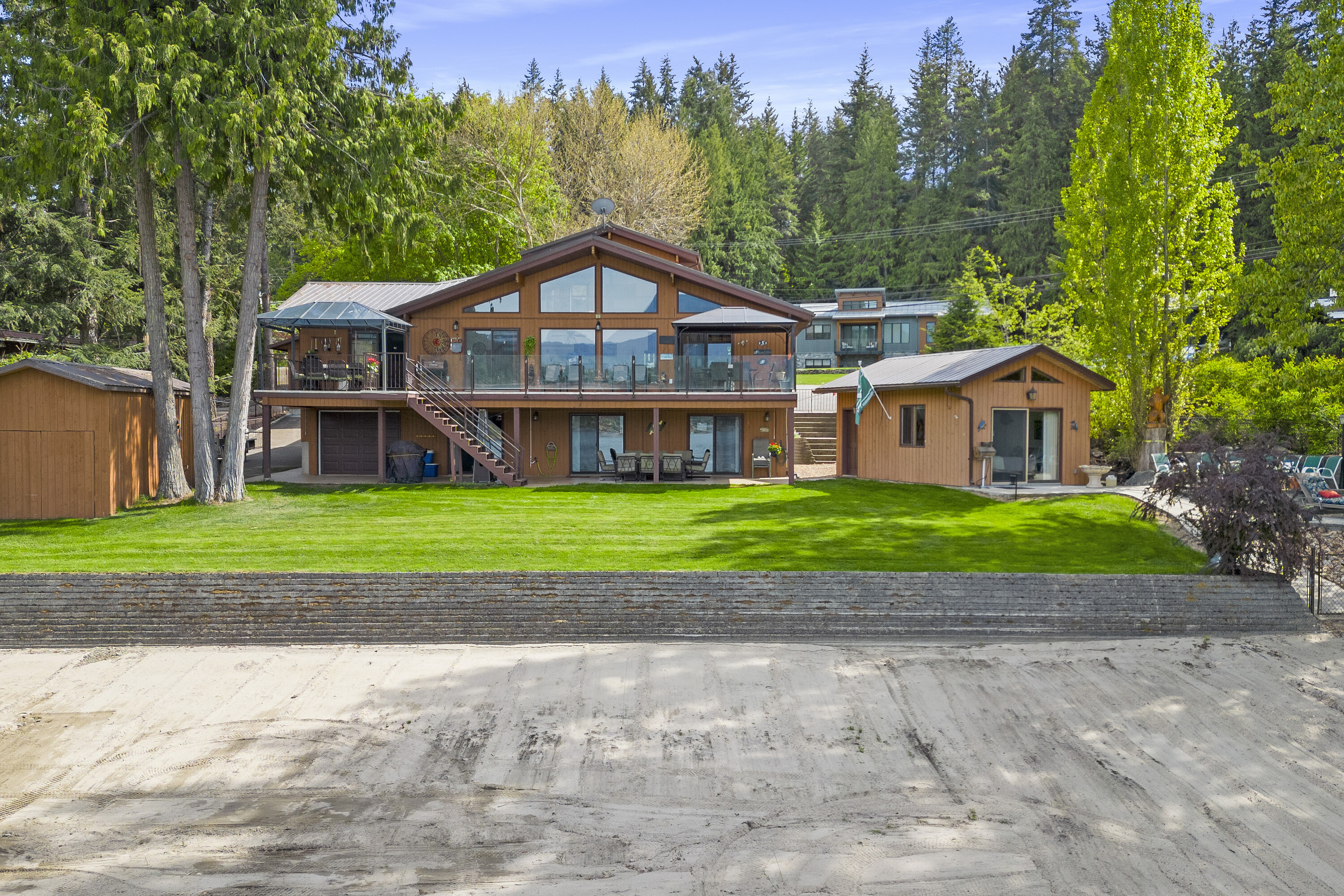 Great Blind Bay home on a soft, weedless, sandy beach with 121 feet of waterfront and a registered 130-foot dock. The home has been loved and well cared for. The setup from the home to the lake is brilliant, as the views of the Shuswap Lake and Copper Island are viewable from all the bedrooms with sliding doors onto deck, living room, kitchen and dining room, with three sliding doors onto expansive balcony. This gorgeous 2642 square foot custom home has vaulted cedar ceilings, four bedrooms and three bathrooms along with a 280 square foot self contained cozy guest cottage. Engineered hardwood covers the main floor of open, comfortable living space, and the kitchen is adorned with granite countertops and beautiful Oak cabinetry and high quality appliances. For car guys, you get a 1408 square foot four bay custom drive through garage with an acrylic pebble floor, plus two detached garages. The home is lake intake for water and it's own septic. The driveway can park over six cars, along with fenced spaces for secure boat/trailer/RV storage and has a detached boathouse and shed. You will love the fire pit, sandy beach, beautiful level grassy play area and the expansive balcony with glass railings for entertaining family and guests. Homes and properties like this, do not come onto the market very often, so if you are interested in a year round waterfront residence then do yourself a favour and view this home. The location is convenient to the store and restaurants and only 20 minutes to Salmon Arm. Sellers are open to a partial trade for a house in Vernon or Lake Country.