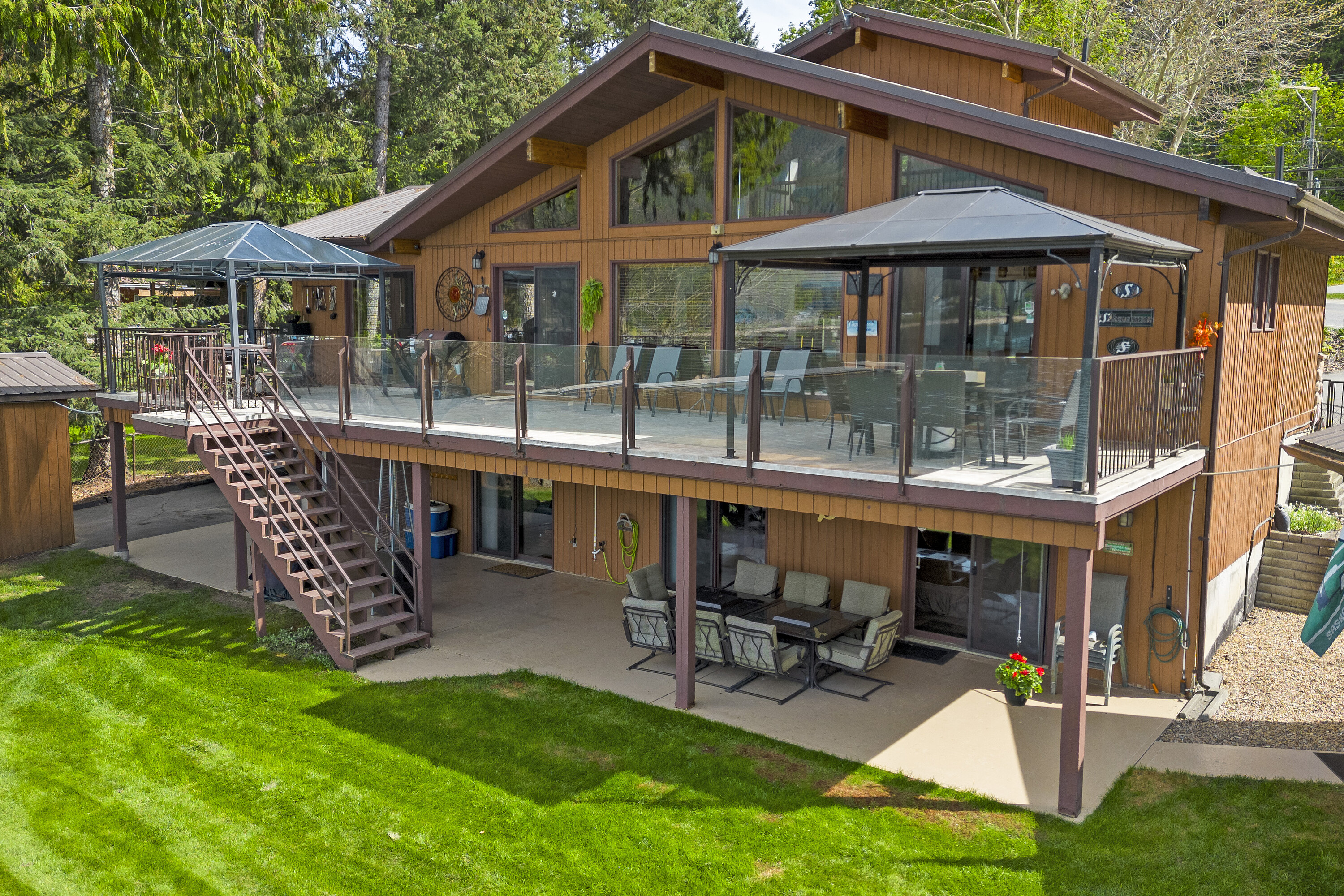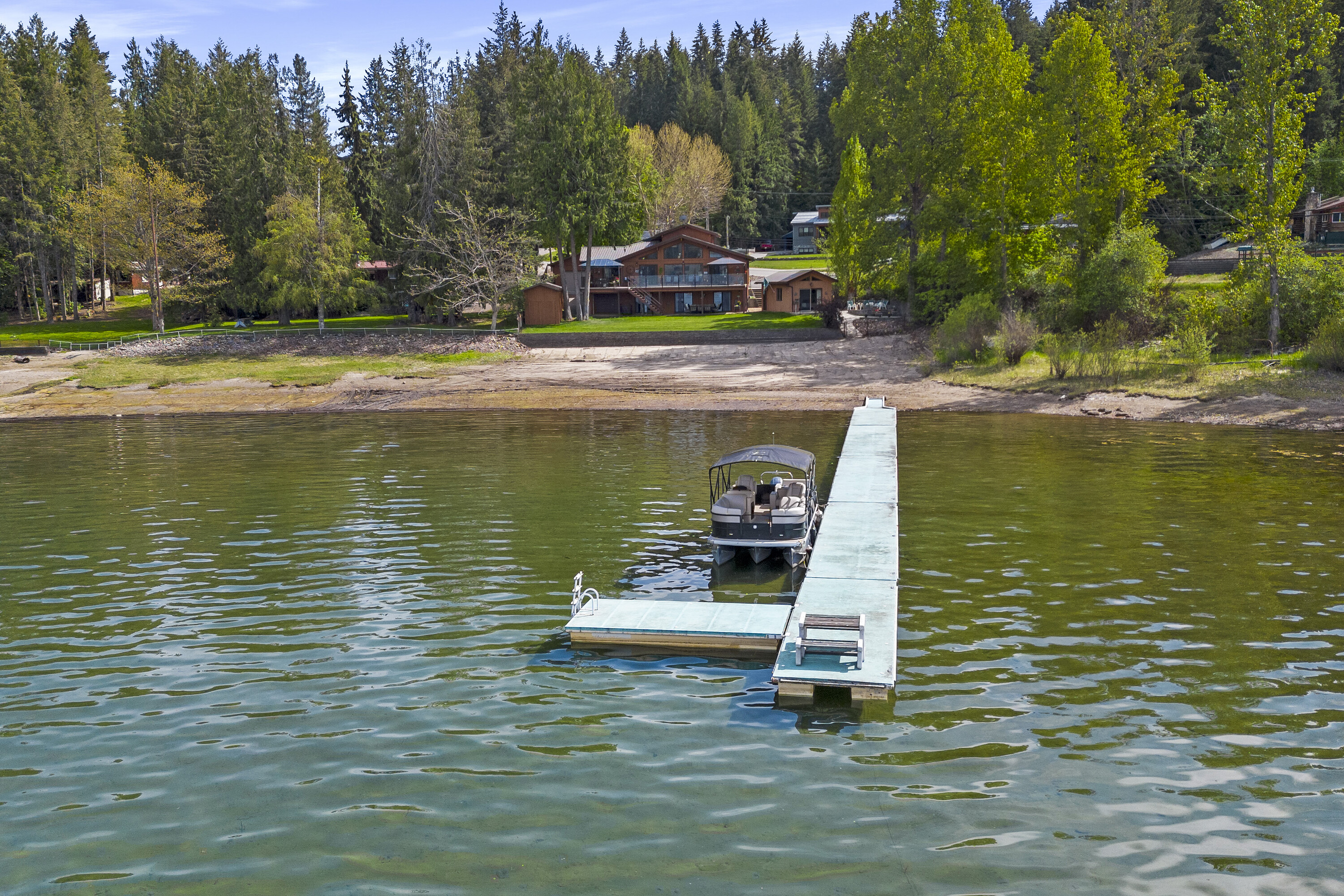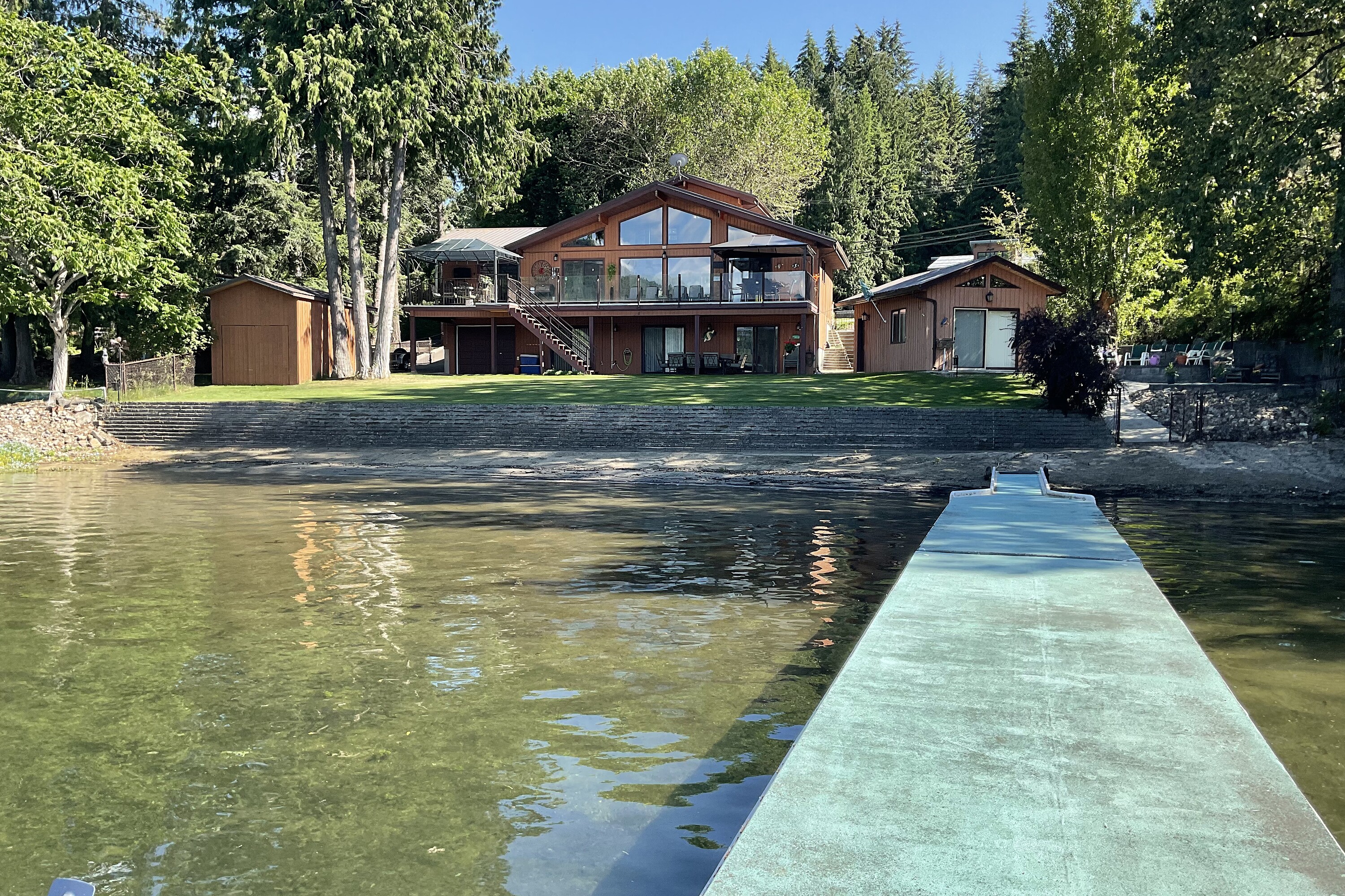 Great Blind Bay home on a soft, weedless, sandy beach with 121 feet of waterfront and a registered 130-foot dock. The home has been loved and well cared for. The setup from the home to the lake is brilliant, as the views of the Shuswap Lake and Copper Island are viewable from all the bedrooms with sliding doors onto deck, living room, kitchen and dining room, with three sliding doors onto expansive balcony. This gorgeous 2642 square foot custom home has vaulted cedar ceilings, four bedrooms and three bathrooms along with a 280 square foot self contained cozy guest cottage. Engineered hardwood covers the main floor of open, comfortable living space, and the kitchen is adorned with granite countertops and beautiful Oak cabinetry and high quality appliances. For car guys, you get a 1408 square foot four bay custom drive through garage with an acrylic pebble floor, plus two detached garages. The home is lake intake for water and it's own septic. The driveway can park over six cars, along with fenced spaces for secure boat/trailer/RV storage and has a detached boathouse and shed. You will love the fire pit, sandy beach, beautiful level grassy play area and the expansive balcony with glass railings for entertaining family and guests. Homes and properties like this, do not come onto the market very often, so if you are interested in a year round waterfront residence then do yourself a favour and view this home. The location is convenient to the store and restaurants and only 20 minutes to Salmon Arm. Sellers are open to a partial trade for a house in Vernon or Lake Country.